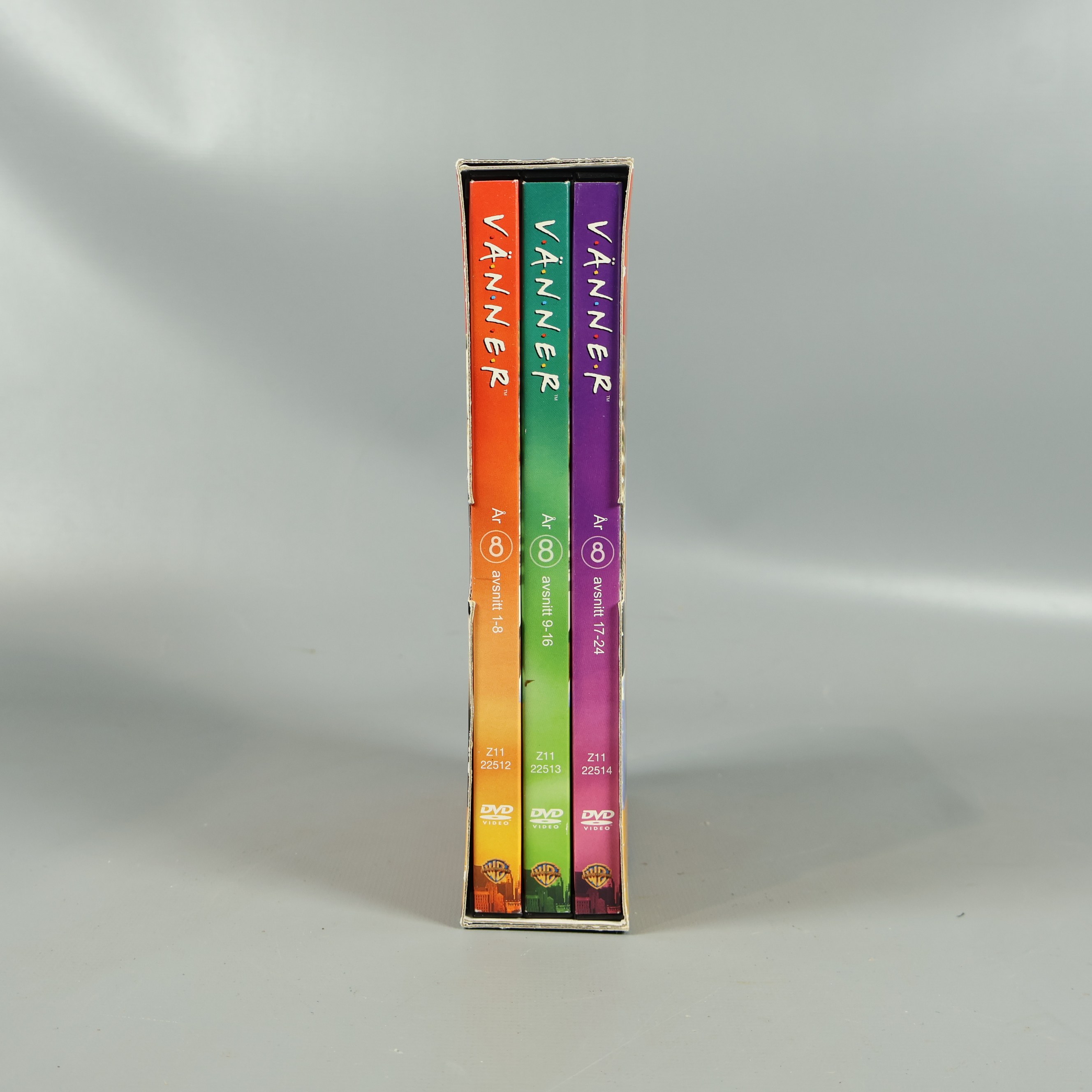 DVD-box - Vänner - Säsong 8 49 kr Product variation Antal st Beskrivning Upptäck hela åttonde säsongen av den alltid lika populära TV-serien Vänner i denna kompletta DVD-box. Visa all beskrivning Skick Gott skick Produkten har använts men är av fin kvalitet, det kan förekomma mindre förslitningar. Läs mer om hur vi bedömer Genre SITCOM Publisher WB Language Engelska text på svenska Produkten är unik och finns enbart som 1 st i lager. Fri frakt på alla köp över 990 kr. 14 dagars ångerrät.
