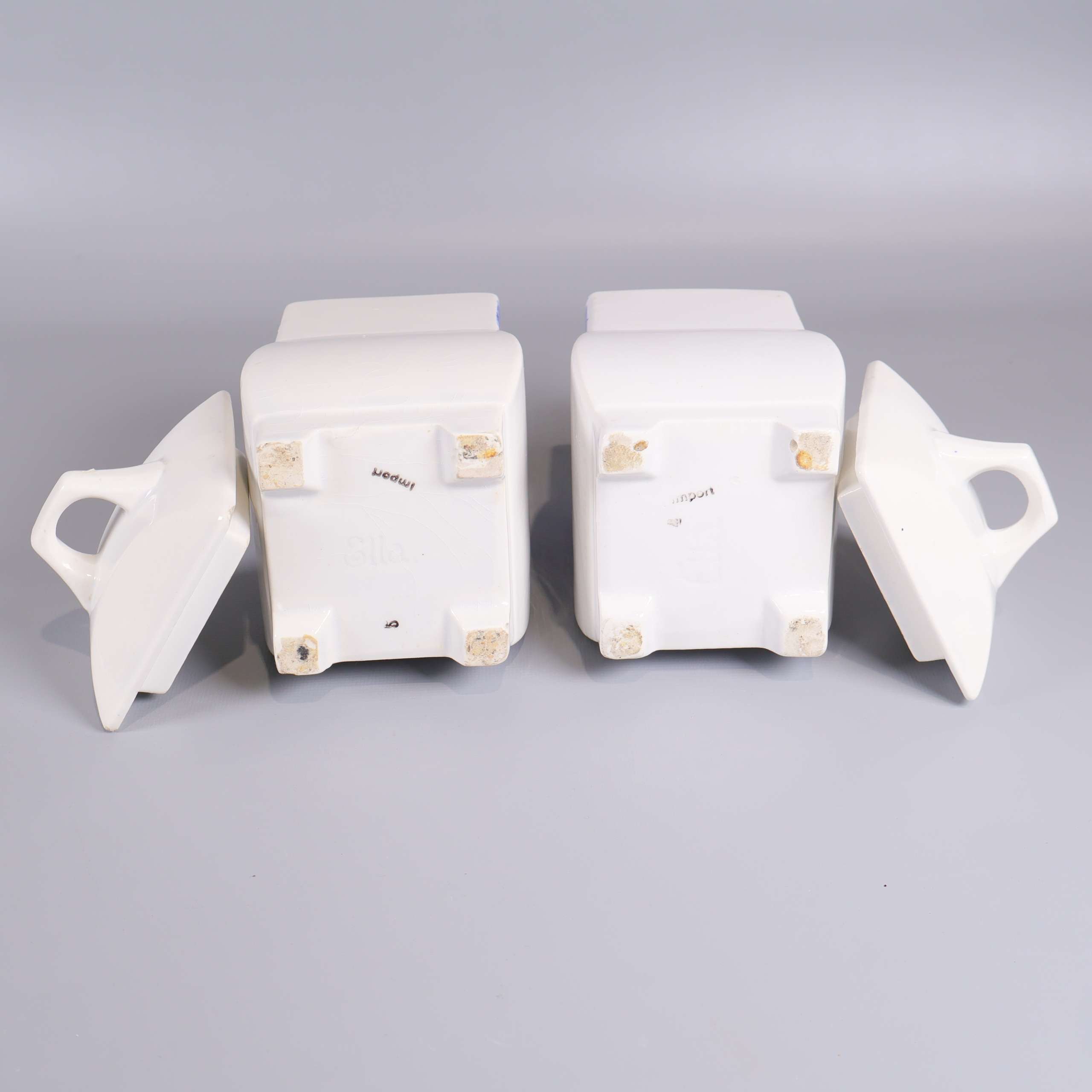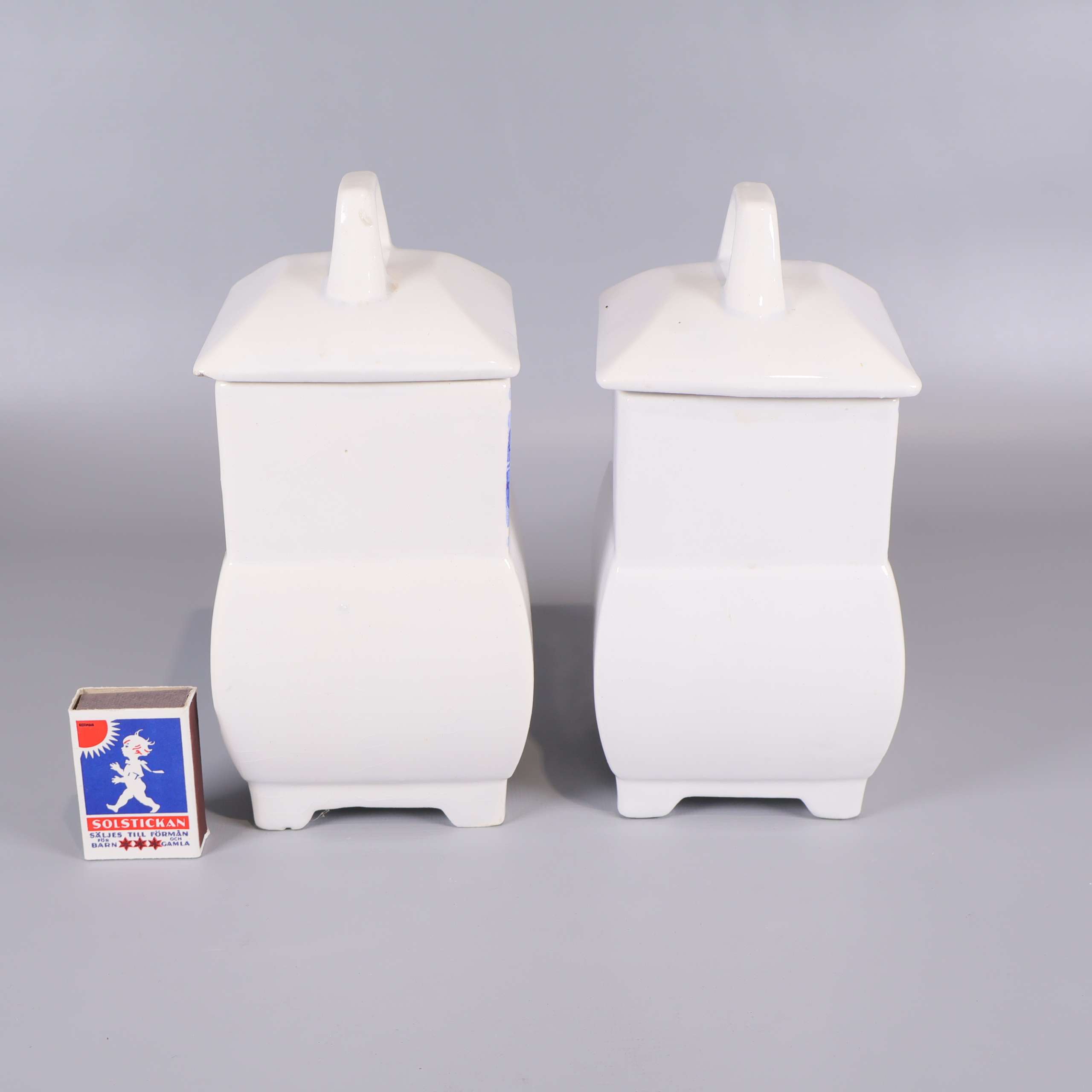 Två dekorativa burkar i klassisk form med tydligt blått blommotiv och praktiskt lock med handtag. Neutrala vita sidor ger ett tidlöst och ljust intryck, och de passar perfekt att ha framme. Märkt med 'Ella' på undersidan.