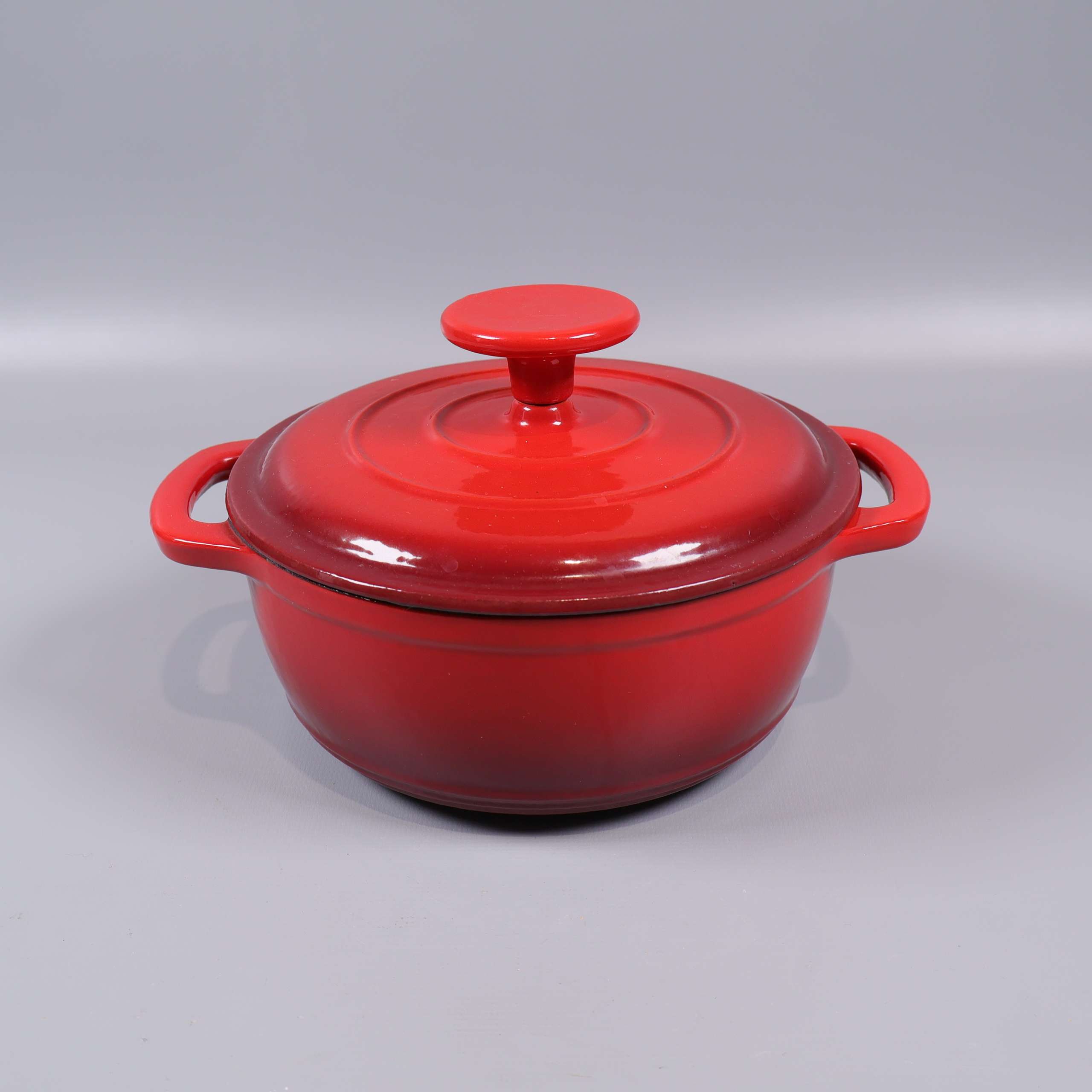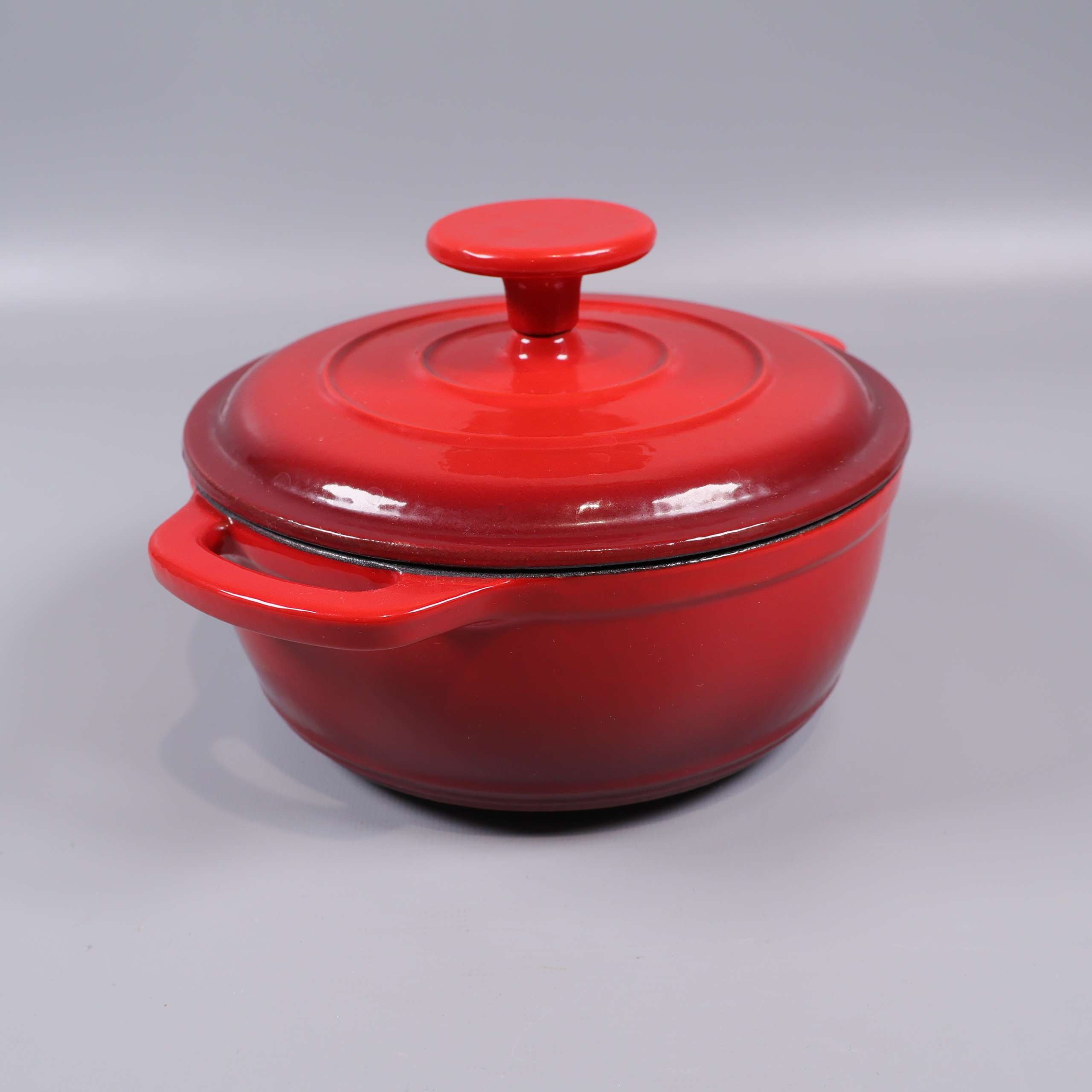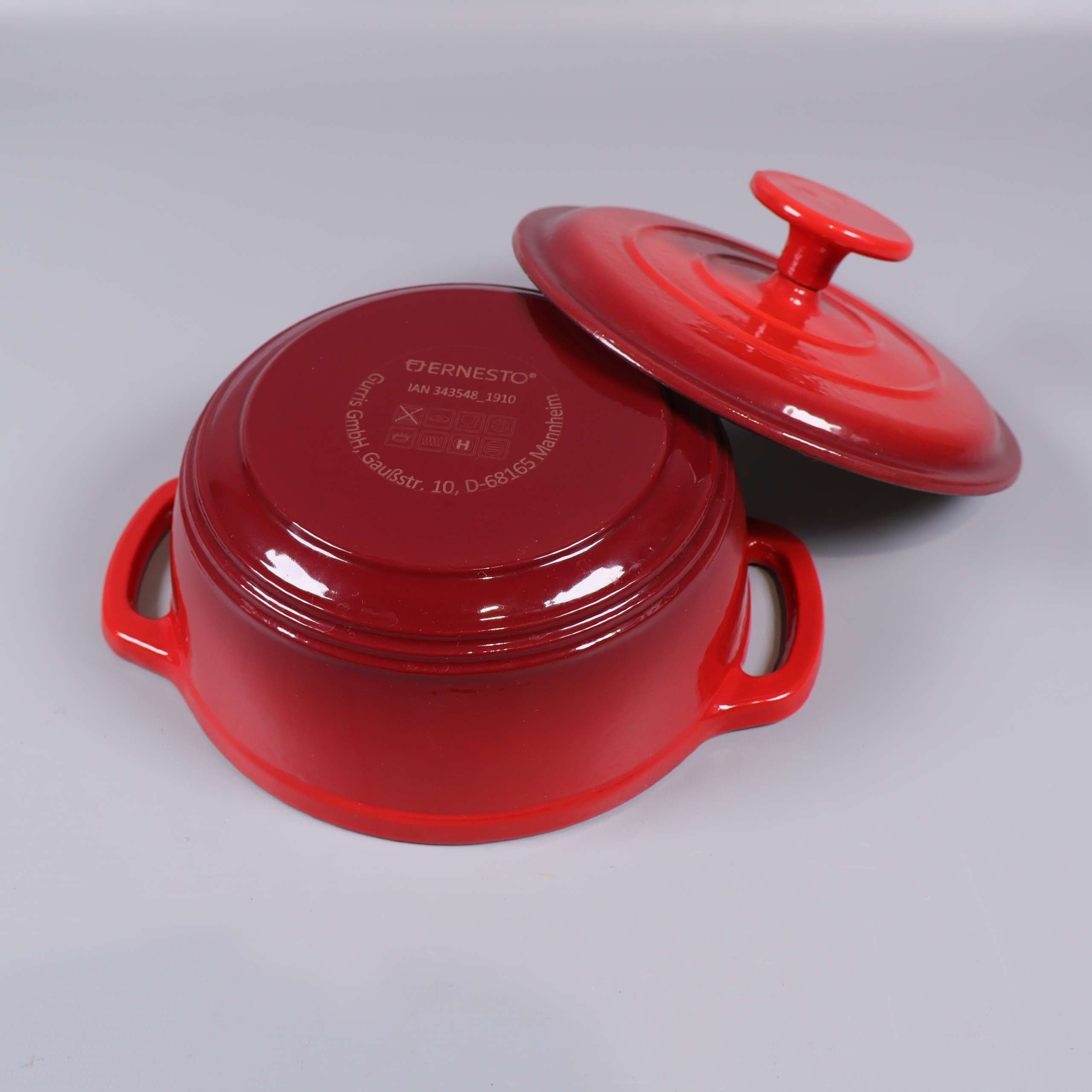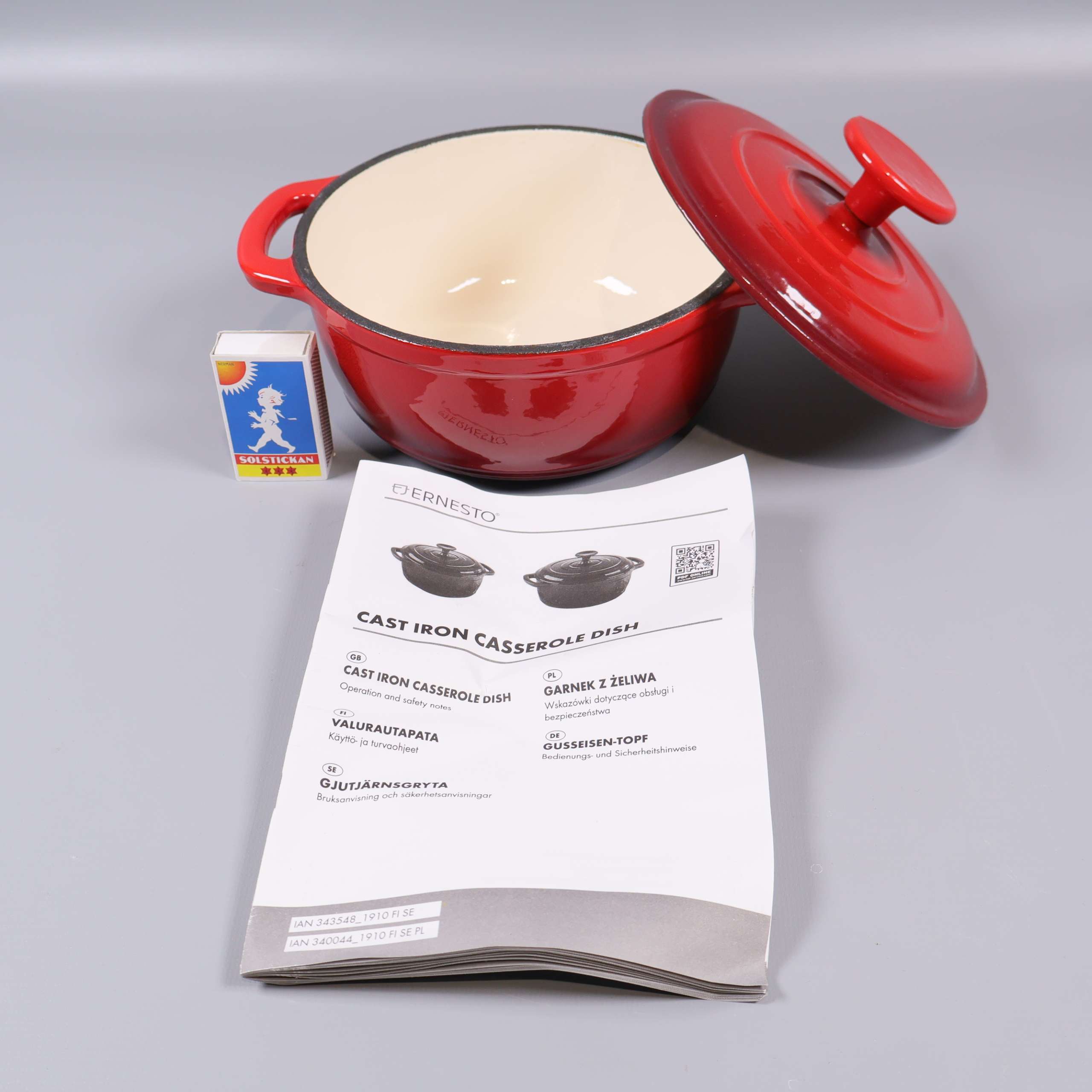 Ernesto Ernesto - Gjutjärn gryta med lock 169 kr Product variation Antal st Beskrivning En charmig rund gryta i kraftigt utförande med blank röd utsida och cremevit insida. Praktiska handtag på sidorna och ett matchande lock ger en stabil och stilren känsla till köket. Visa all beskrivning Skick Gott skick Produkten har använts men är av fin kvalitet, det kan förekomma mindre förslitningar. Läs mer om hur vi bedömer Dimensions Höjd: ca 14cm (inklusive lock), Bredd: ca 22cm, Diameter: ca 17cm Färg Röd Material Gjutjärn Varumärke Ernesto Produkten är unik och finns enbart som 1 st i lager. Fri frakt på alla köp över 990 kr. 14 dagars ångerrät.