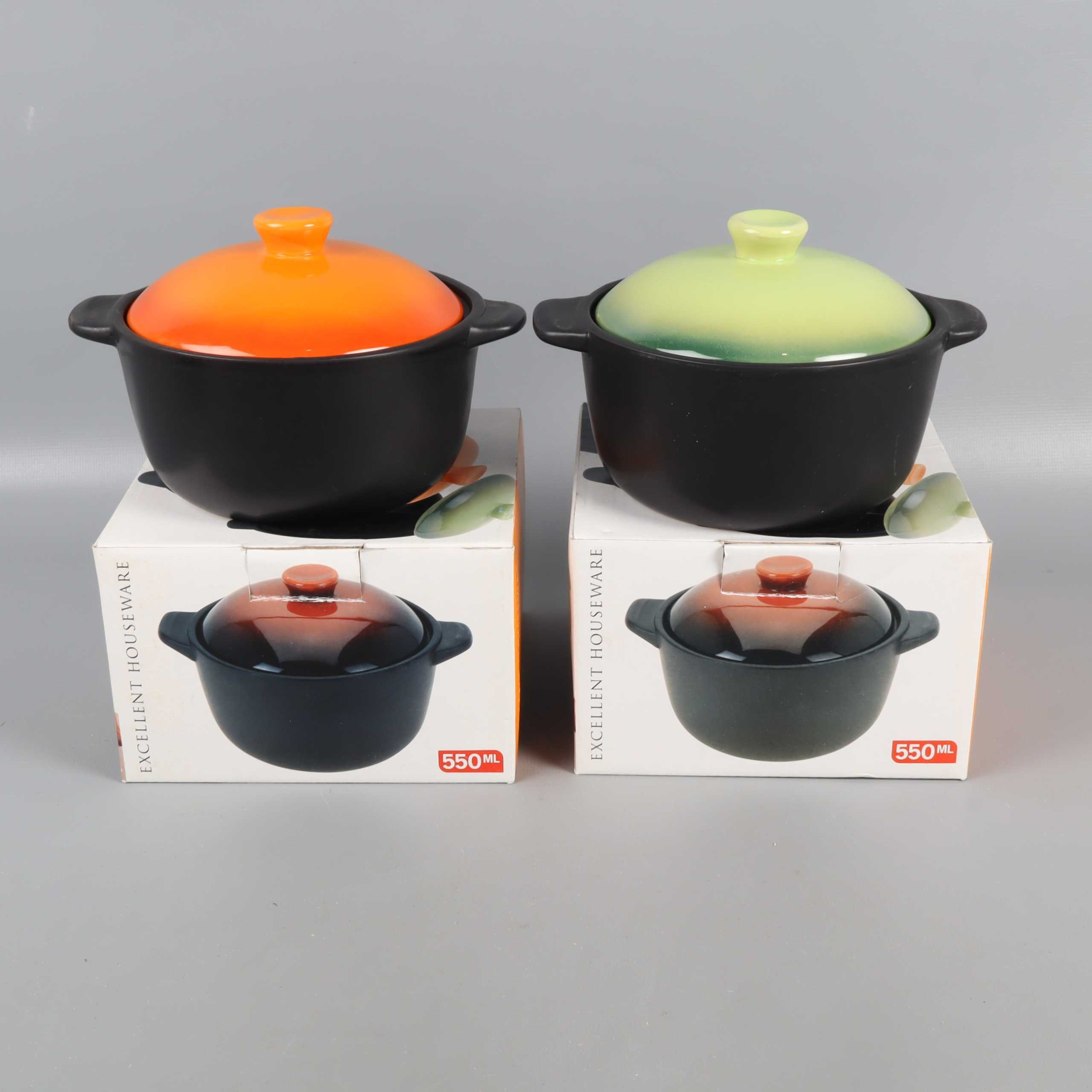 Excellent Houseware Excellent Houseware/Siaki Porcelain - Portionsgryta med lock 2st - 55cl 99 kr Product variation Antal st Beskrivning Två rundade grytor i matt svart med färgglada lock, ett i orange och ett i ljusgrönt. Skick: Små märken inuti, se bild 4-6. Visa all beskrivning Skick Gott skick Produkten har använts men är av fin kvalitet, det kan förekomma mindre förslitningar. Läs mer om hur vi bedömer Dimensions Ca Höjd: 7cm Diameter: 14cm Färg Svart Material Porslin Varumärke Excellent Houseware Produkten är unik och finns enbart som 1 st i lager. Fri frakt på alla köp över 990 kr. 14 dagars ångerrät.