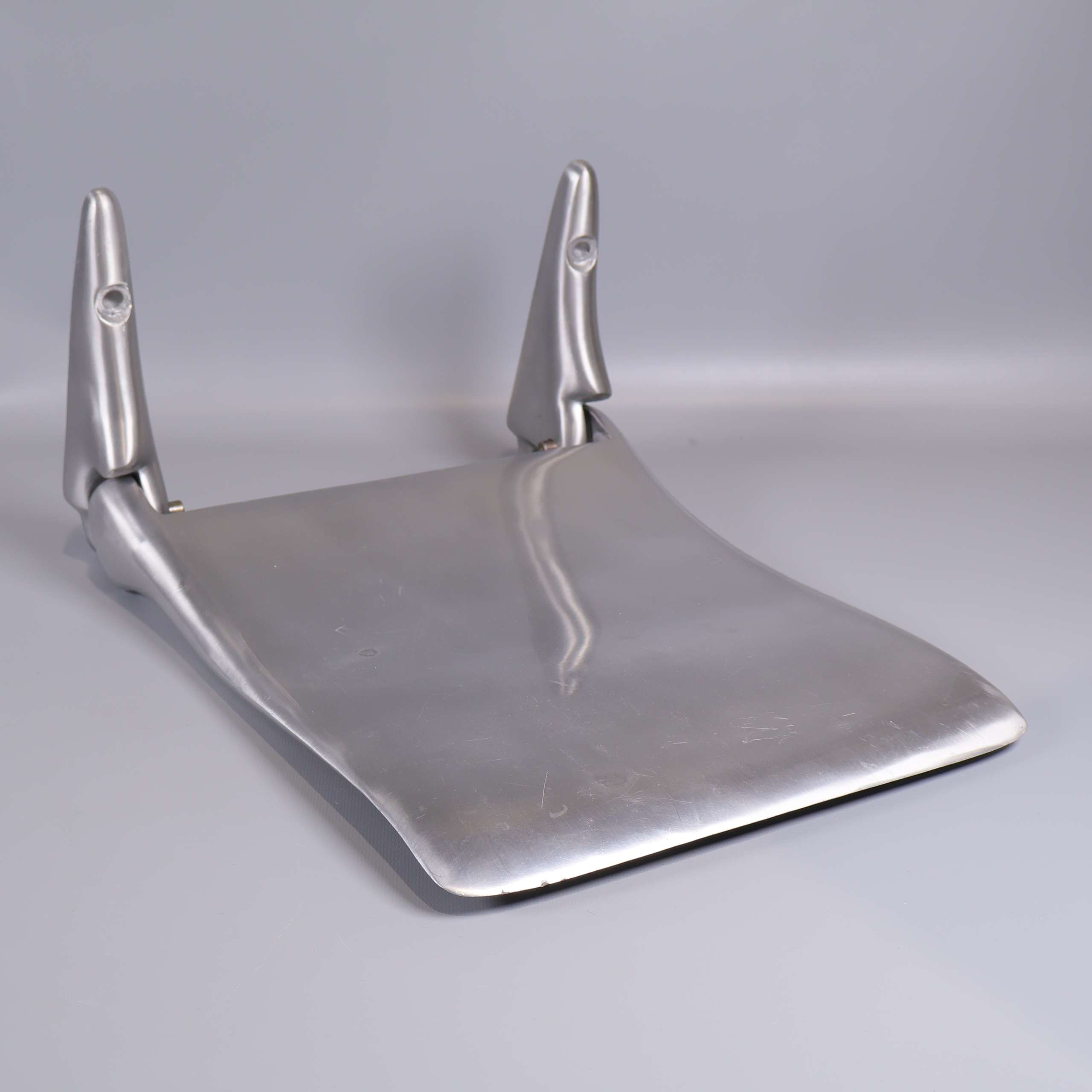Robust väggstol i borstad metall med stilren industridesign och rundade kanter. Monteringsbara väggfästen ger en flexibel lösning för små utrymmen eller offentliga miljöer. Sitsen har en matt, lätt strukturerad yta och stabil konstruktion för trygg användning.