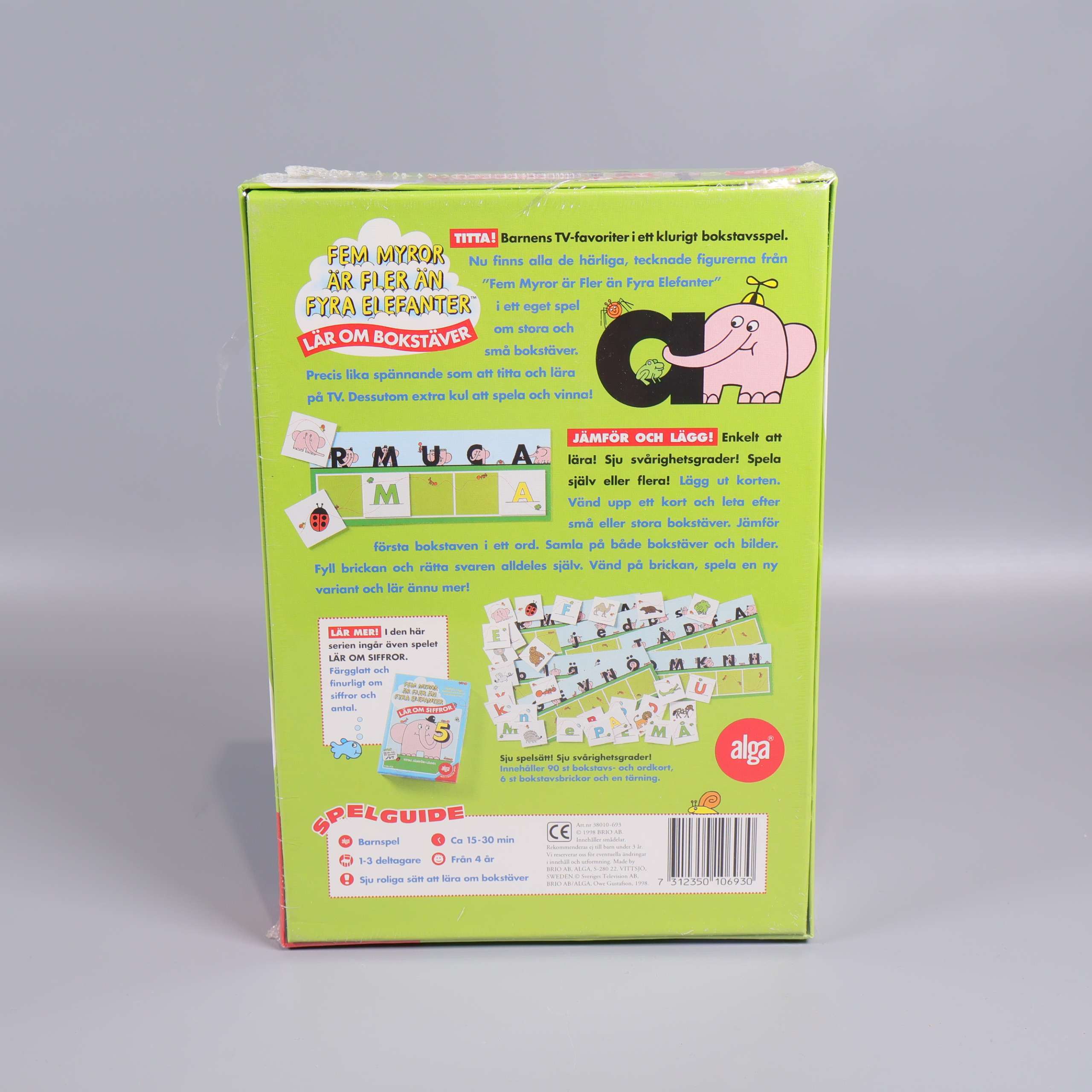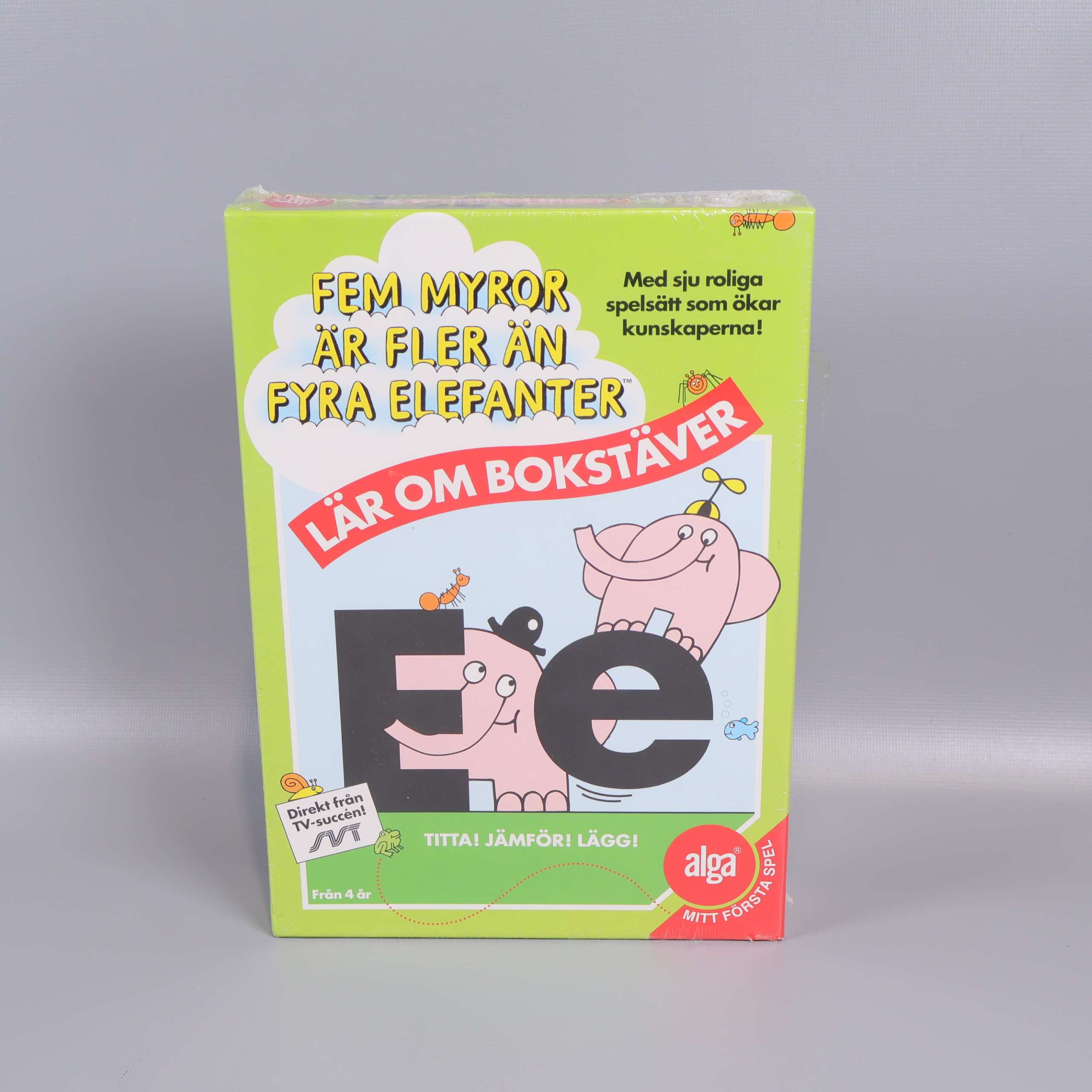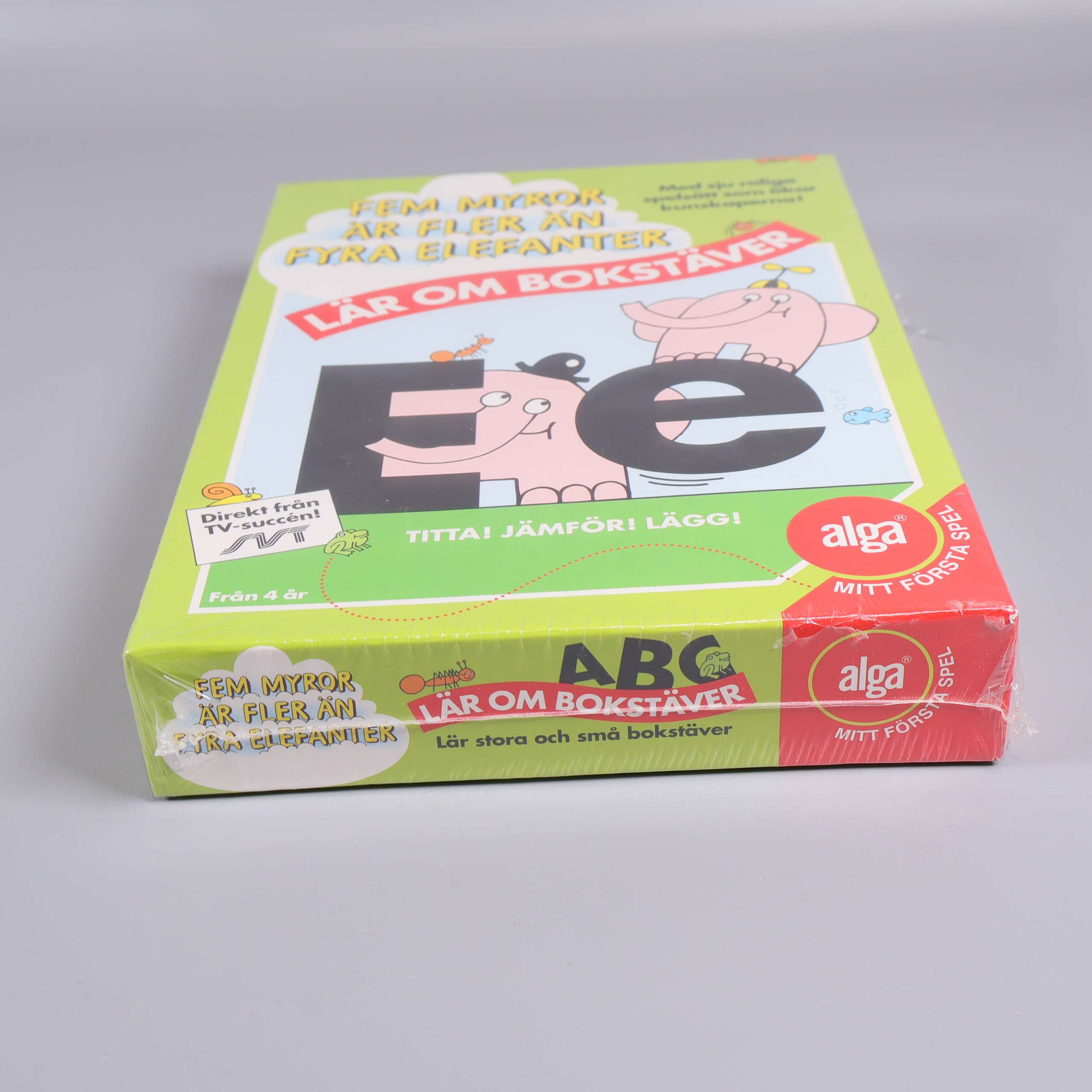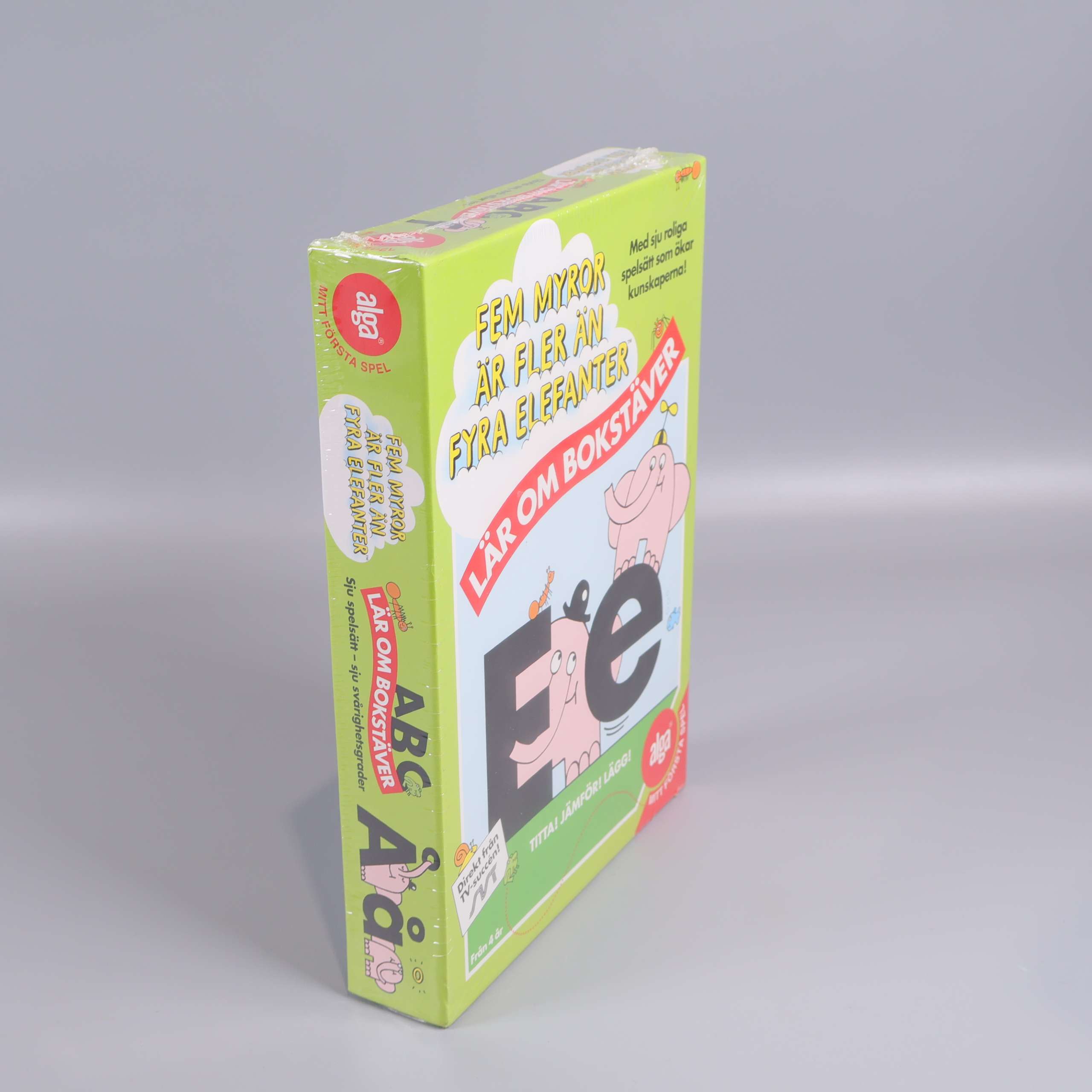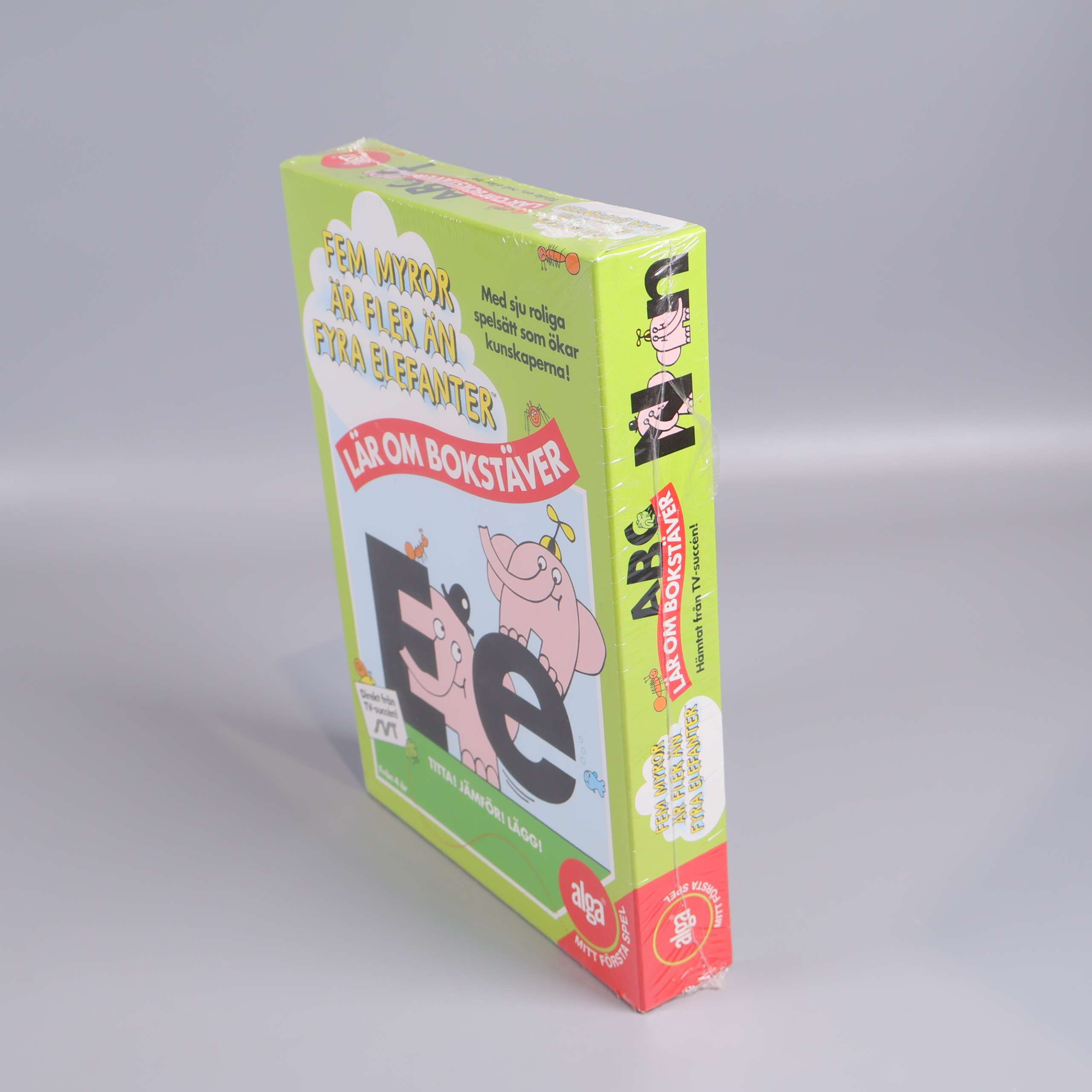 Färgglatt och kul bokstavsspel som introducerar alfabetet på ett lekfullt sätt. Med motiv från den välkända TV-serien 'Fem myror är fler än fyra elefanter' blir det roligt och engagerande att lära sig bokstäver.