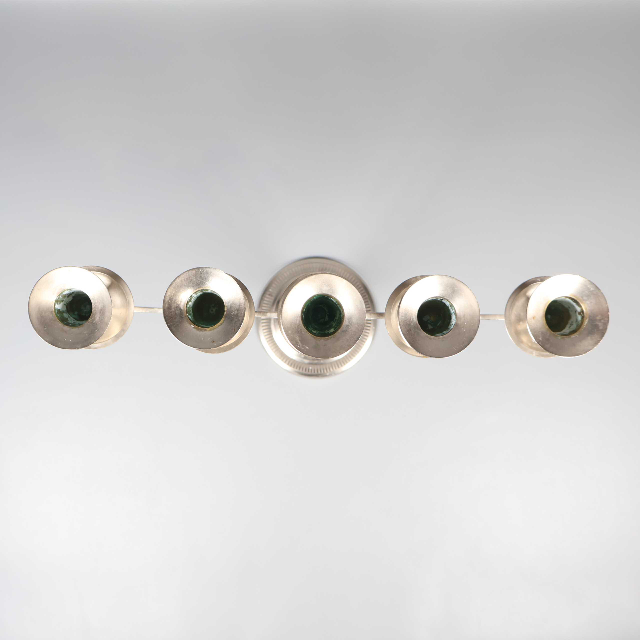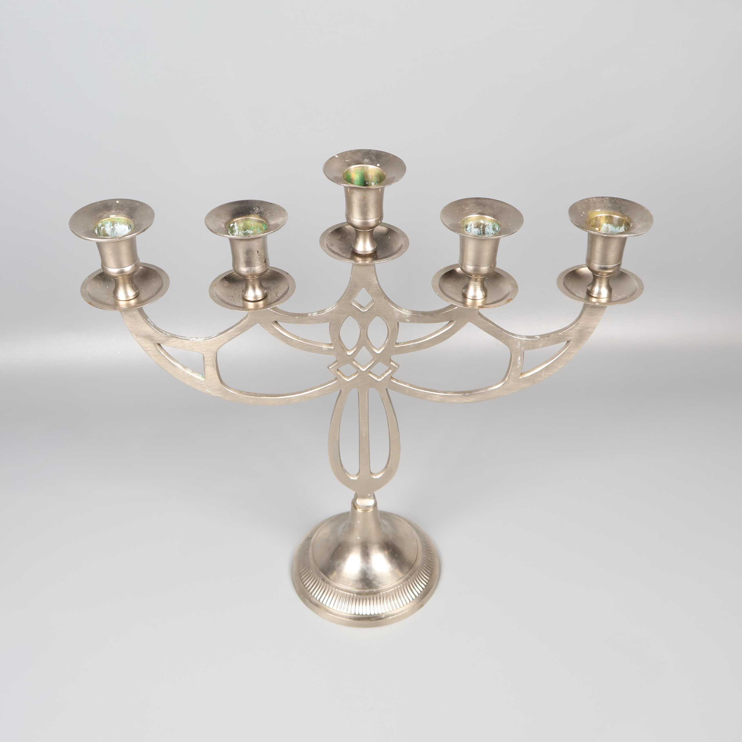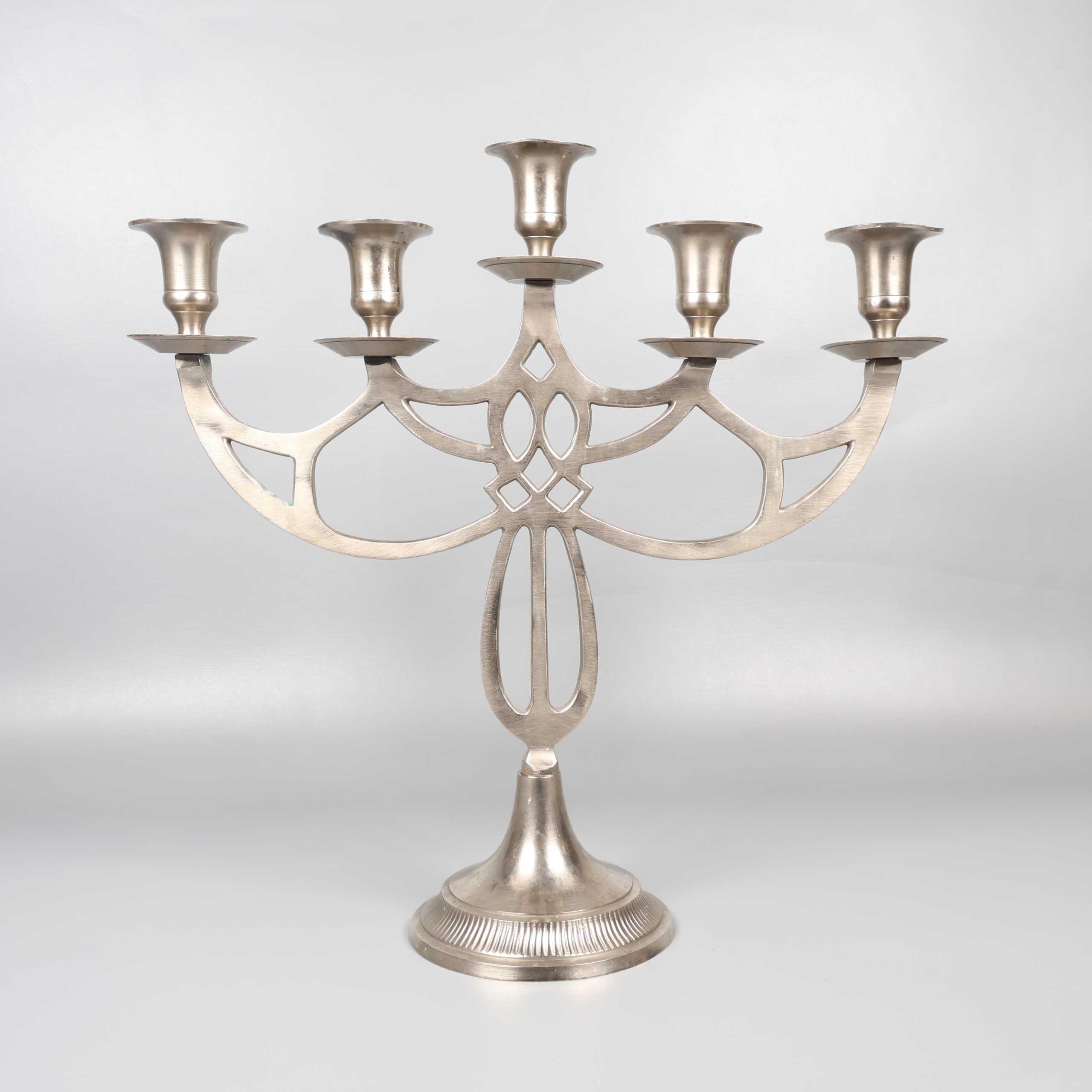Ljusstake i metall med fem armar och stilrena detaljer. Den centrala ljushållaren går inte att skruva ner helt.