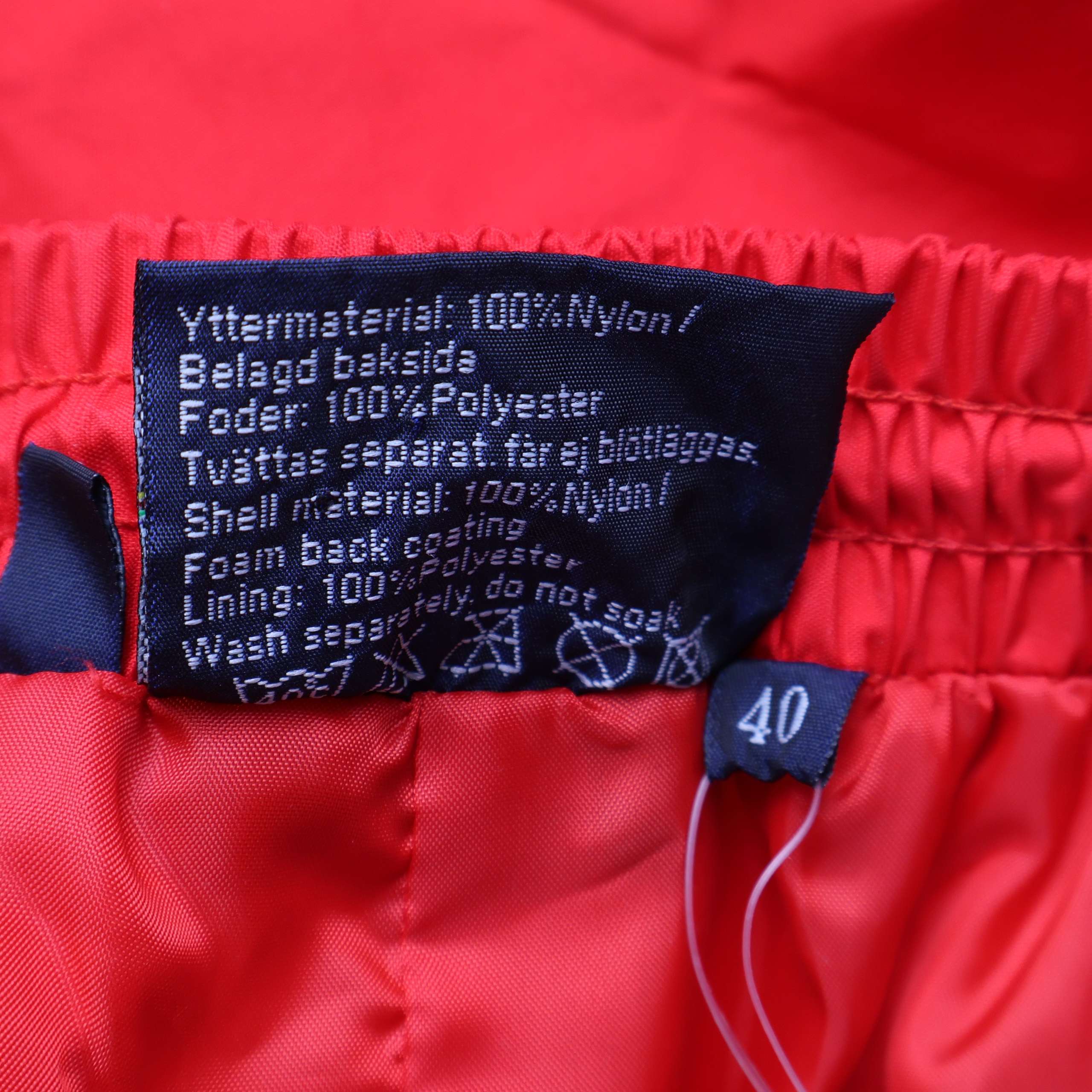 Fodrade byxor, storlek 40 i klar röd färg, designade med elastisk midja och raka ben. Modellen har praktiska fickor framtill, justerbara benslut och robust yttermaterial som ger en sportig och funktionell look. Perfekta för dig som gillar praktiska everyday pieces med bekväm passform.