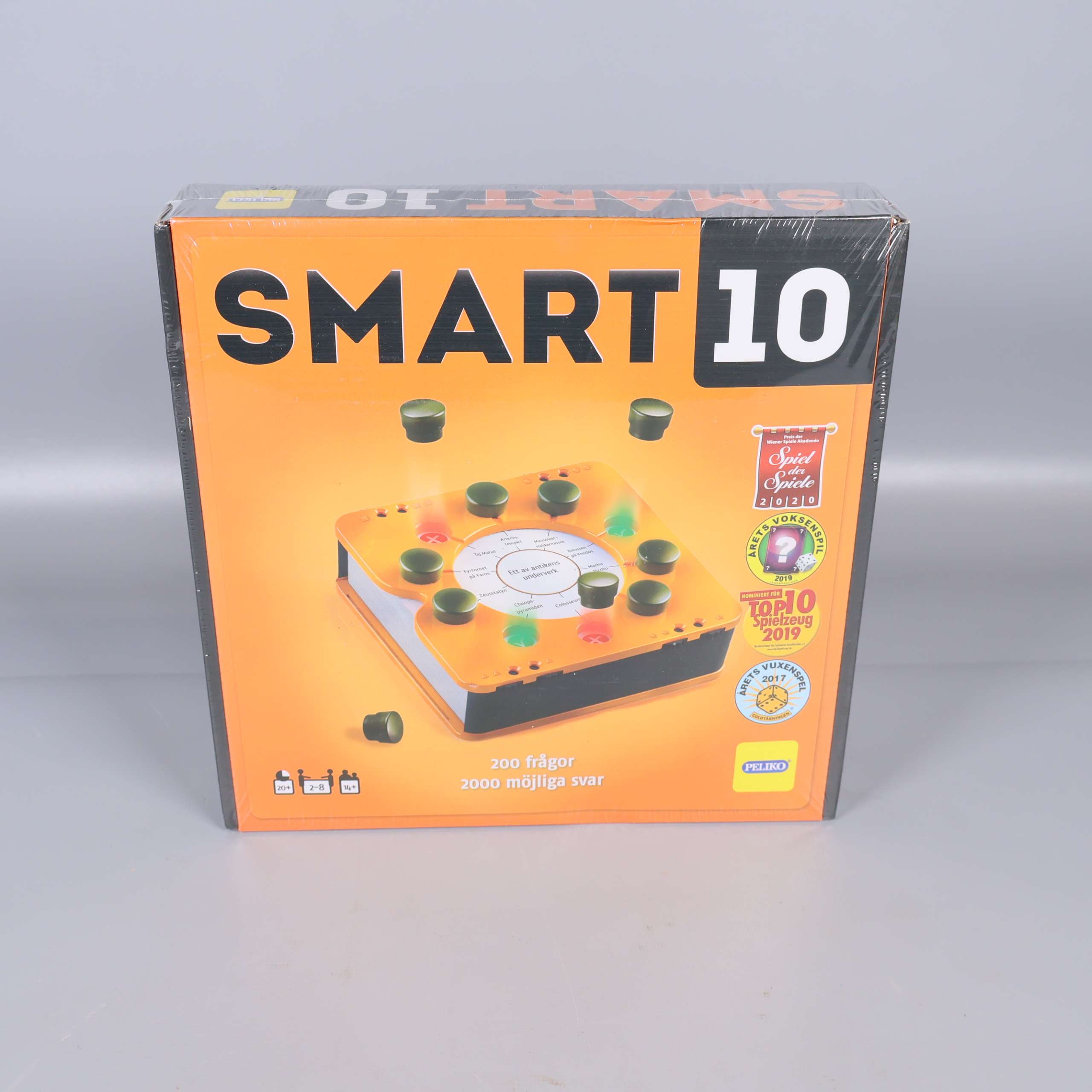 Smart 10 är ett frågespel i snygg och smart orange box där alla får chans att svara på varje fråga. Modern och lekfull design med rund spelmodul och svarta marker. Perfekt för snabba omgångar och många skratt tillsammans. Spelet har tydligt tryck och är väl förpackat i originalkartong.