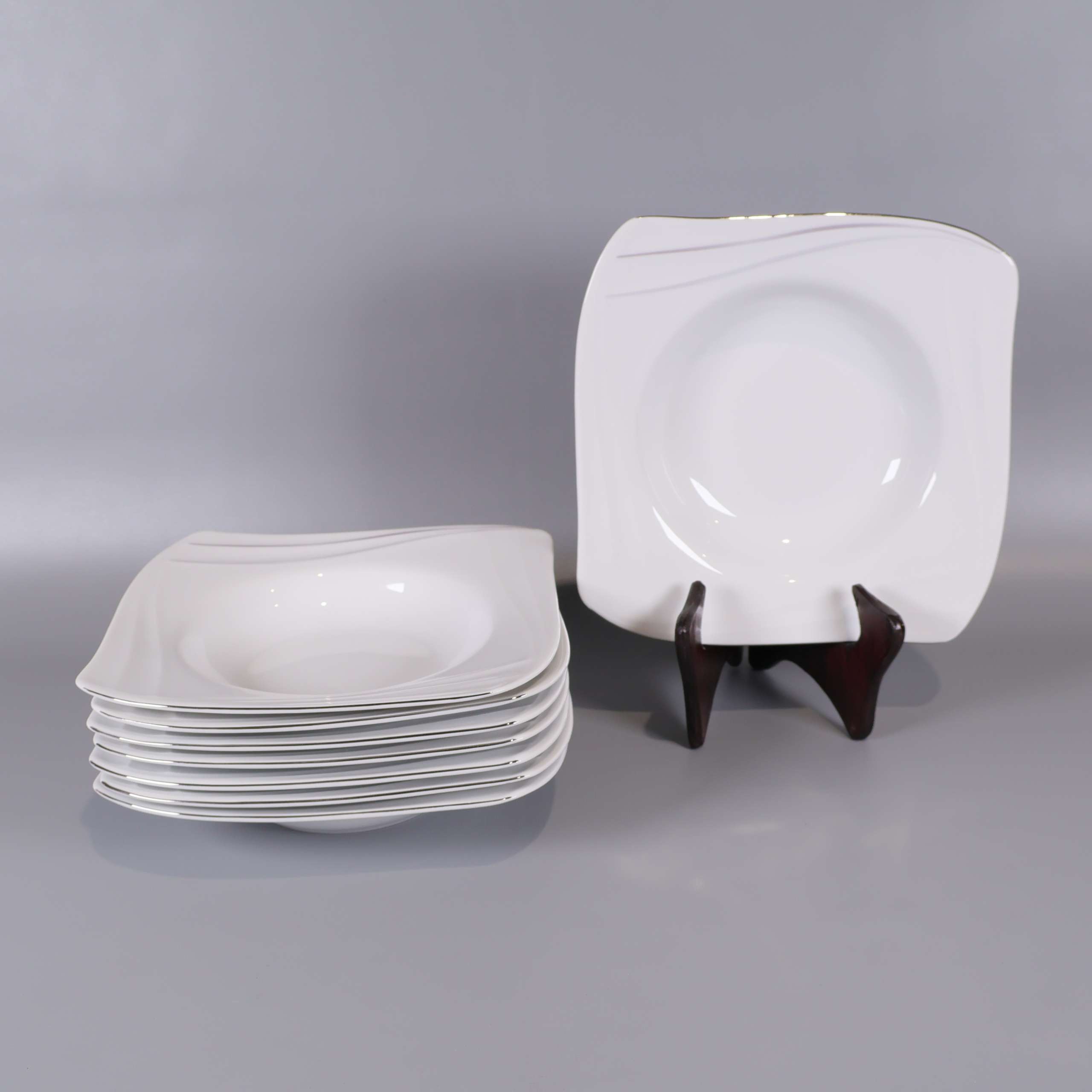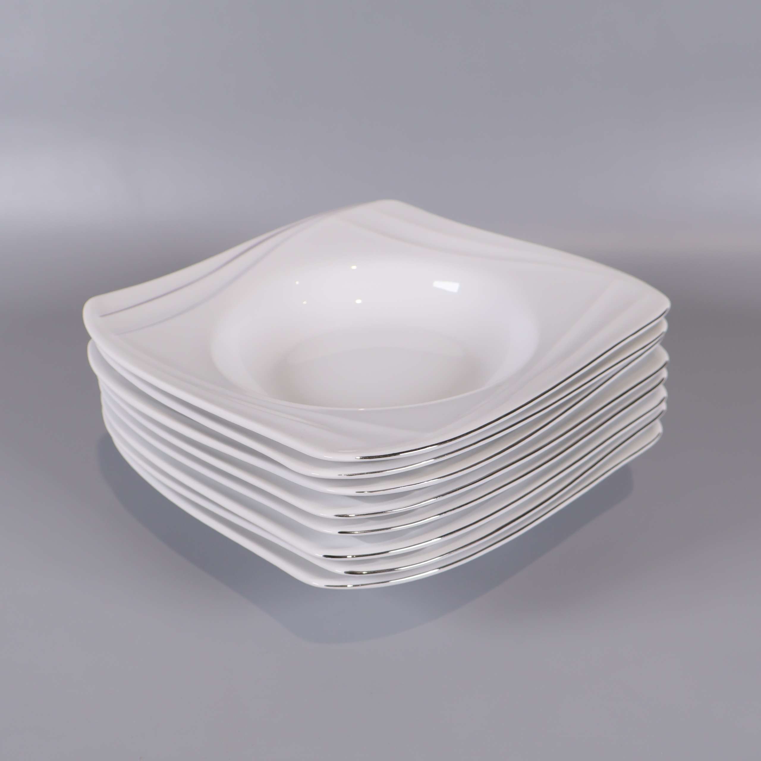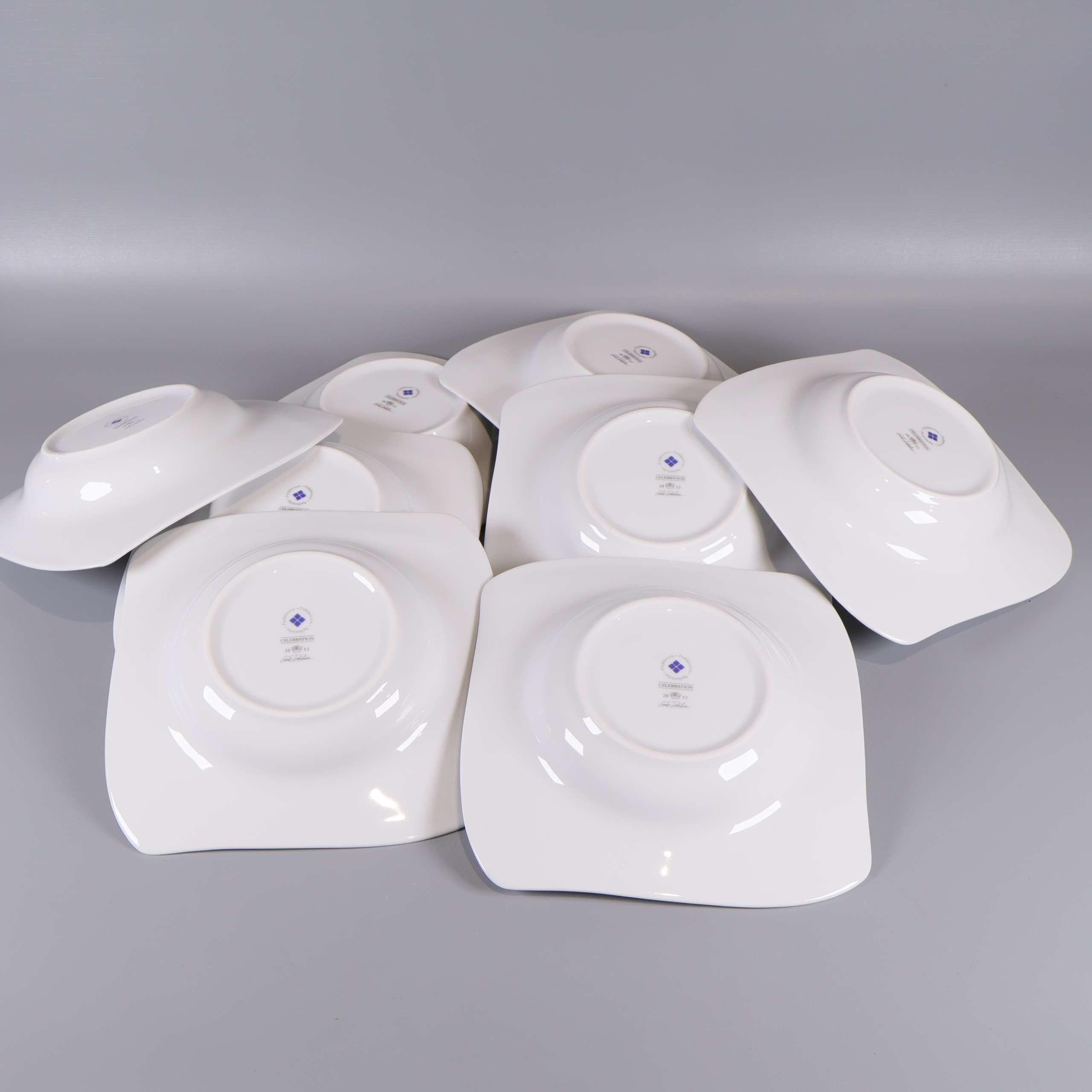 Fyrklövern Fyrklövern - Celebration - Anne Rooslien - Djupa tallrikar - 8-Pack 399 kr Product variation Antal st Beskrivning Set med åtta fyrkantiga djupa tallrikar i vit porslin med modernt vågigt formspråk. Stram men stilren design och lätt glänsande yta ger ett elegant intryck, perfekt som bas i dukningen oavsett tillfälle. Märkt med Celebration och Färgfabriken. Visa all beskrivning Skick Mycket gott skick Produkten är sparsamt använd, är av fin kvalitet och ska inte ha några skador eller förslitningar. Läs mer om hur vi bedömer Dimensions Bredd: ca 20.5cm, Längd: 20.5cm, Höjd: ca 4cm Färg Vit Material Porslin Varumärke Fyrklövern Produkten är unik och finns enbart som 1 st i lager. Fri frakt på alla köp över 990 kr. 14 dagars ångerrät.