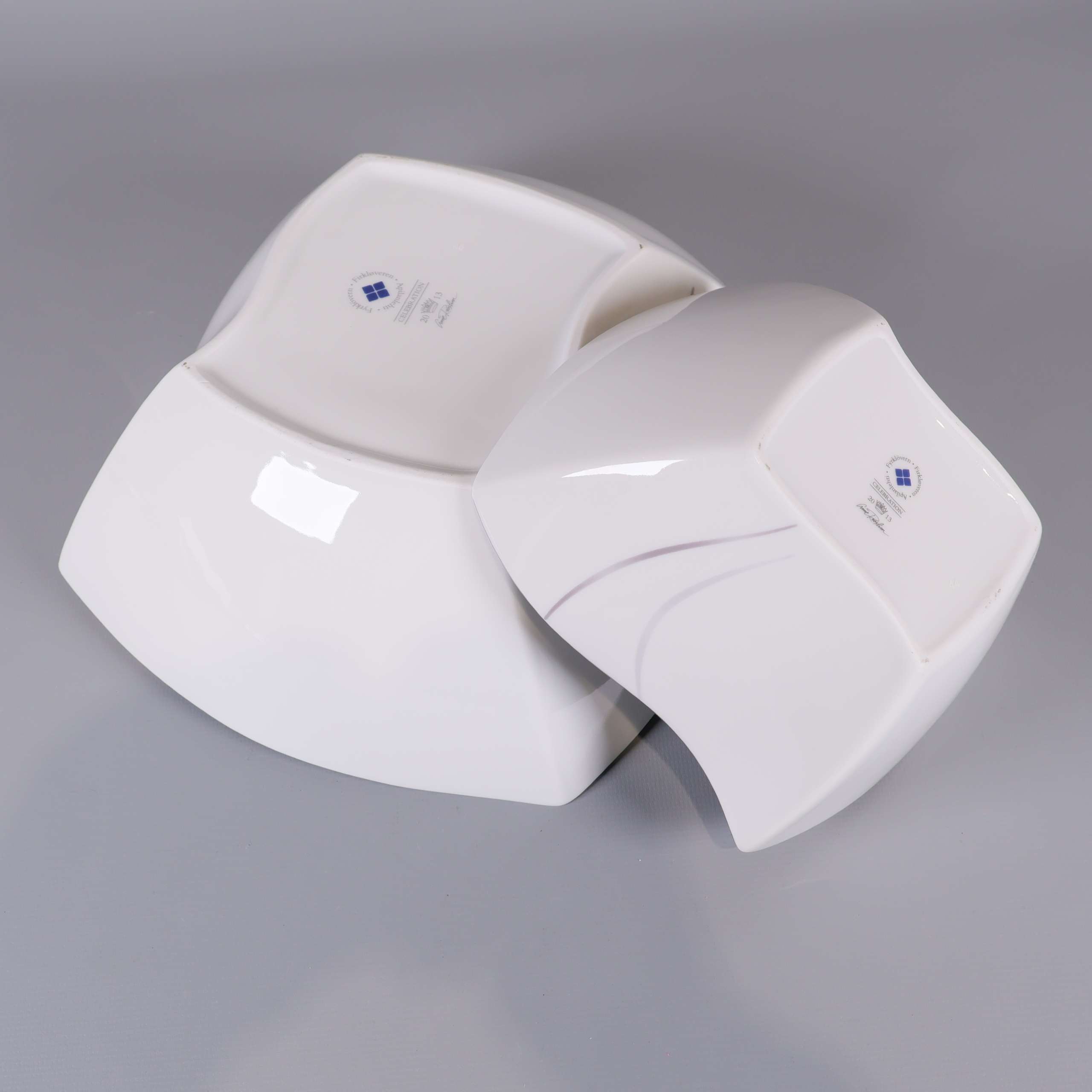 Fyrklövern Fyrklövern - Celebration - Anne Rooslien - Skålar set 299 kr Product variation Antal st Beskrivning Två vita fyrkantiga skålar från Fyrklövern i modern design. Blank yta, mjukt böjda former och diskreta silverfärgade linjedekorationer för en stilren känsla. Visa all beskrivning Skick Mycket gott skick Produkten är sparsamt använd, är av fin kvalitet och ska inte ha några skador eller förslitningar. Läs mer om hur vi bedömer Dimensions Bredd: ca 13.5-21cm, Längd: ca 13.5-21cm, Höjd: 7.5-9cm Färg Vit Material Porslin Varumärke Fyrklövern Produkten är unik och finns enbart som 1 st i lager. Fri frakt på alla köp över 990 kr. 14 dagars ångerrät.