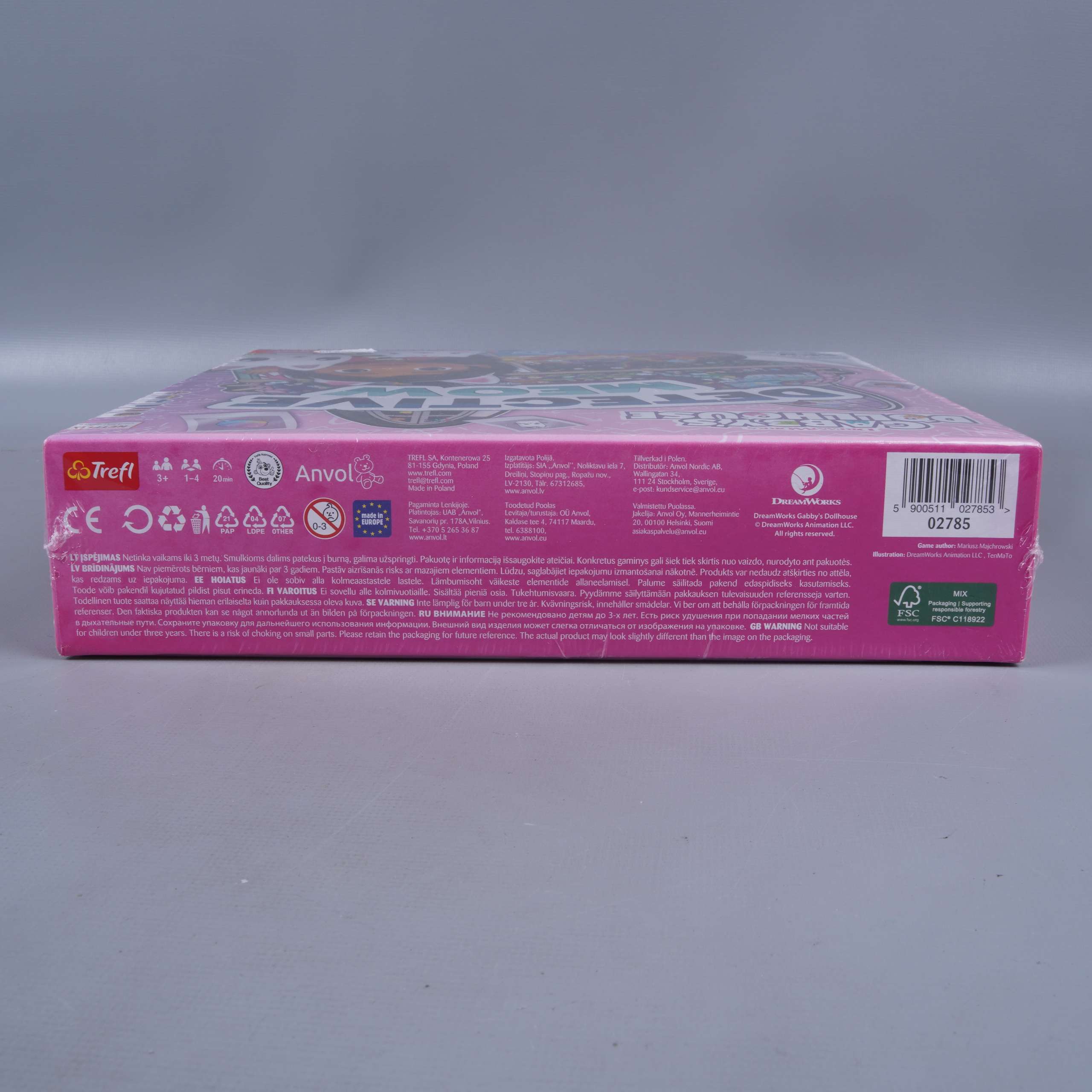 Färgglatt och lekfullt brädspel inspirerat av Gabby’s Dollhouse med charmiga karaktärer och mysig design. Lådan har glada pastellfärger, illustrationer av Gabby och kattkompisarna samt detaljerade motiv från spelets värld. Perfekt för dig som gillar äventyr, pussel och teamwork i ett sällskapsspel med tydlig 3+ märkning och barnvänlig känsla.