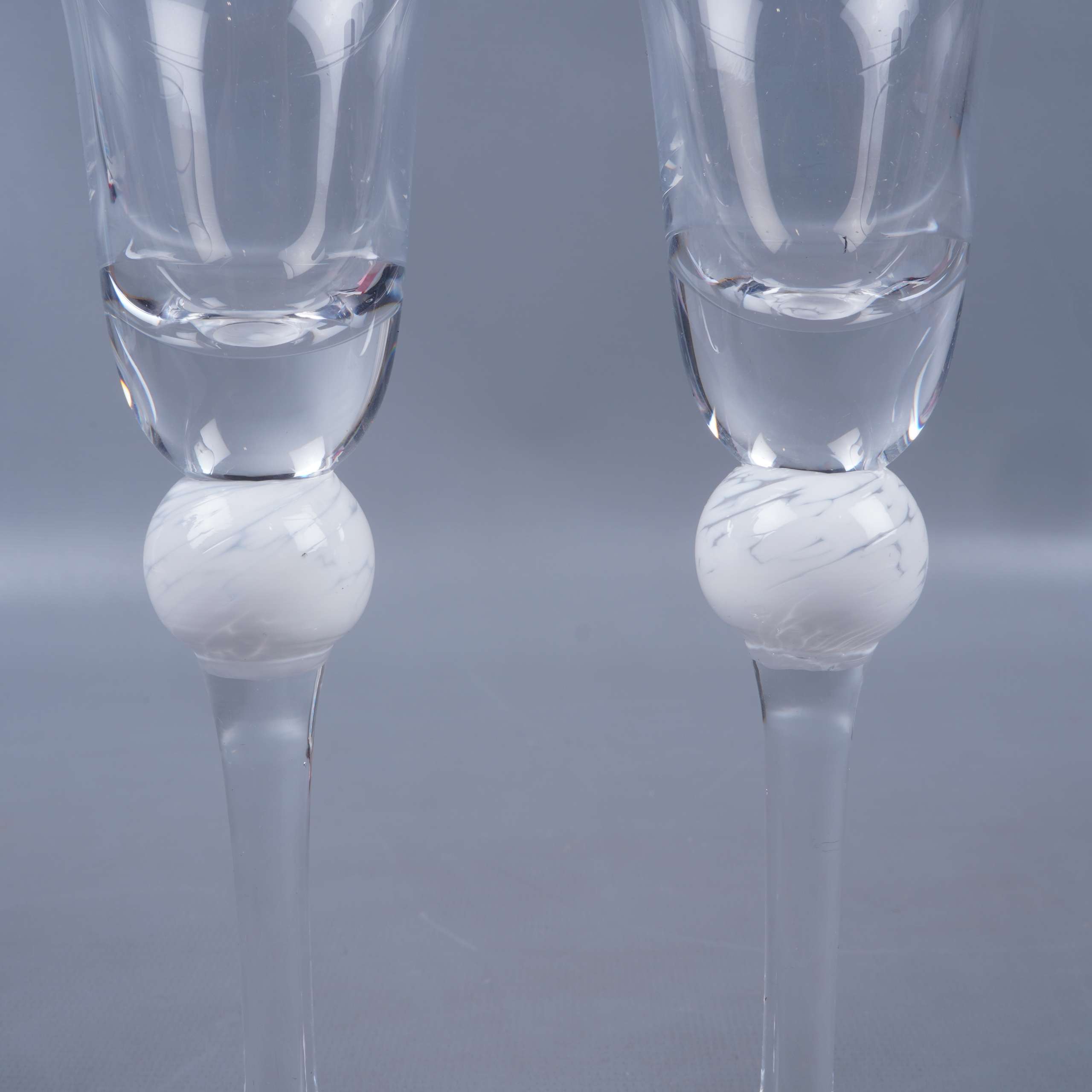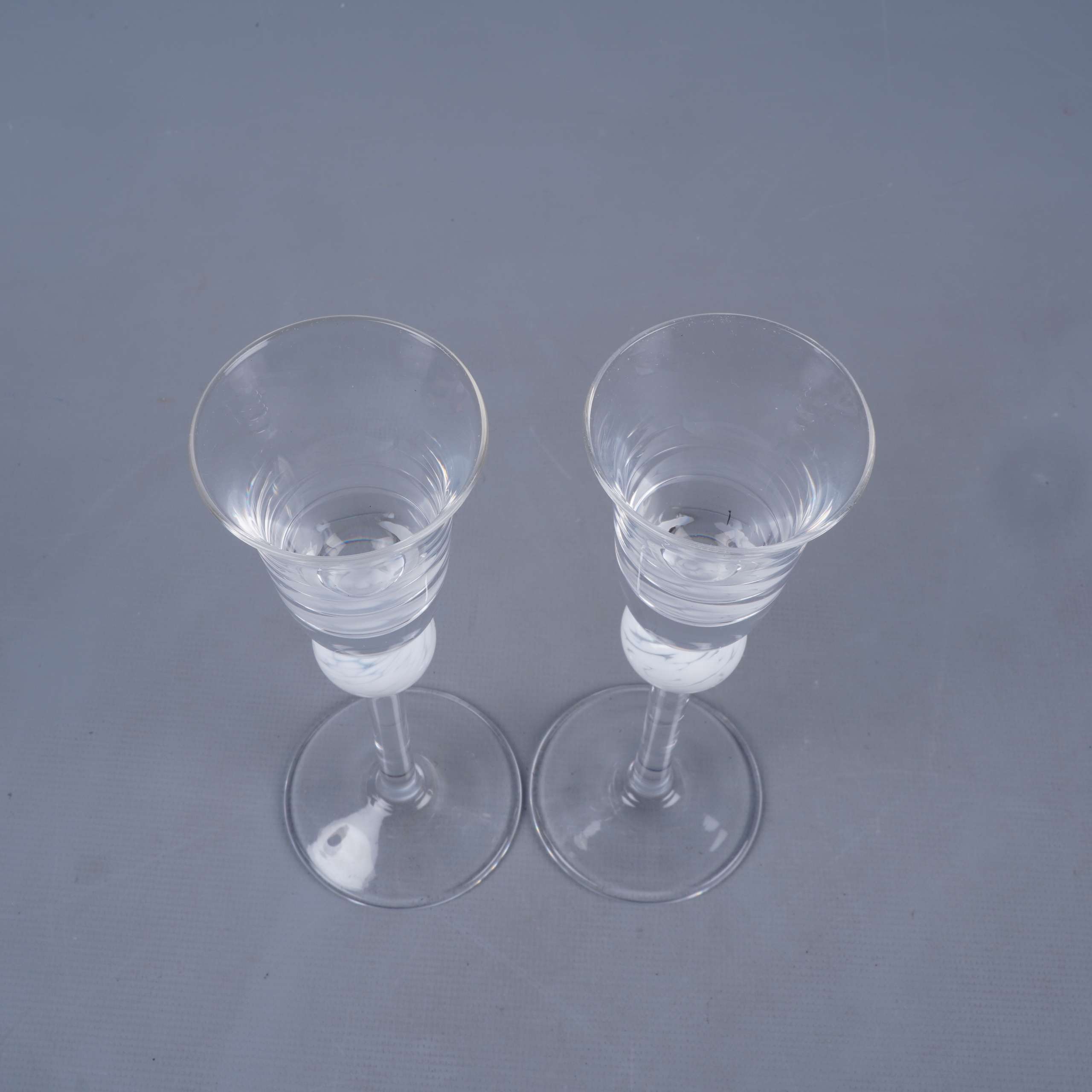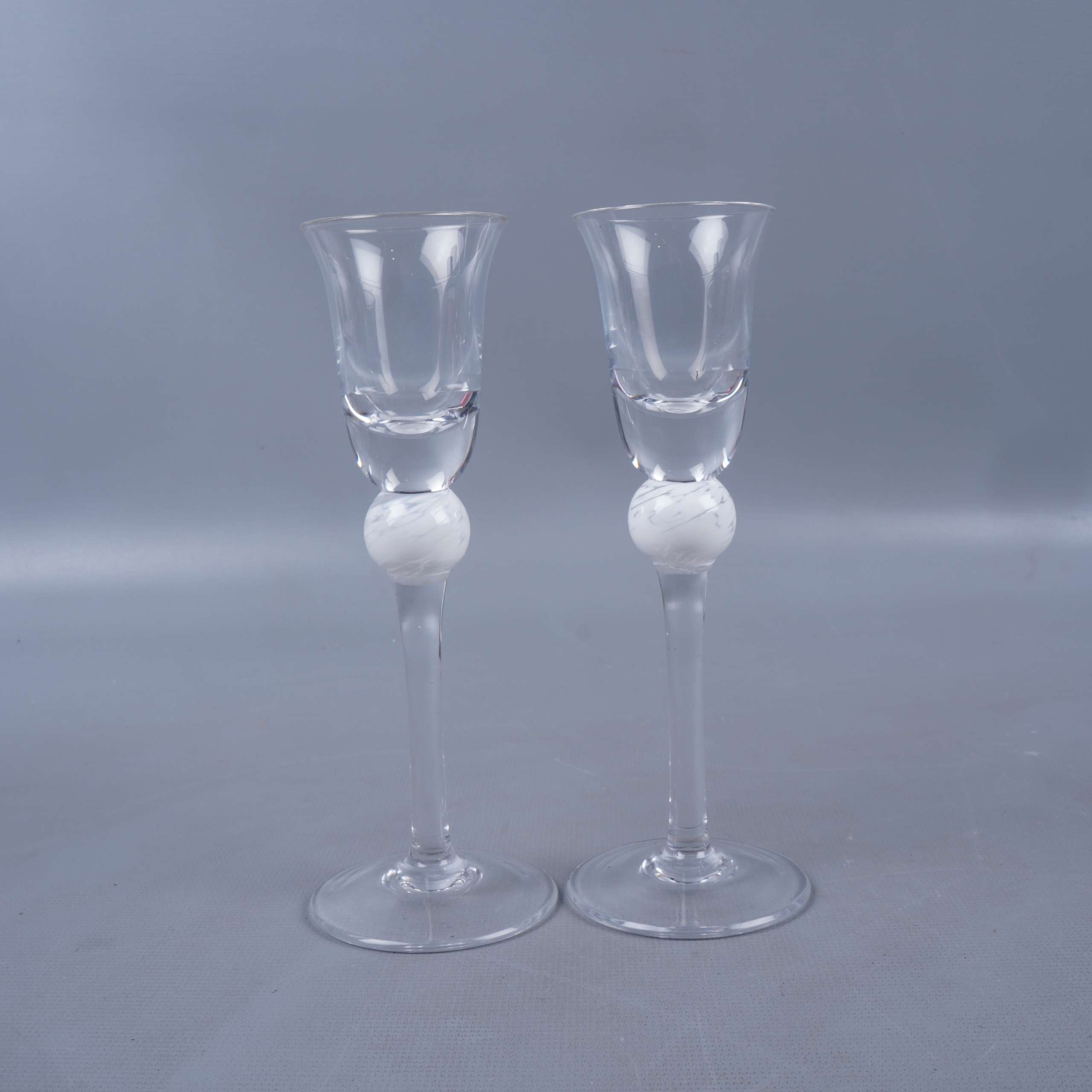Två eleganta snapsglas med klar kupa och en dekorativ vit boll på stjälken som ger en modern och kreativ känsla. Glasen levereras i originalförpackning och utmärker sig med sin stilrena design och fina hantverkskänsla.