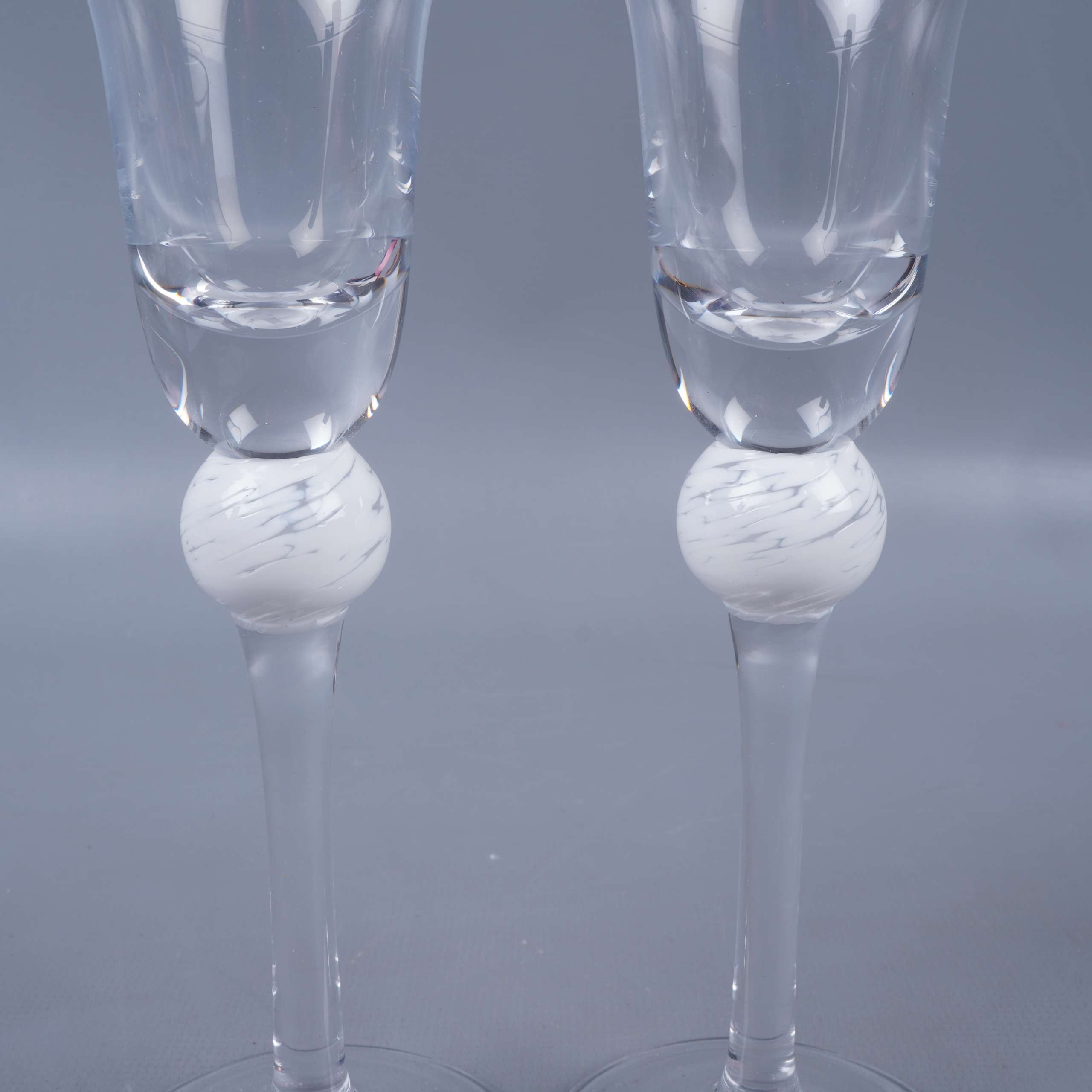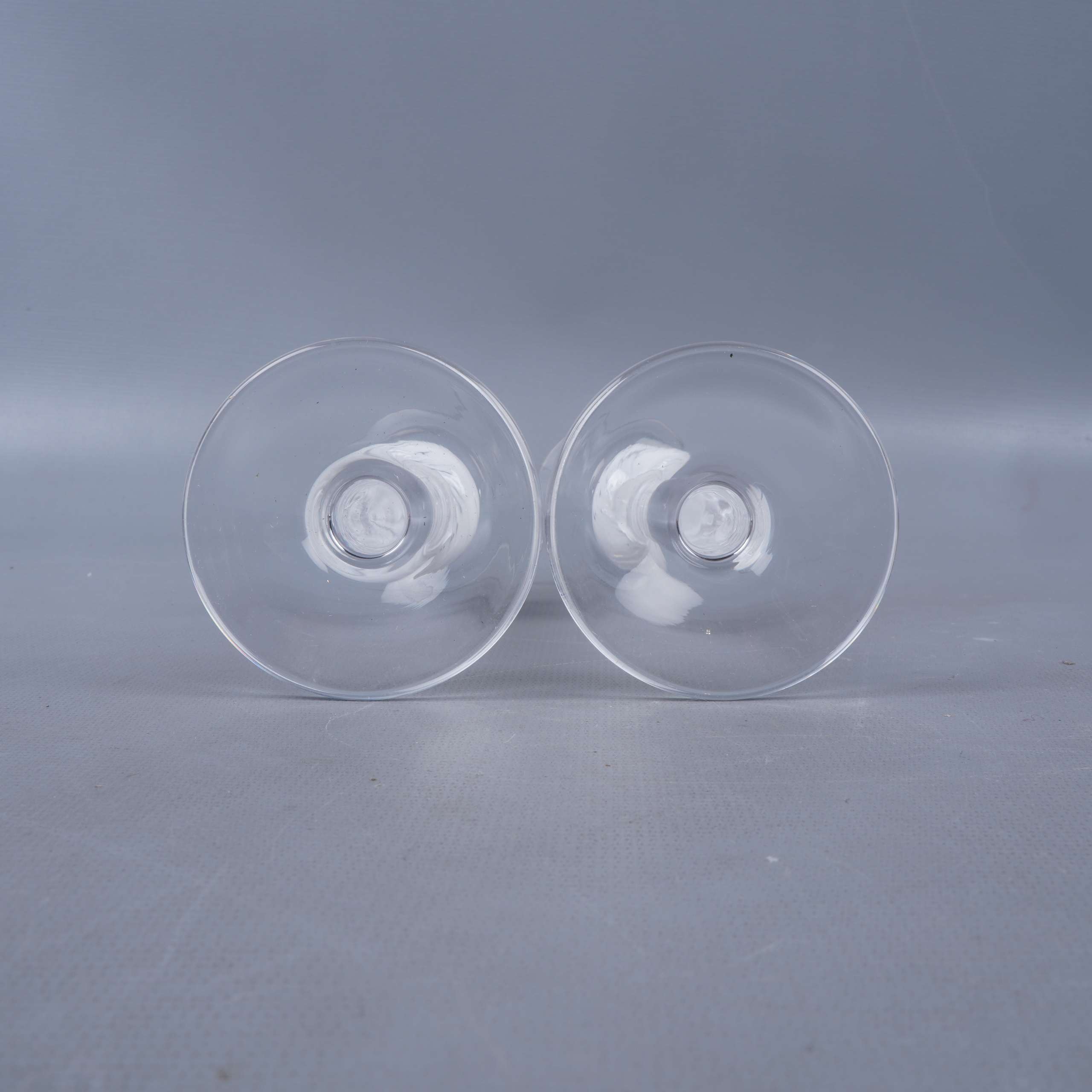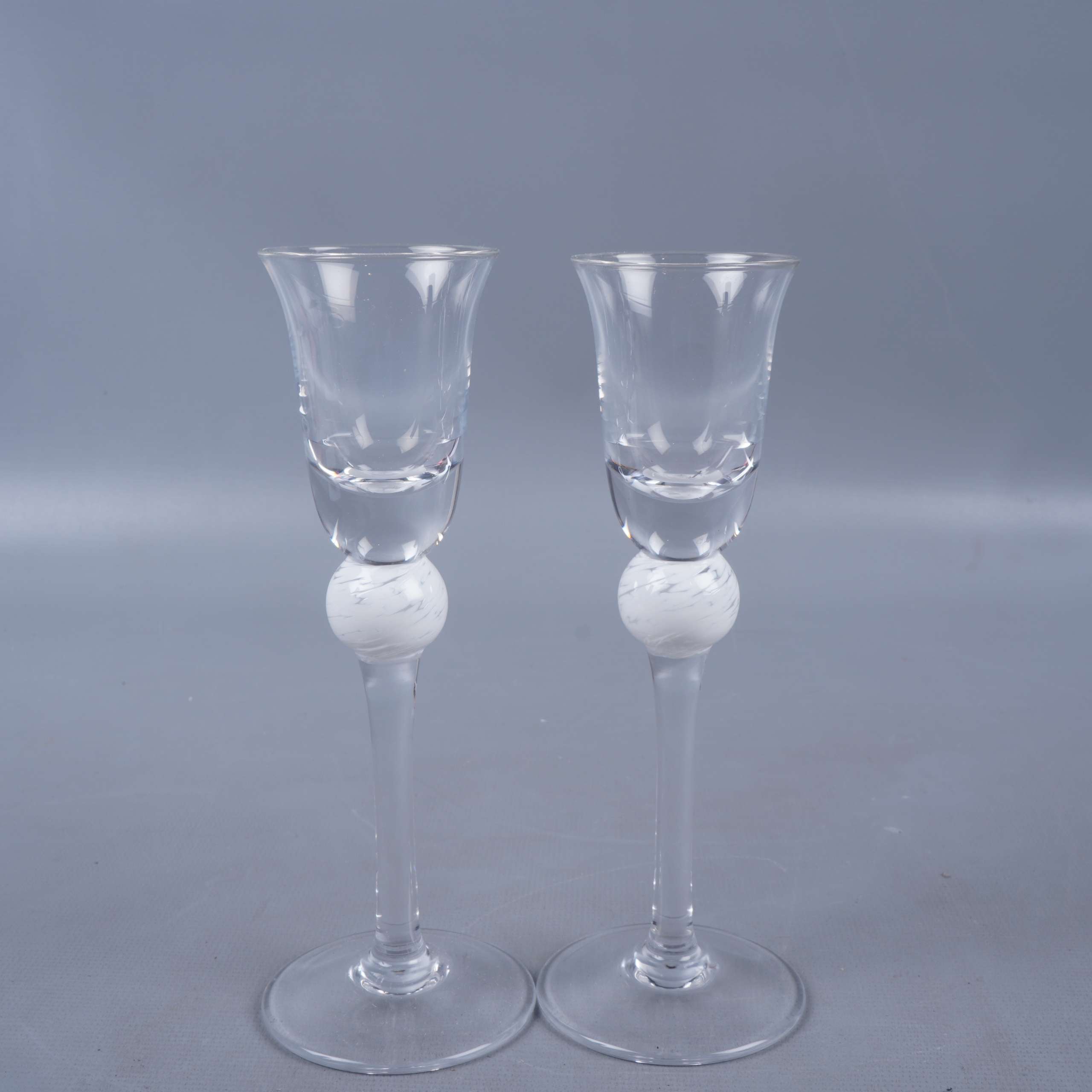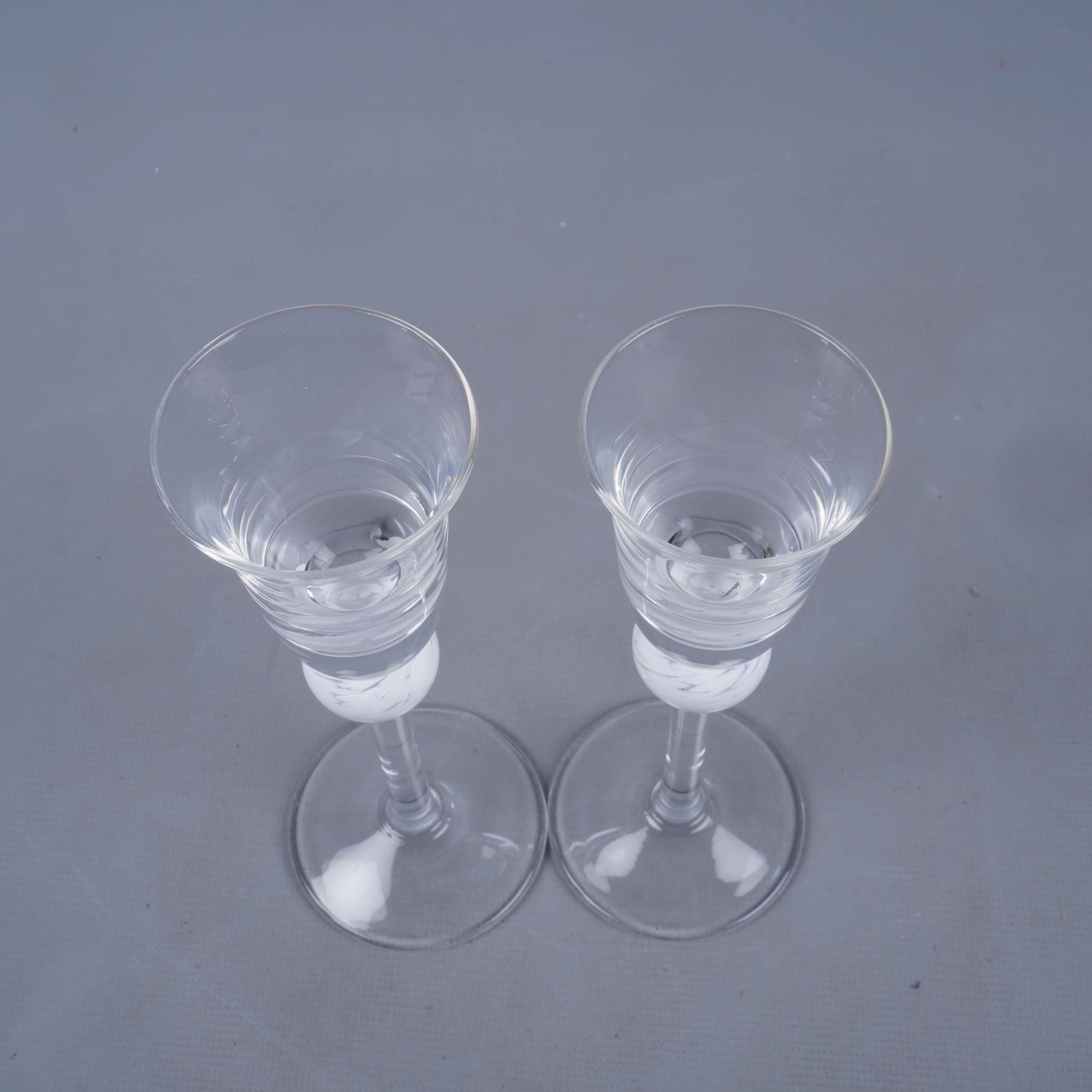 Set om två stilrena glas med elegant, hög fot och marmorerad vit dekorationskula. De smala glaskropparna ger en exklusiv känsla och passar både till fest och vardagslyx. Levereras i originalförpackning från Glashyttan, vilket ger en genuin vintage vibe.