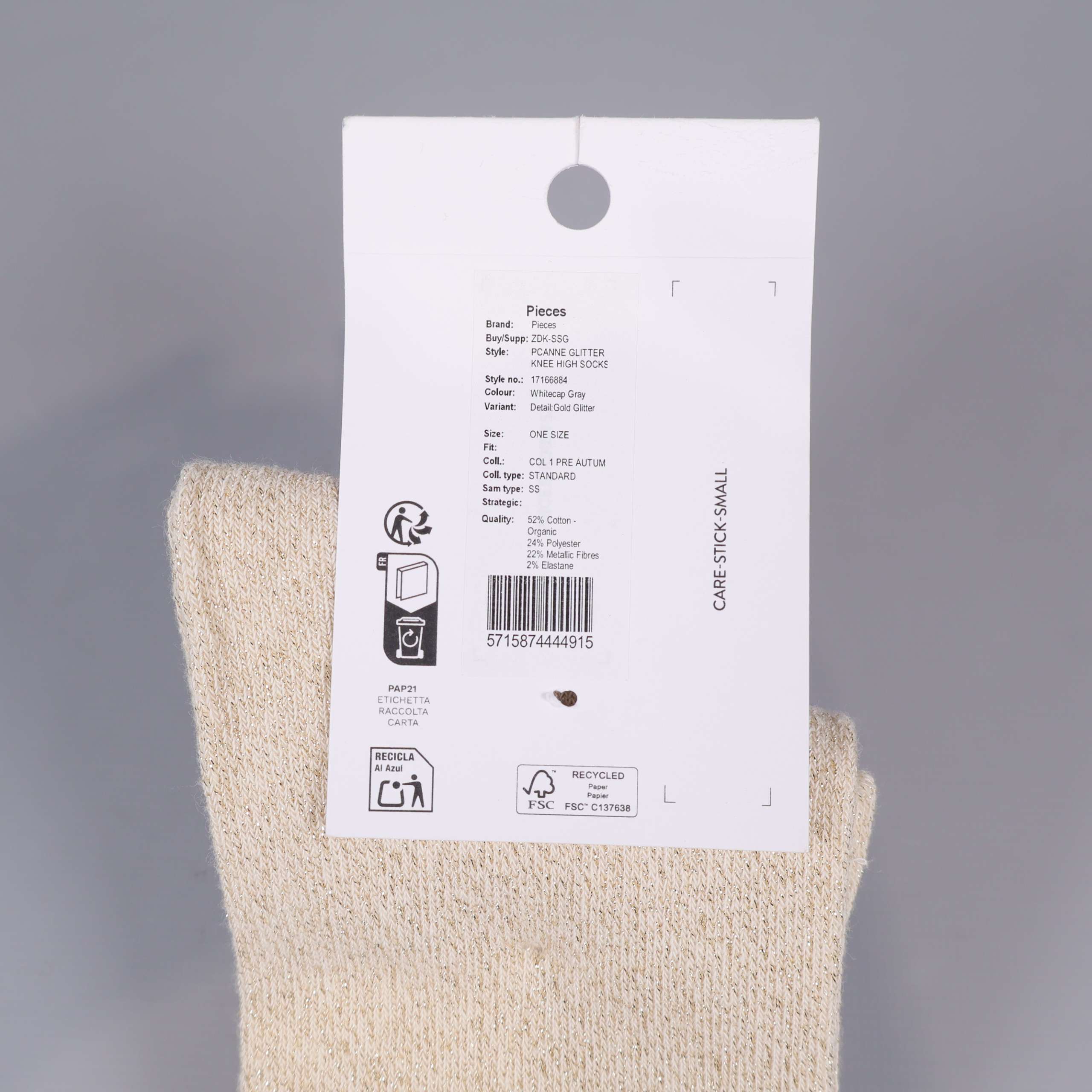 Mjuka, skimrande strumpor i onesize som ger en touch av glitter till vilken outfit som helst. Tunn, stretchig kvalitet med diskret ribbad textur för en bekväm och flexibel passform. Enkelt, neutralt beige ton som passar perfekt både till vardag och när du vill addera lite extra shine till looken.