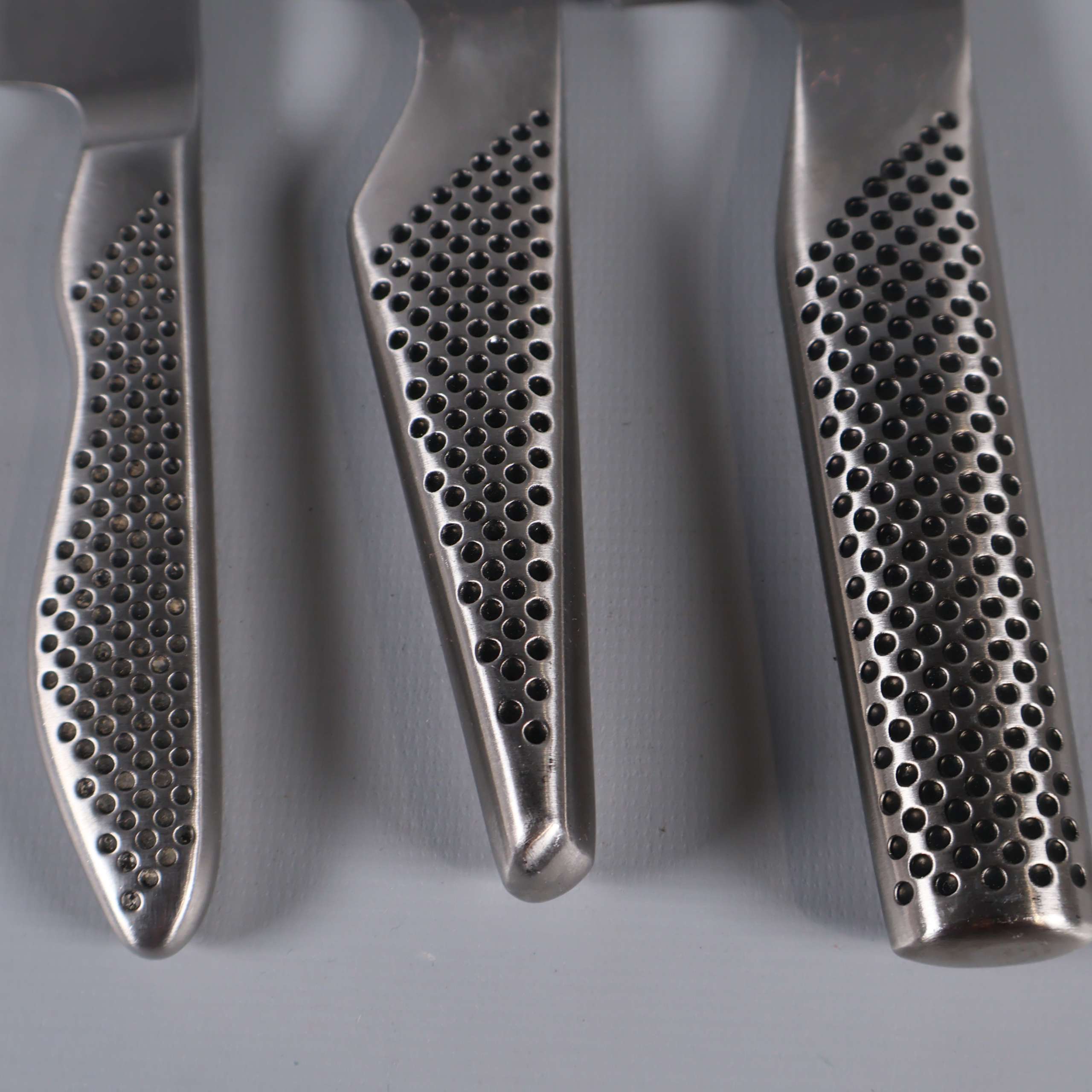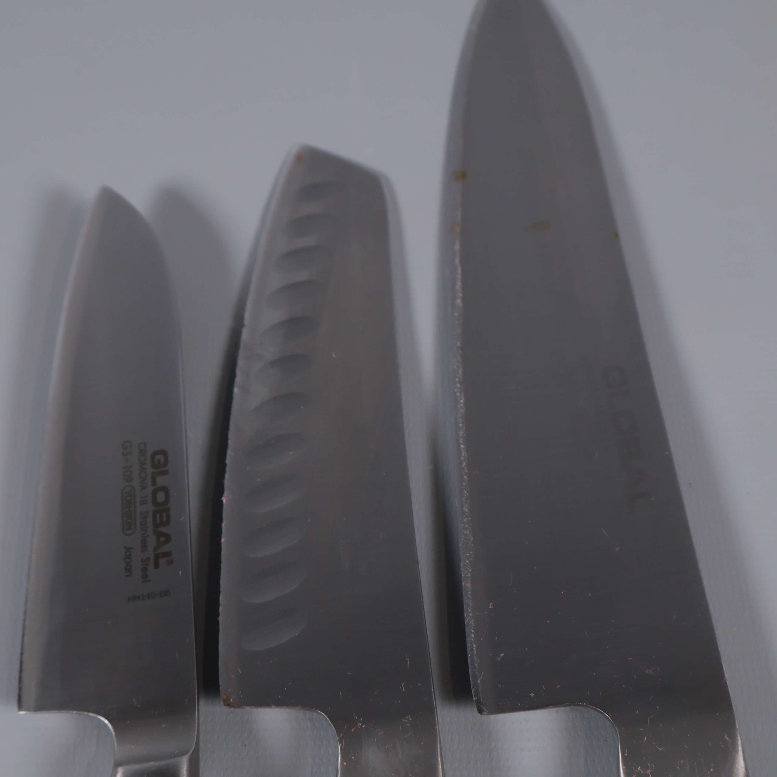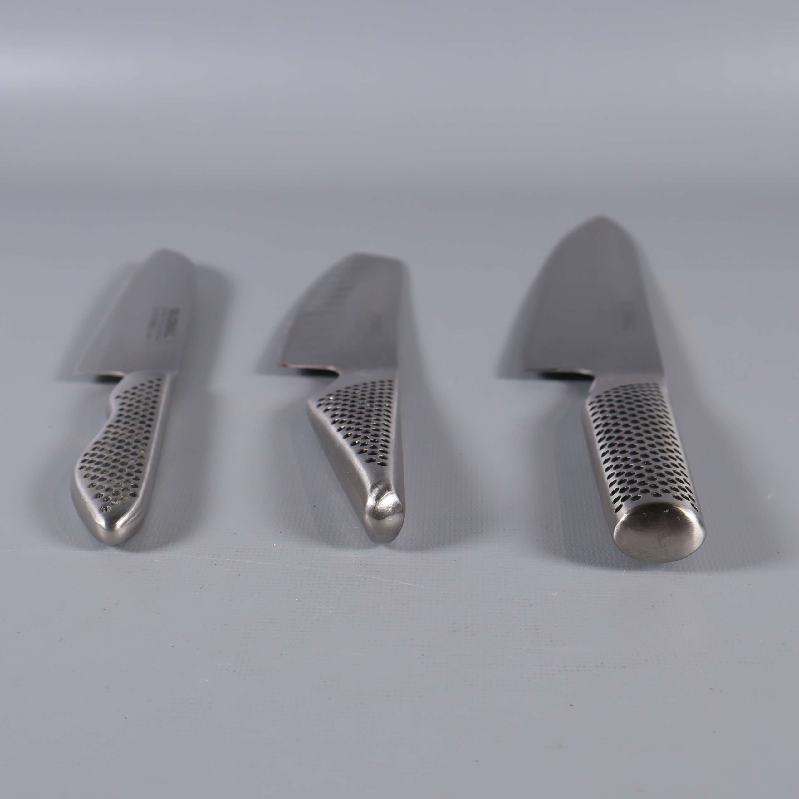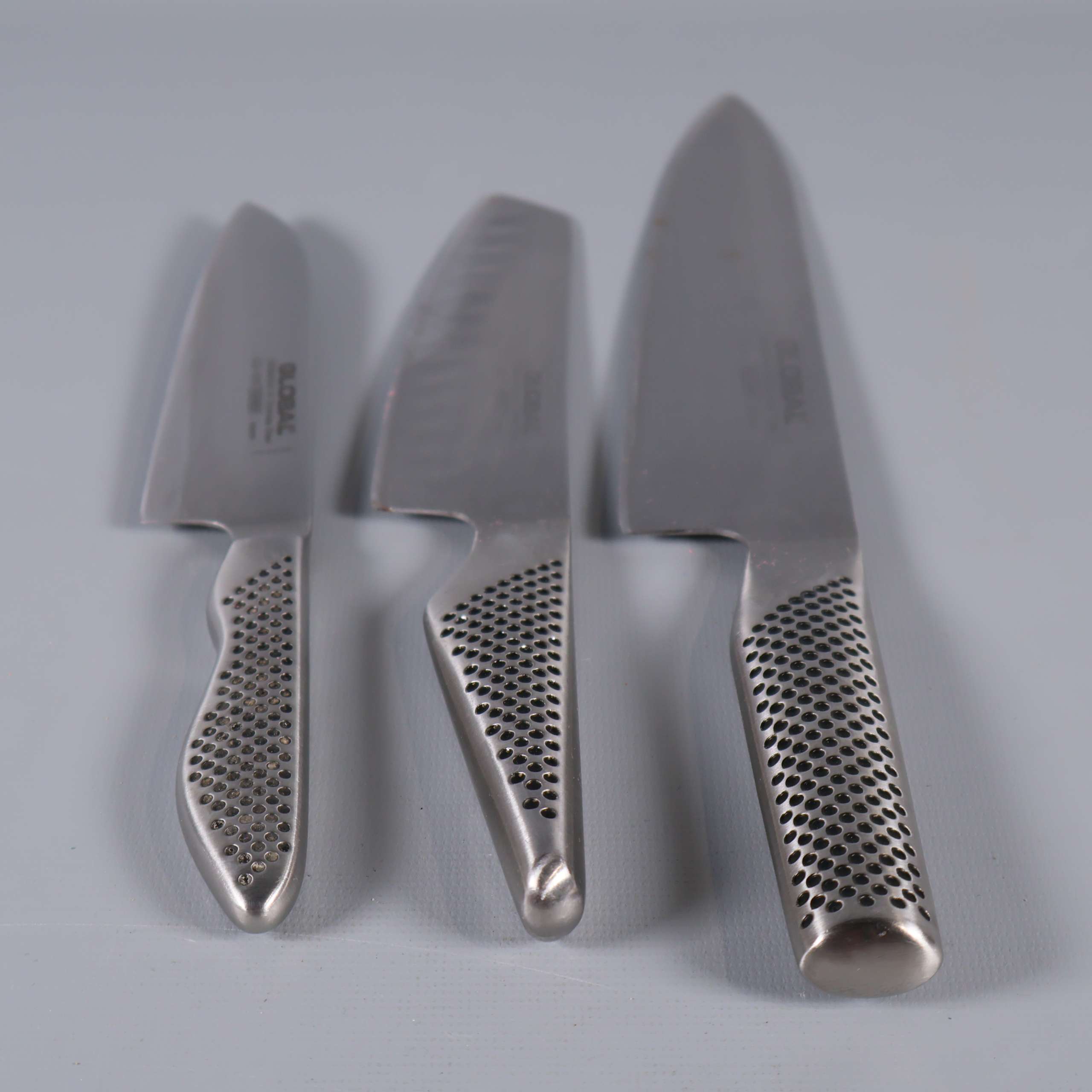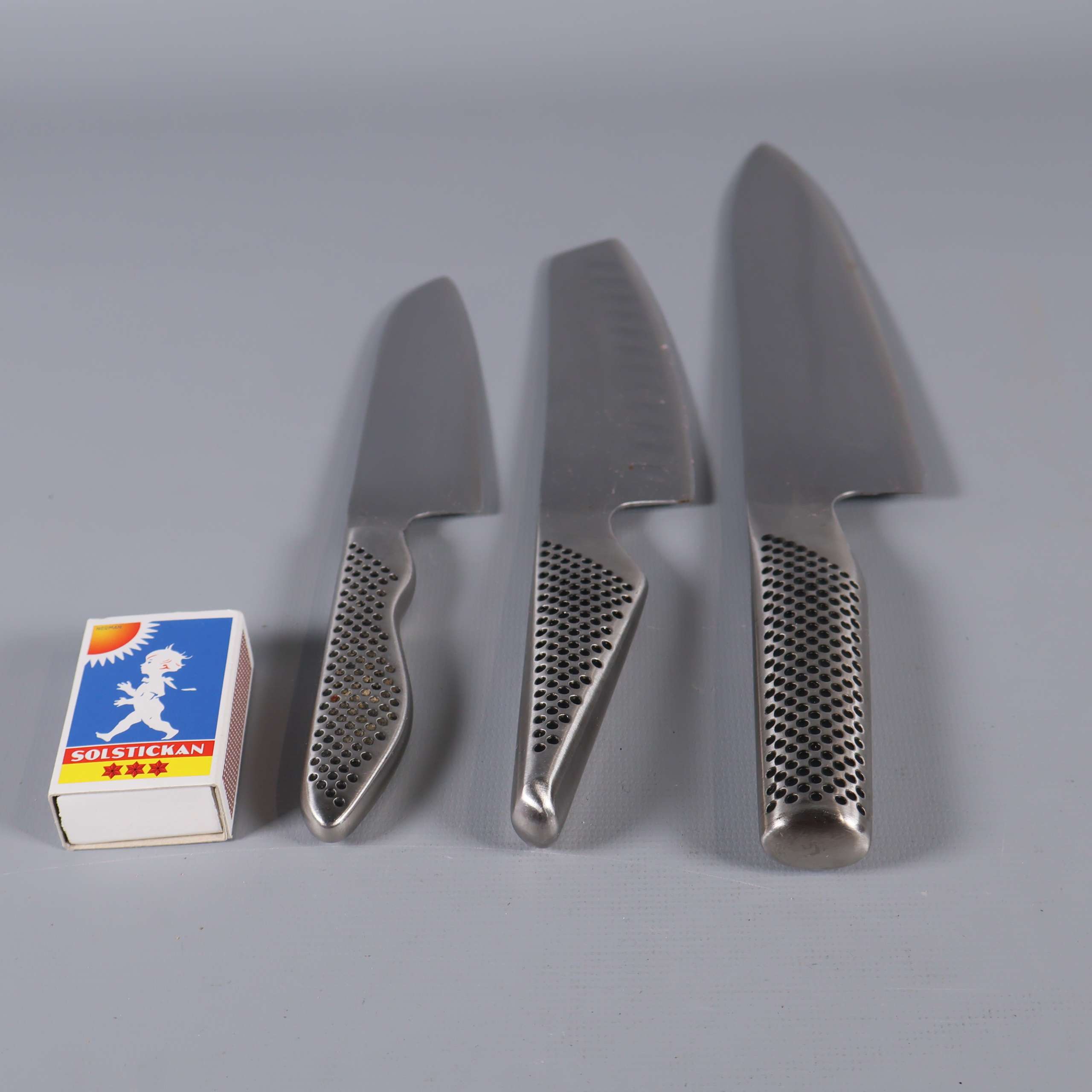 Global Global - Knivset i rostfritt stål - 3 st 349 kr Product variation Antal st Beskrivning Knivset från Global med tre knivar i rostfritt stål. Greppet har ett karakteristiskt prickmönster och känns modernt och greppvänligt. Stilren design med tydlig japansk inspiration och hög finish ger köket en proffsig touch. Visa all beskrivning Detaljer Längd: 23-32 cmÖvrigt: 3st Skick Använt skick Produkten har blivit använd och kan ha slitits eller ha mindre skador Läs mer om hur vi bedömer Dimensions Längd: ca 23-32 cm Färg Silver Material Rostfritt stål Varumärke Global Produkten är unik och finns enbart som 1 st i lager. Fri frakt på alla köp över 990 kr. 14 dagars ångerrät.