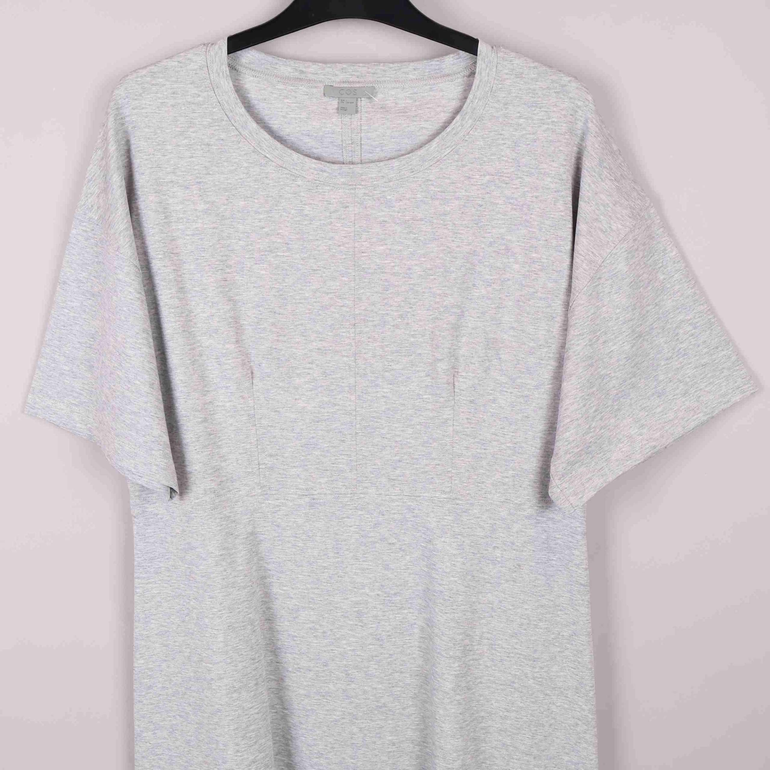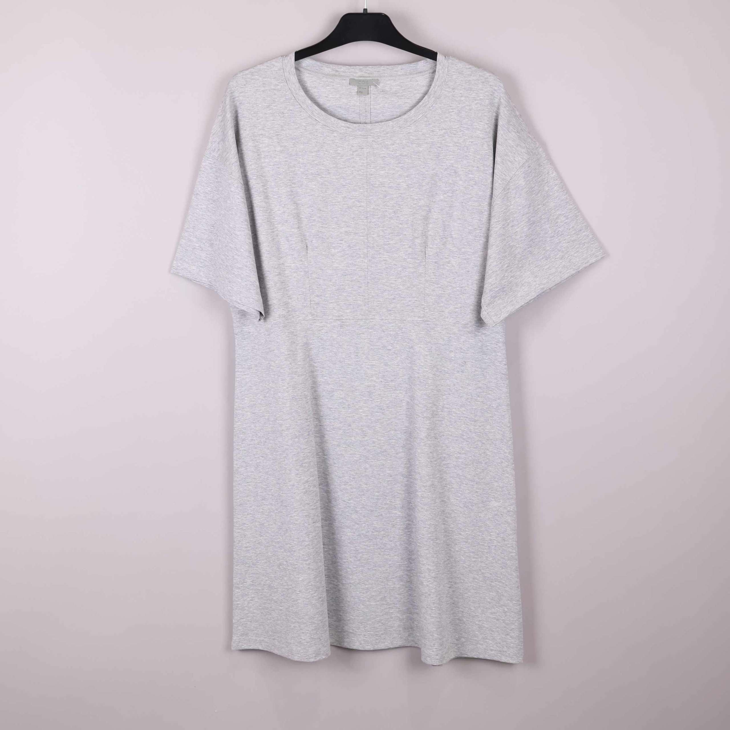 Stilren klänning från COS i mjuk gråmelerad ton med avslappnad, rak passform och diskret rund halsringning. Materialblandningen ger ett modernt och bekvämt uttryck för dig som gillar en enkel och clean look.