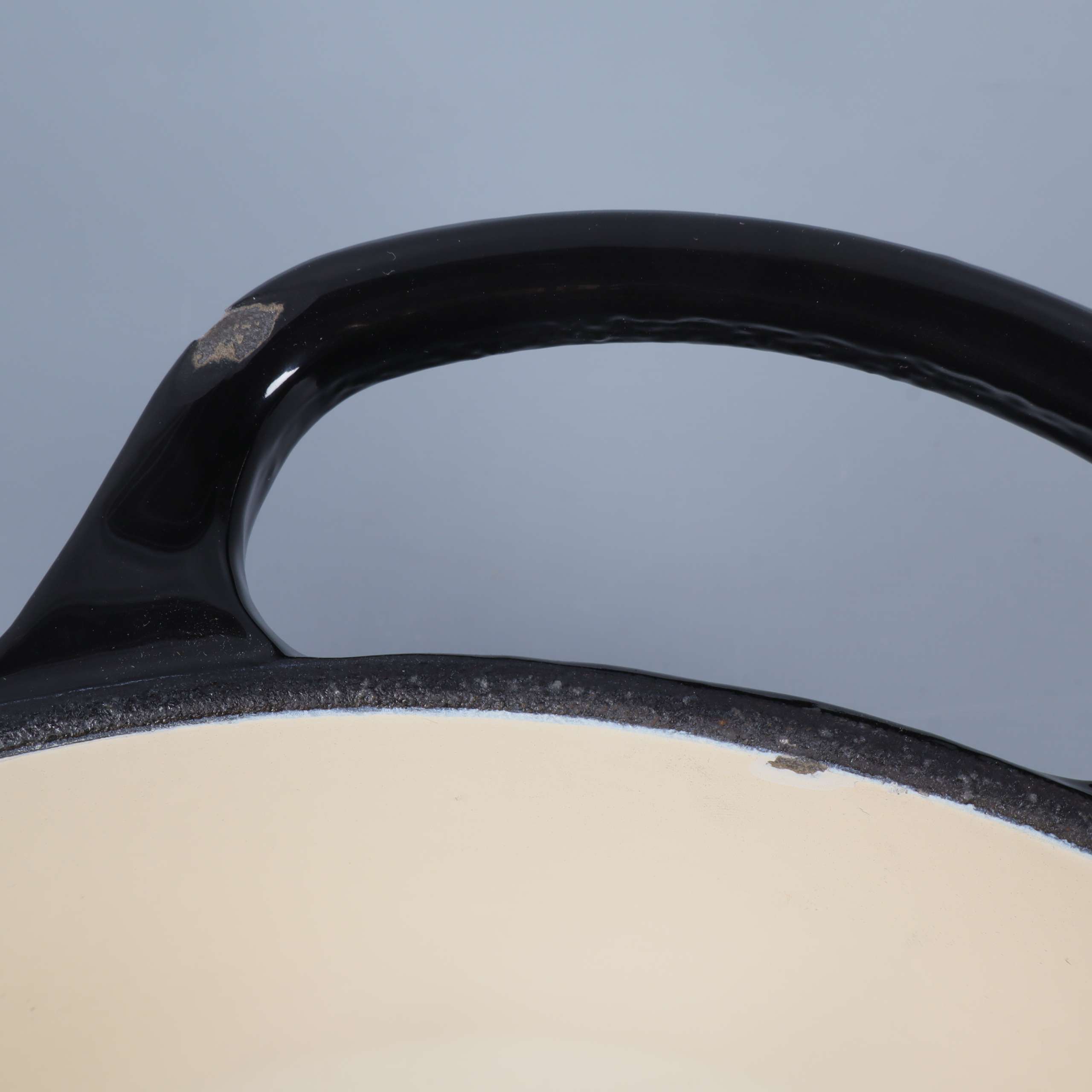 OBS! Skada på emaljen vid handtag, kant och insidan av locket (bild 5 och 6)
