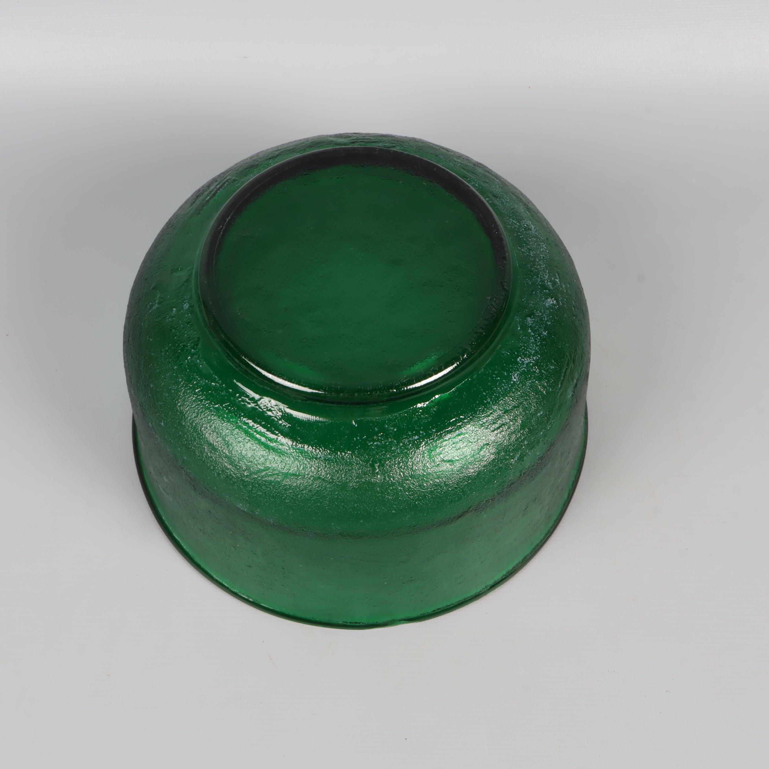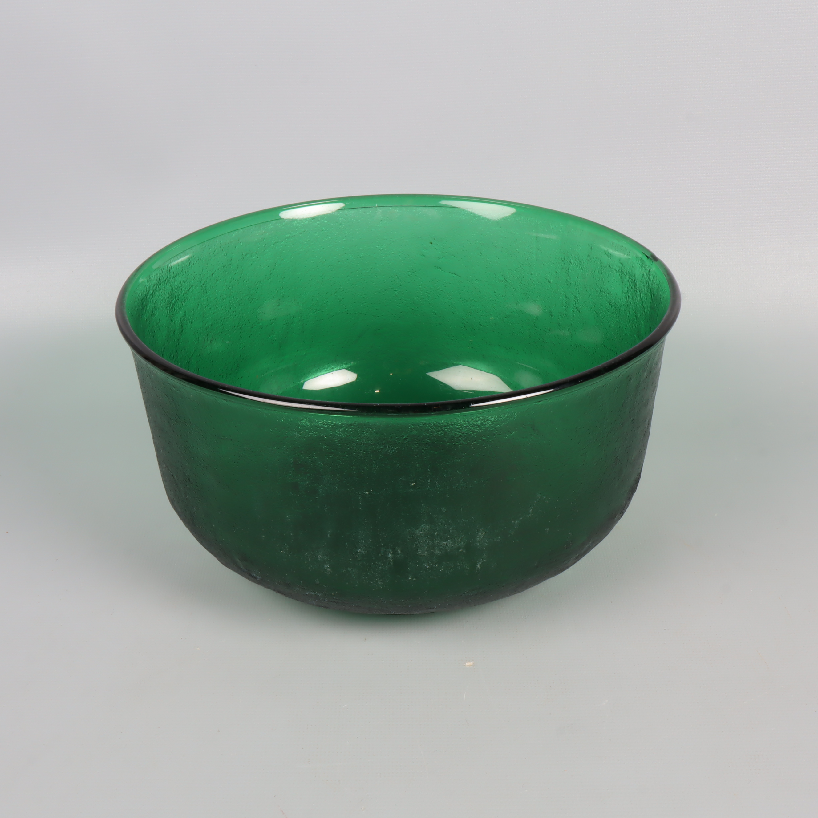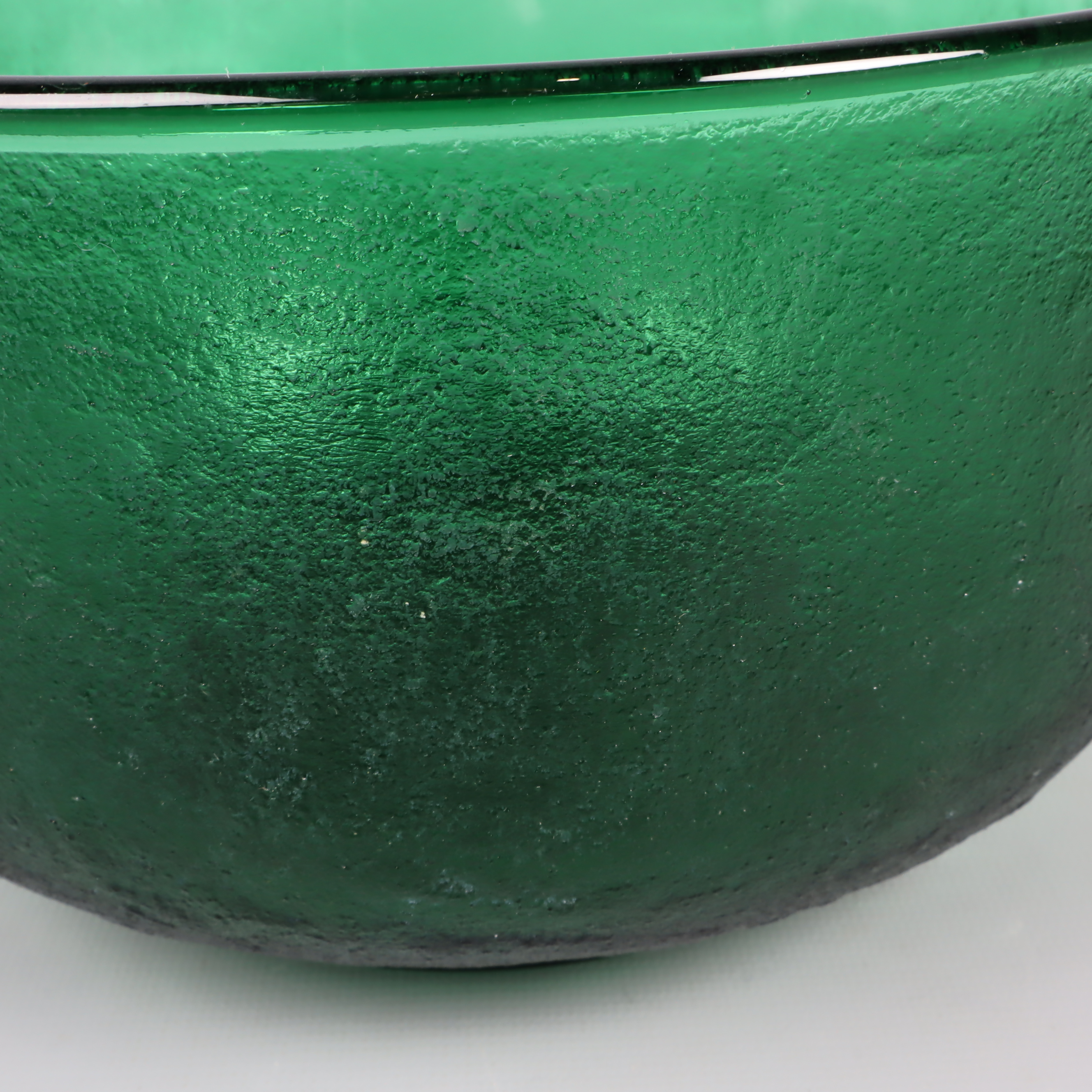 Denna gröna skål i glas har en vacker, strukturerad yta med halvgenomskinlig finish. Den rundade formen och djupet gör den perfekt som statement piece.
