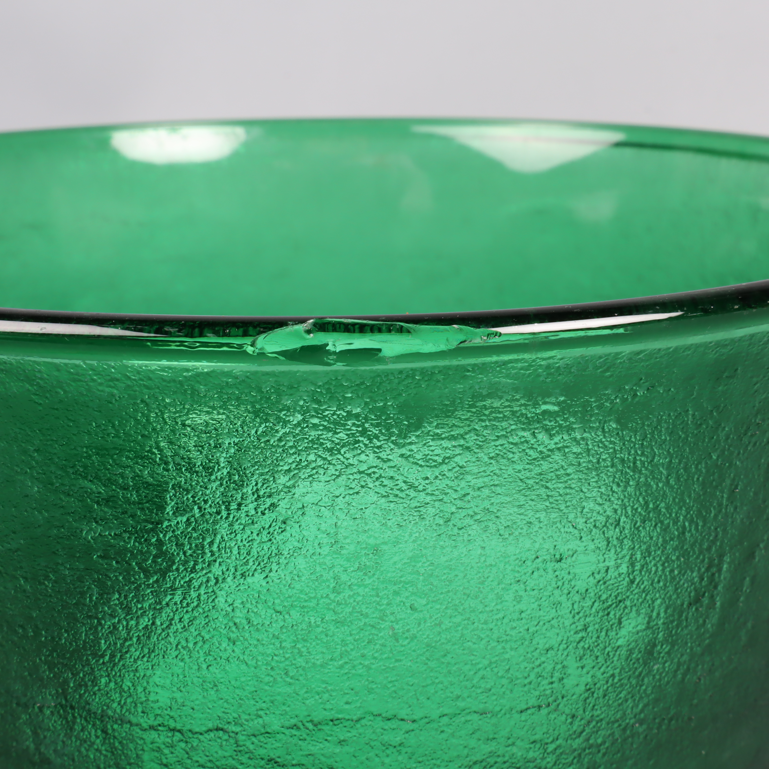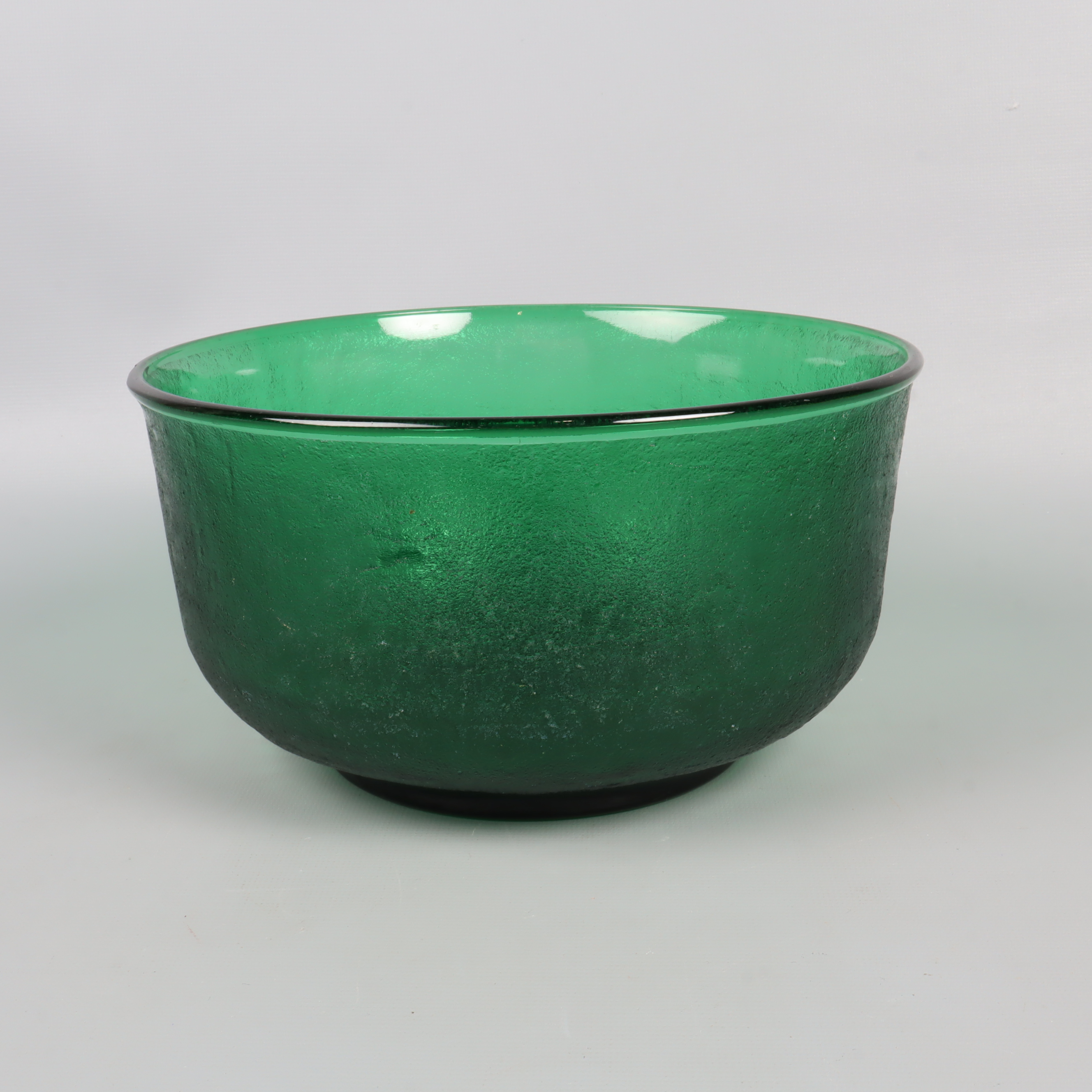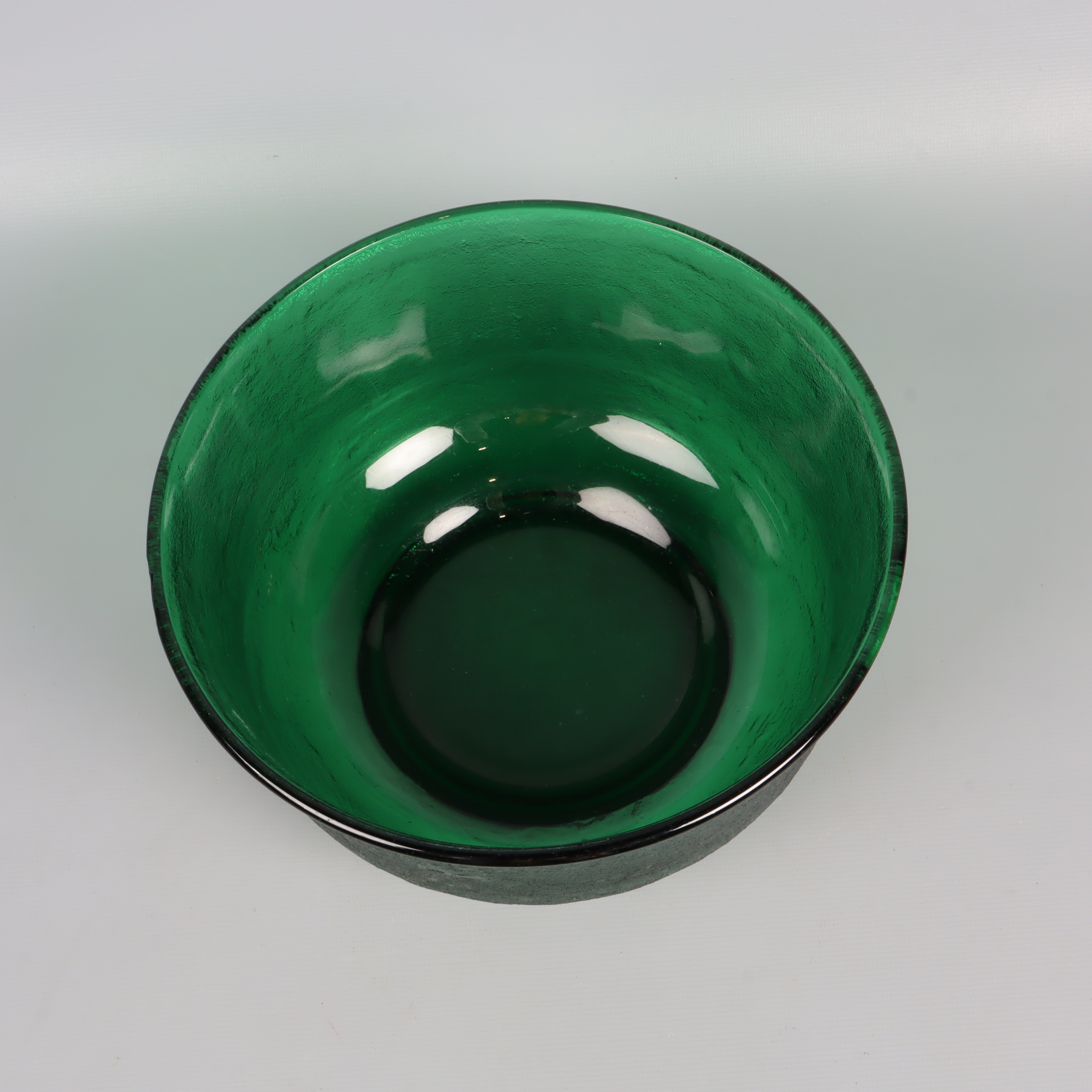 Denna gröna skål i glas har en vacker, strukturerad yta med halvgenomskinlig finish. Den rundade formen och djupet gör den perfekt som statement piece.