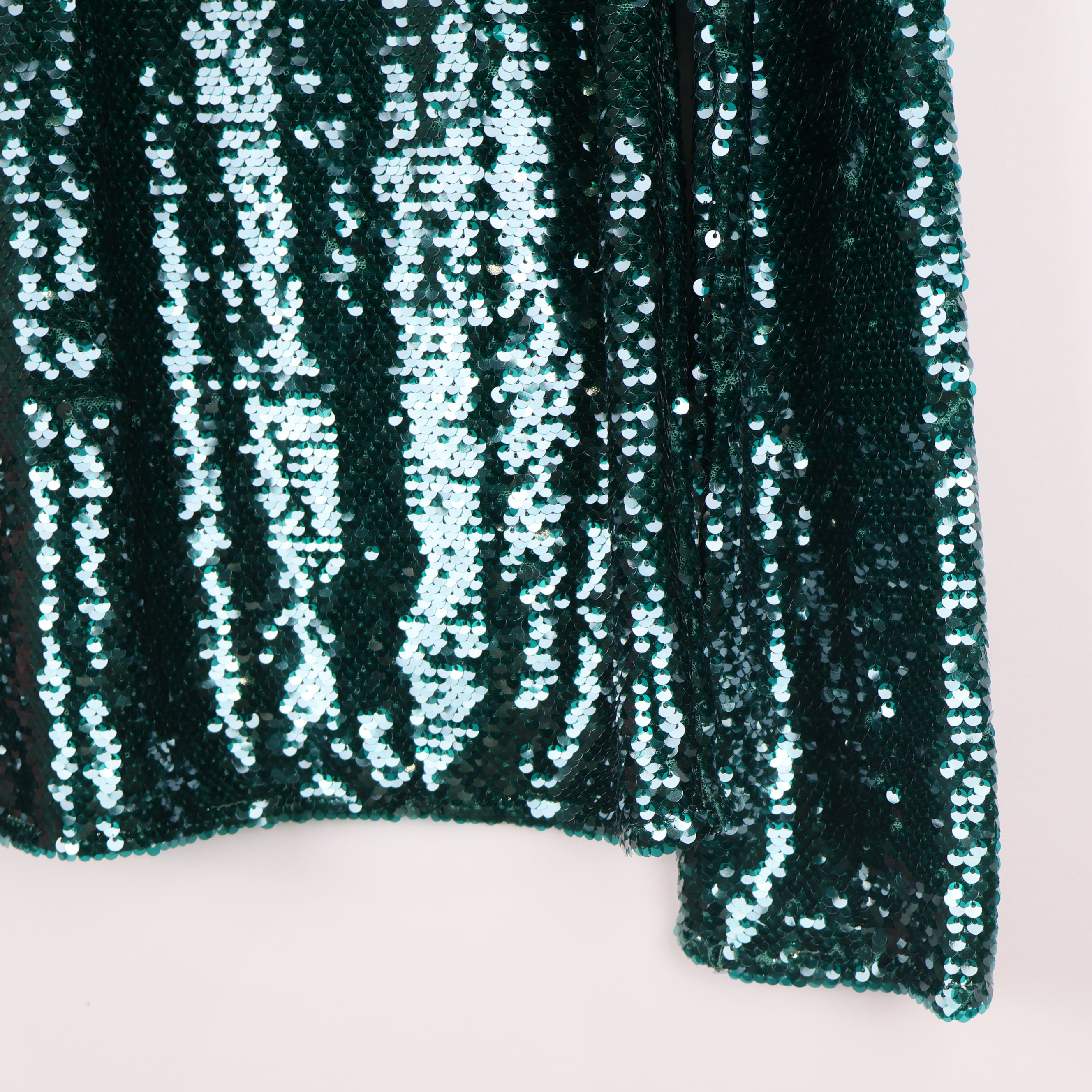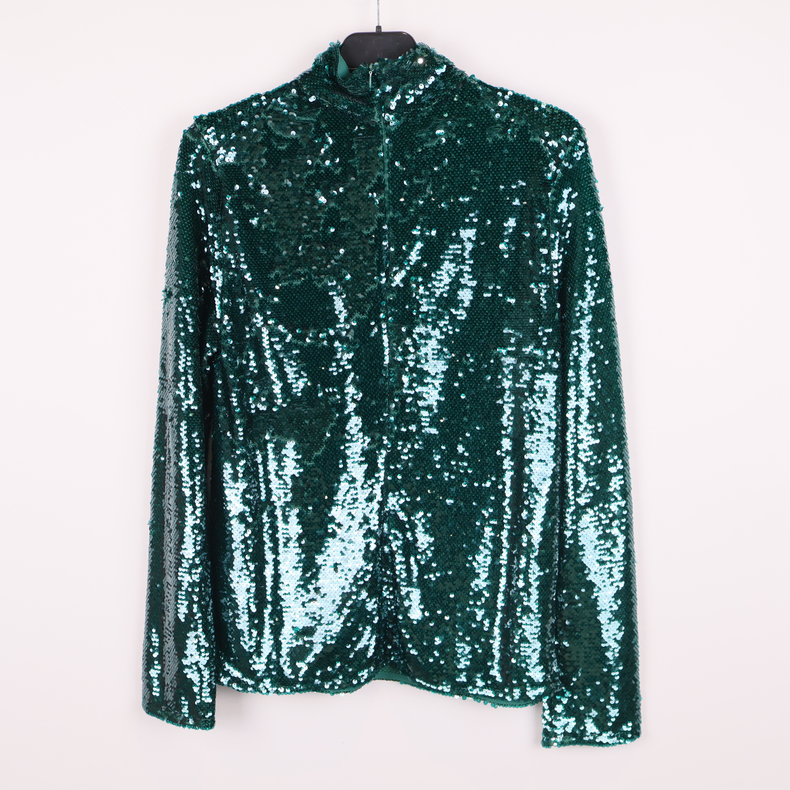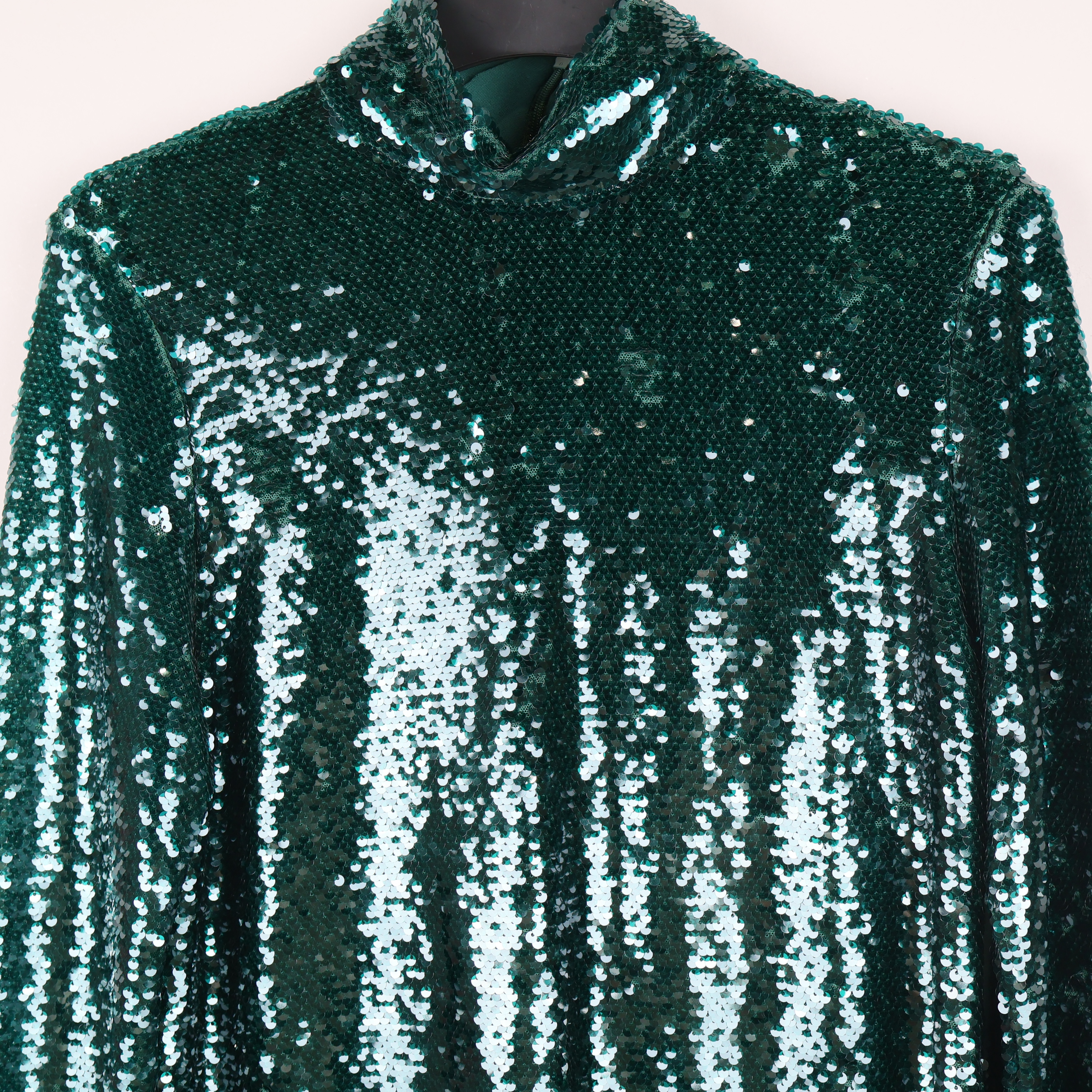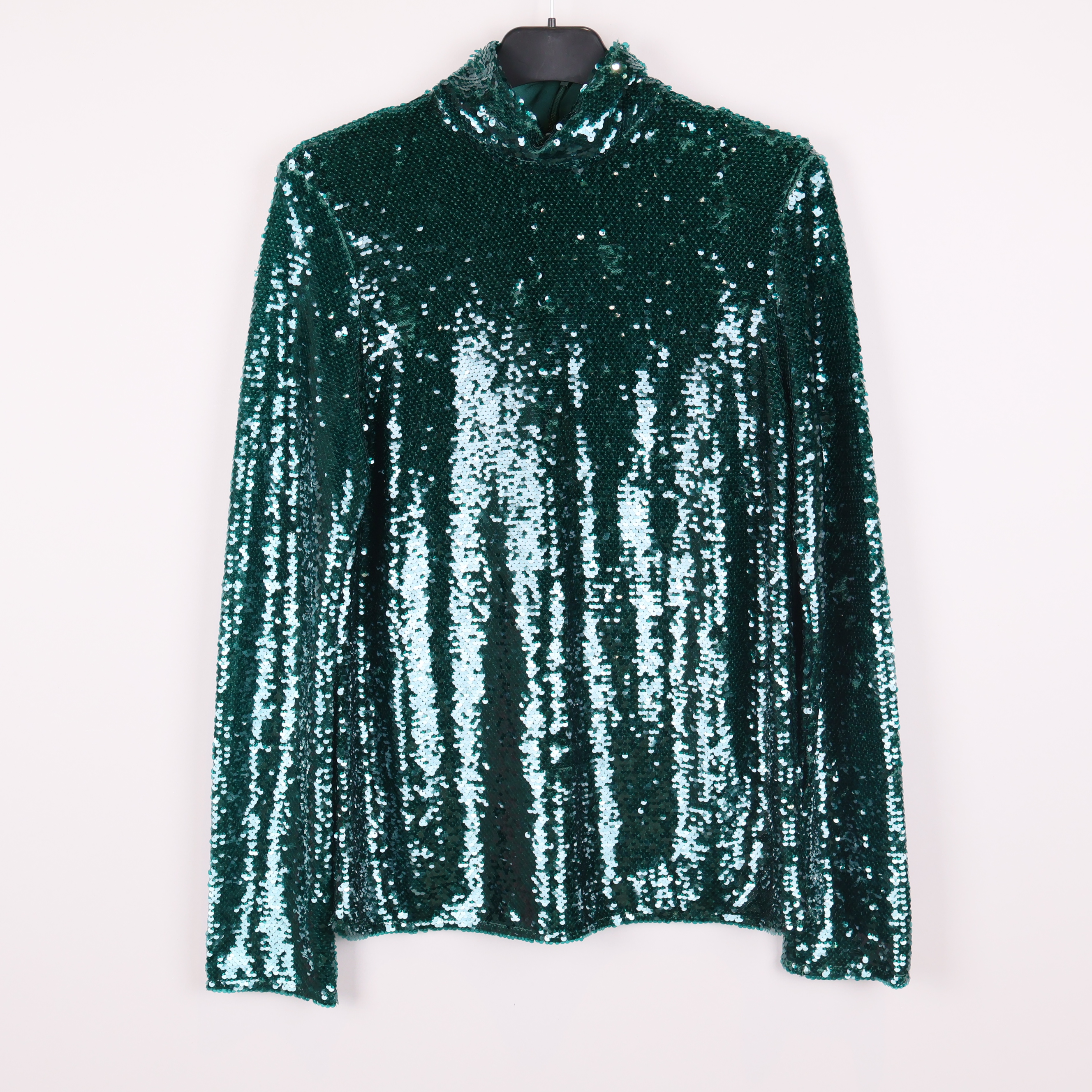 Festlig, glittrande topp med polokrage och långa ärmar, täckt av gröna paljetter för en riktigt party-vibe. Rak passform och diskret dragkedja bak för smidig av- och påtagning. Skön insida som känns bekväm mot huden och ger en trendig look till vilken outfit som helst.