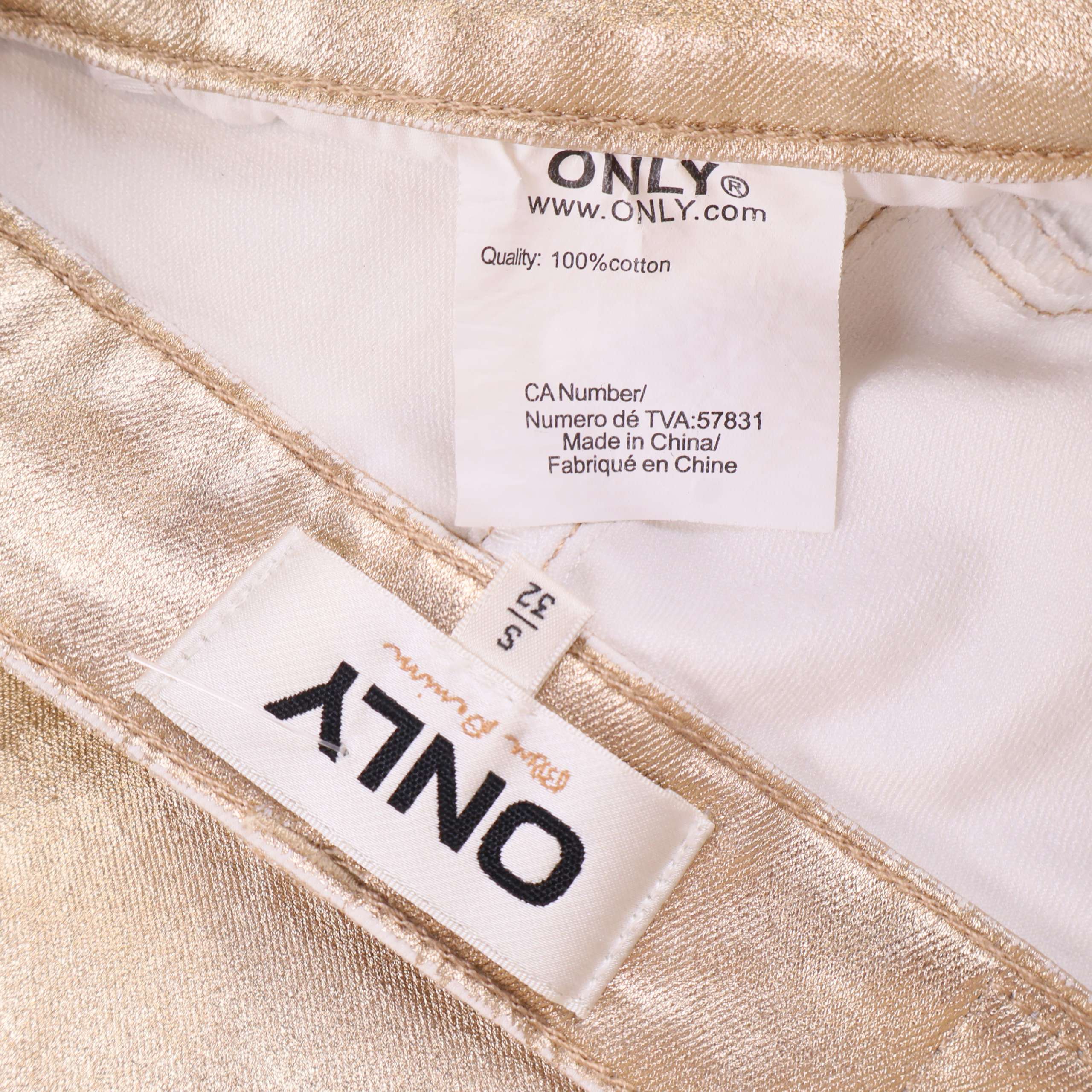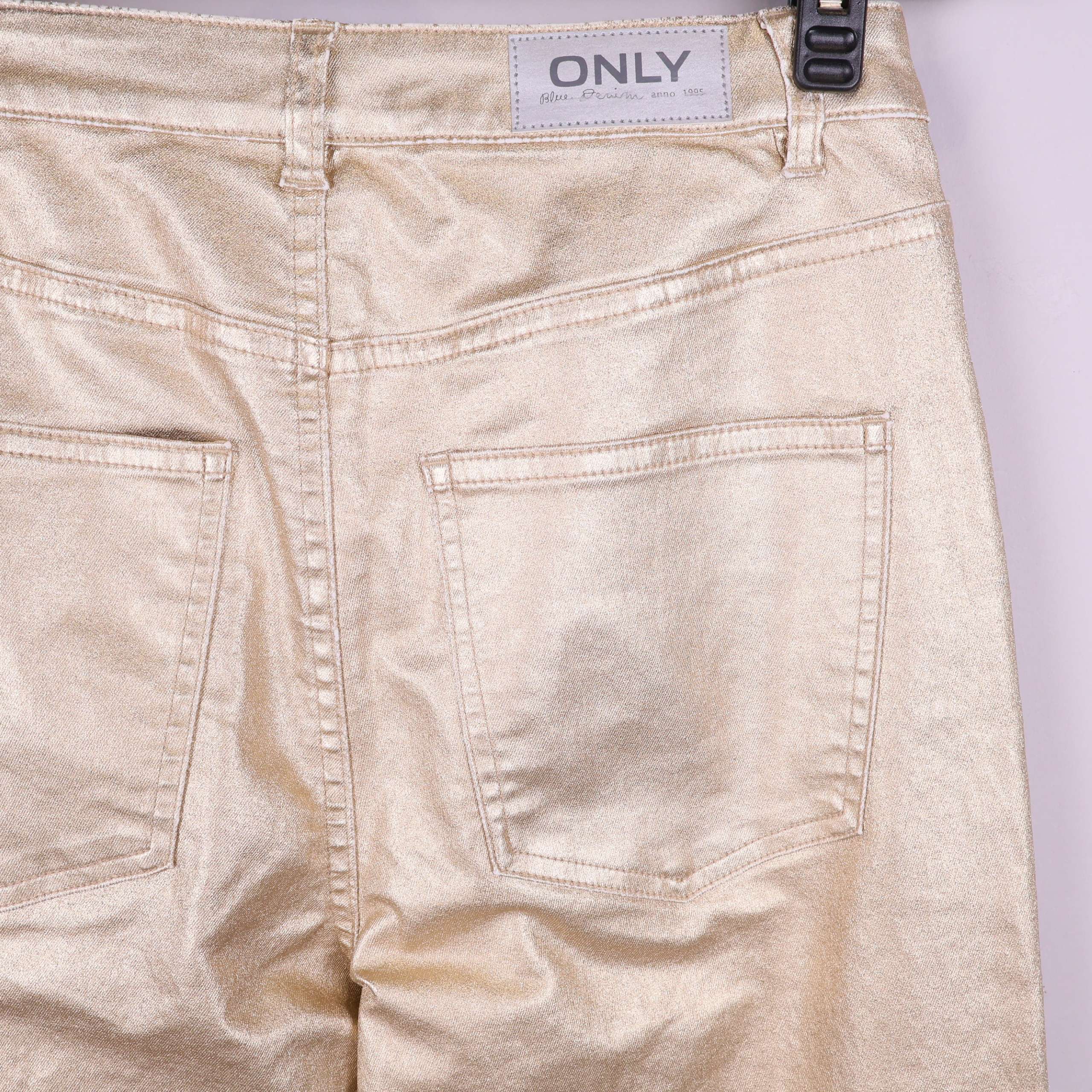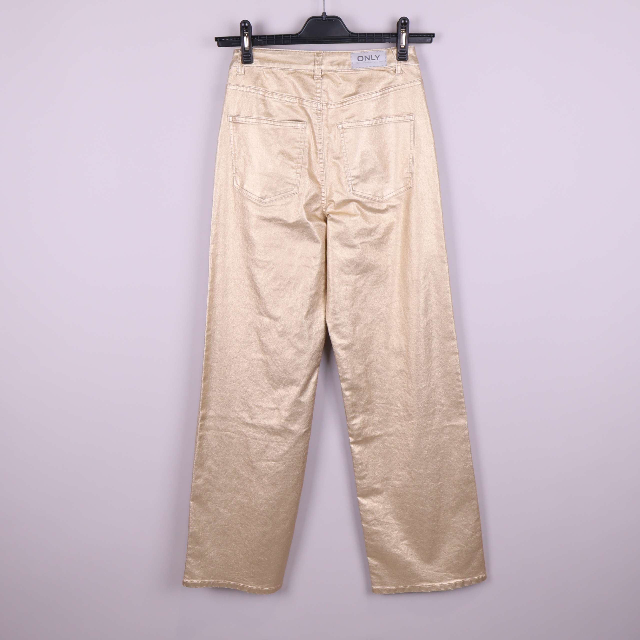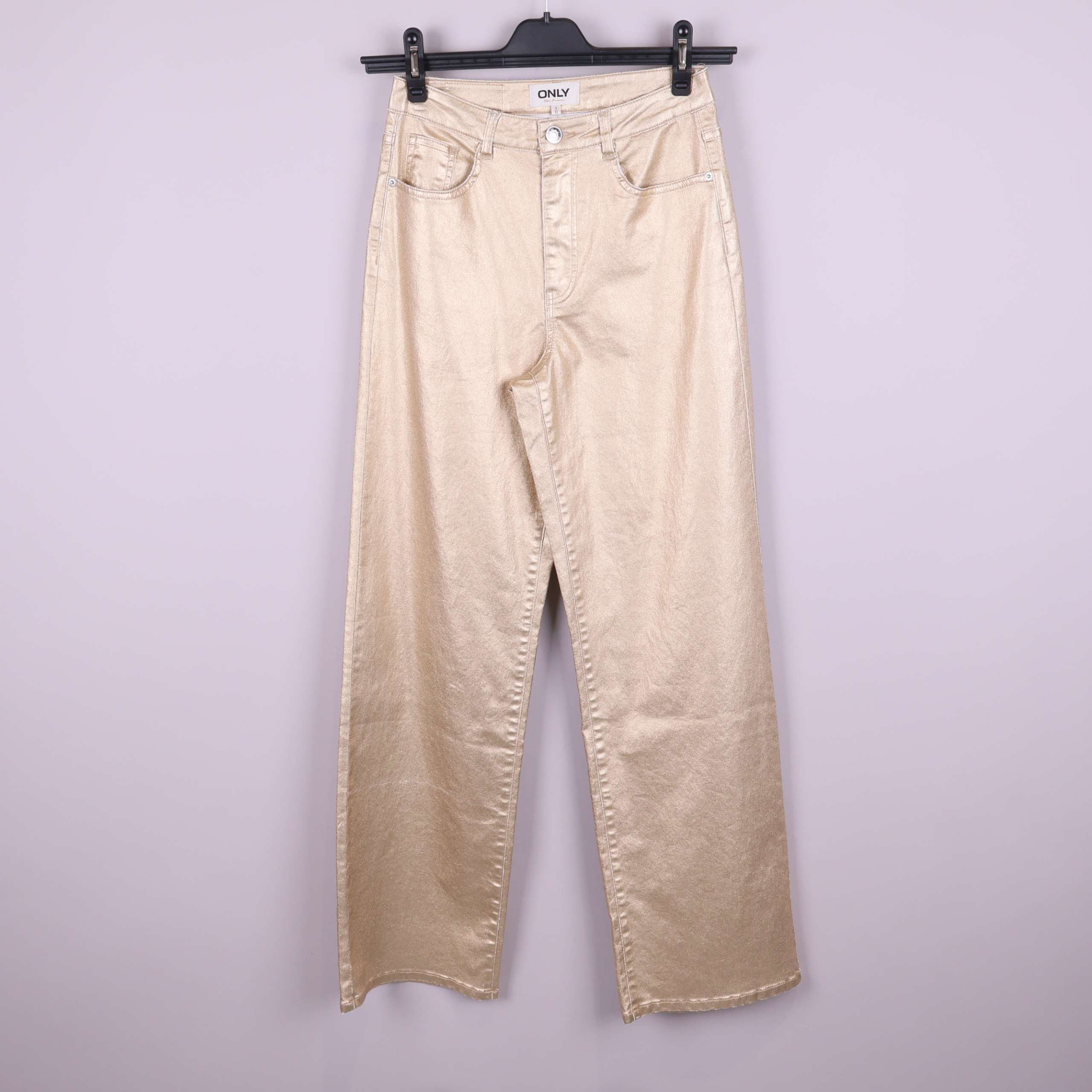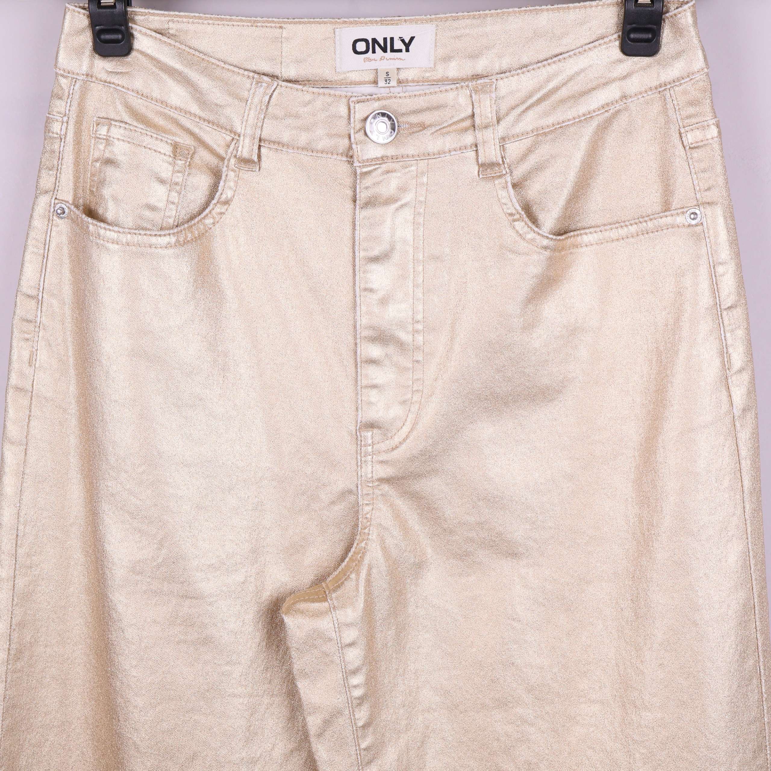 Trendiga byxor i rak modell från ONLY med en blank guldfärgad finish. Femficksdesign och hög midja ger en klassisk denim-look med modern twist. Snygg detalj och passar dig som uppskattar ett statement-plagg.