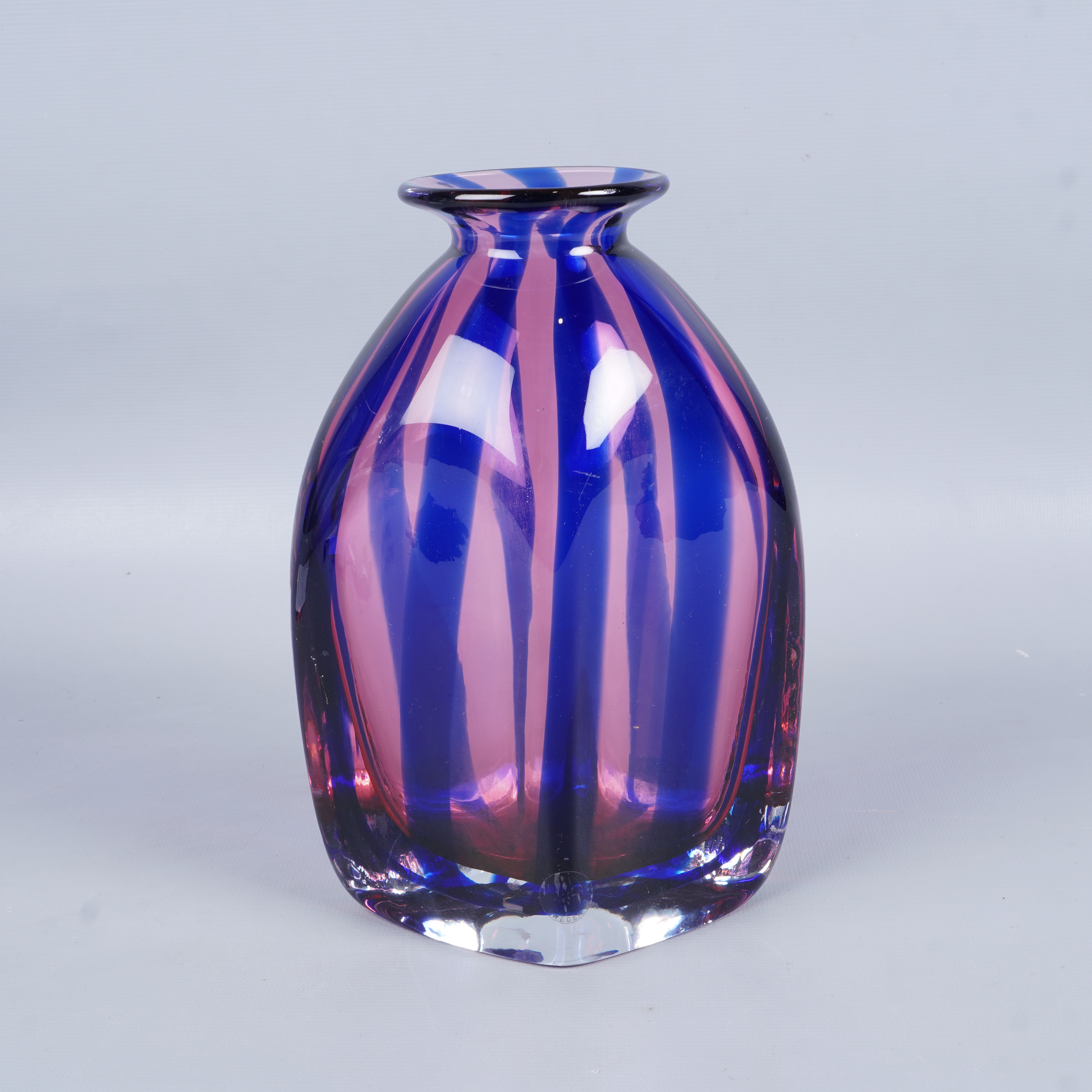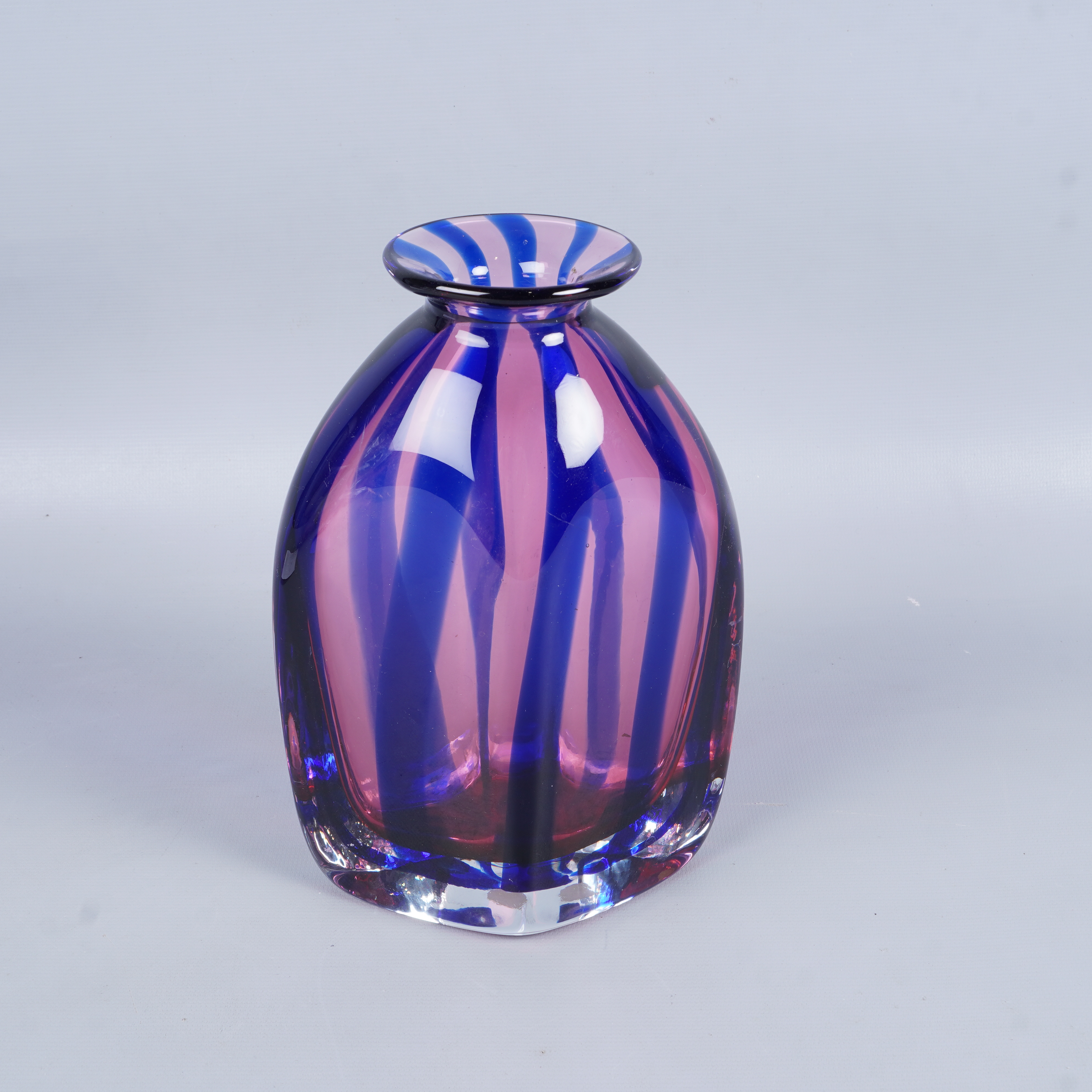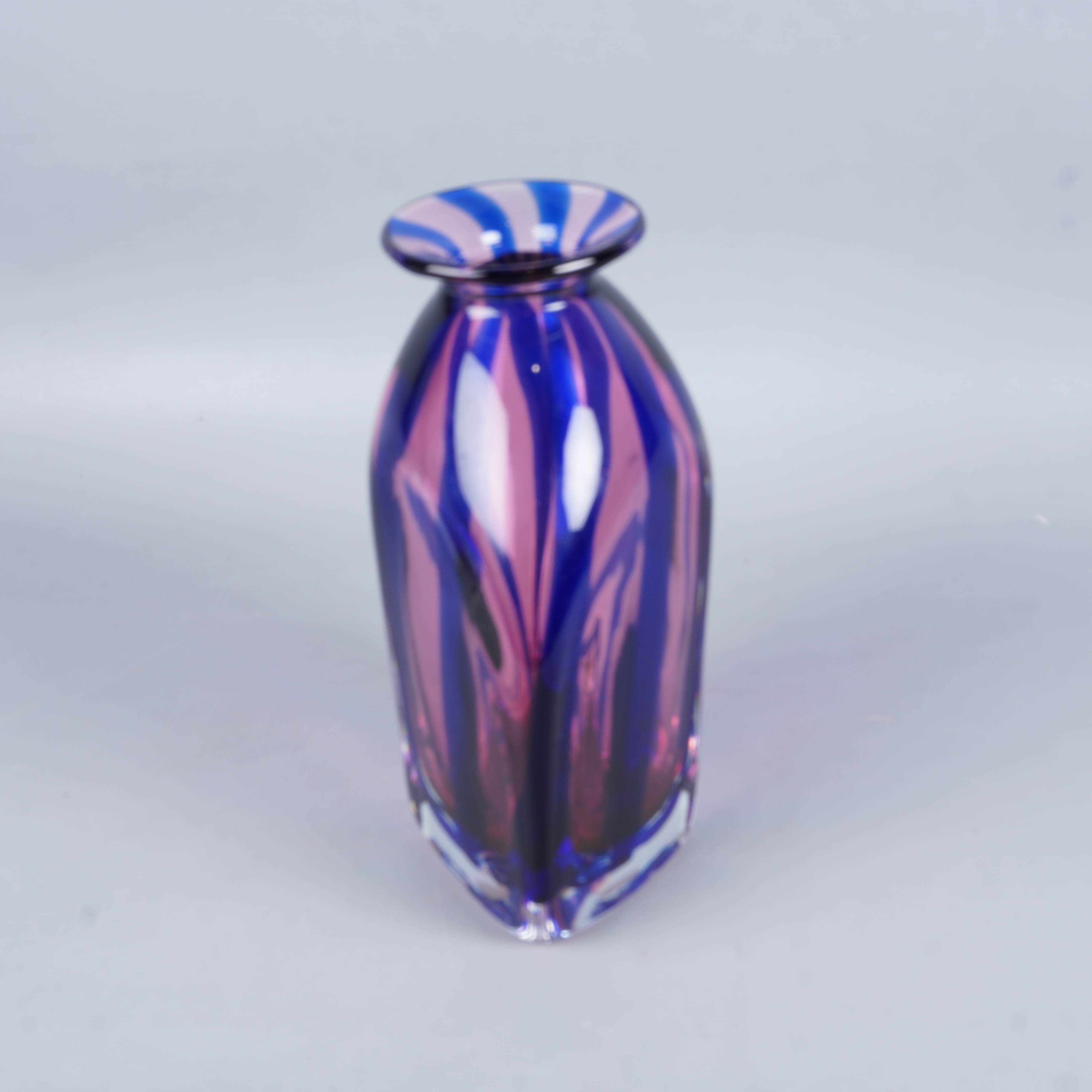 Gullaskruf färgglad glasvas 199 kr Product variation Antal st Beskrivning Unik vas i handblåst glas med böljande former och fantastiska lila och blå stripes. Ger ett levande och konstnärligt intryck, perfekt för att sticka ut som centerpiece eller dekorationsdetalj. Vasen har tydlig tyngd och en lekfull, samtida stil. Visa all beskrivning Detaljer Höjd: ca 20 cmBredd: ca 16cm Skick Gott skick Produkten har använts men är av fin kvalitet, det kan förekomma mindre förslitningar. Läs mer om hur vi bedömer Dimensions Höjd: ca 20 cm, Bredd: ca 16cm Färg Blå Material Glas Produkten är unik och finns enbart som 1 st i lager. Fri frakt på alla köp över 990 kr. 14 dagars ångerrät.