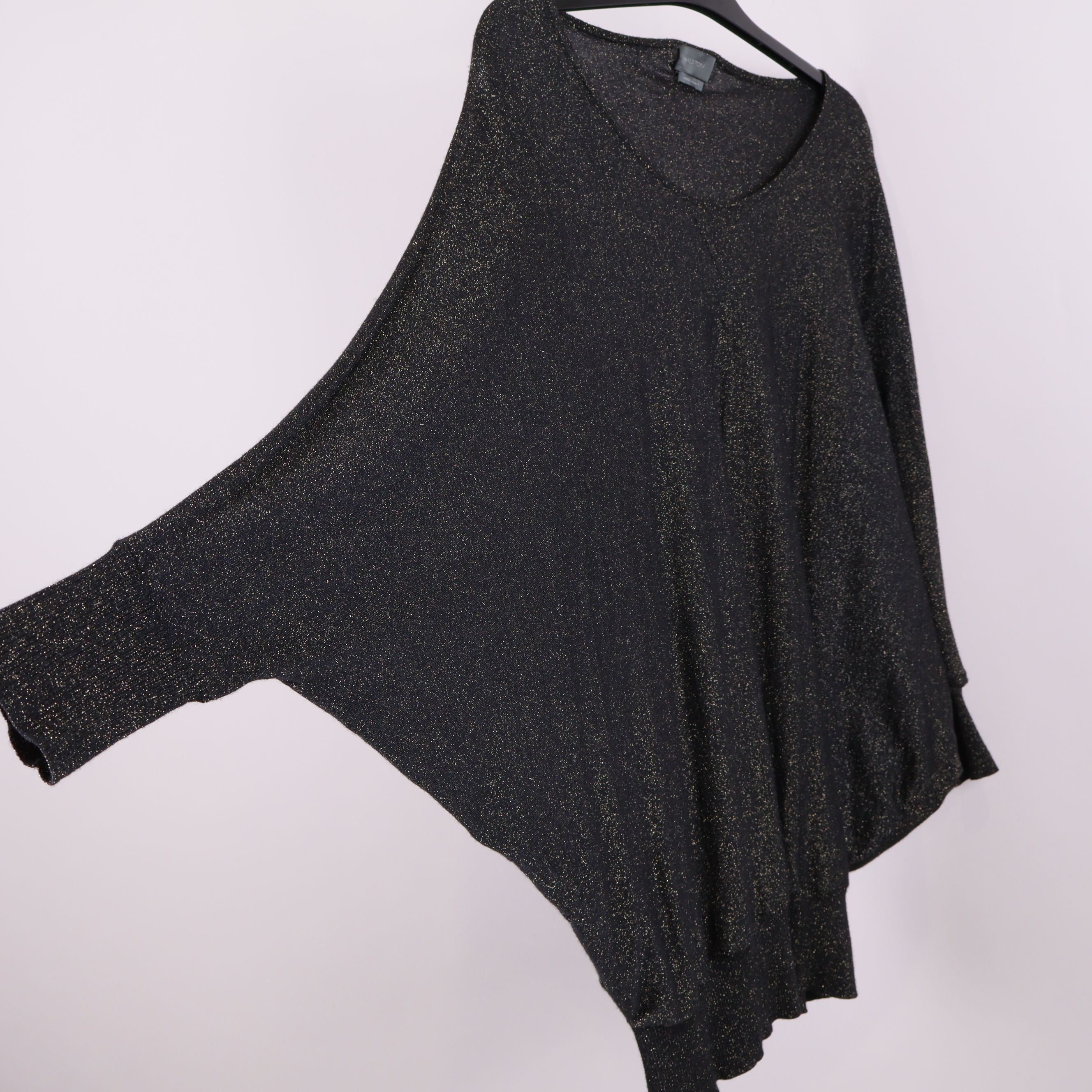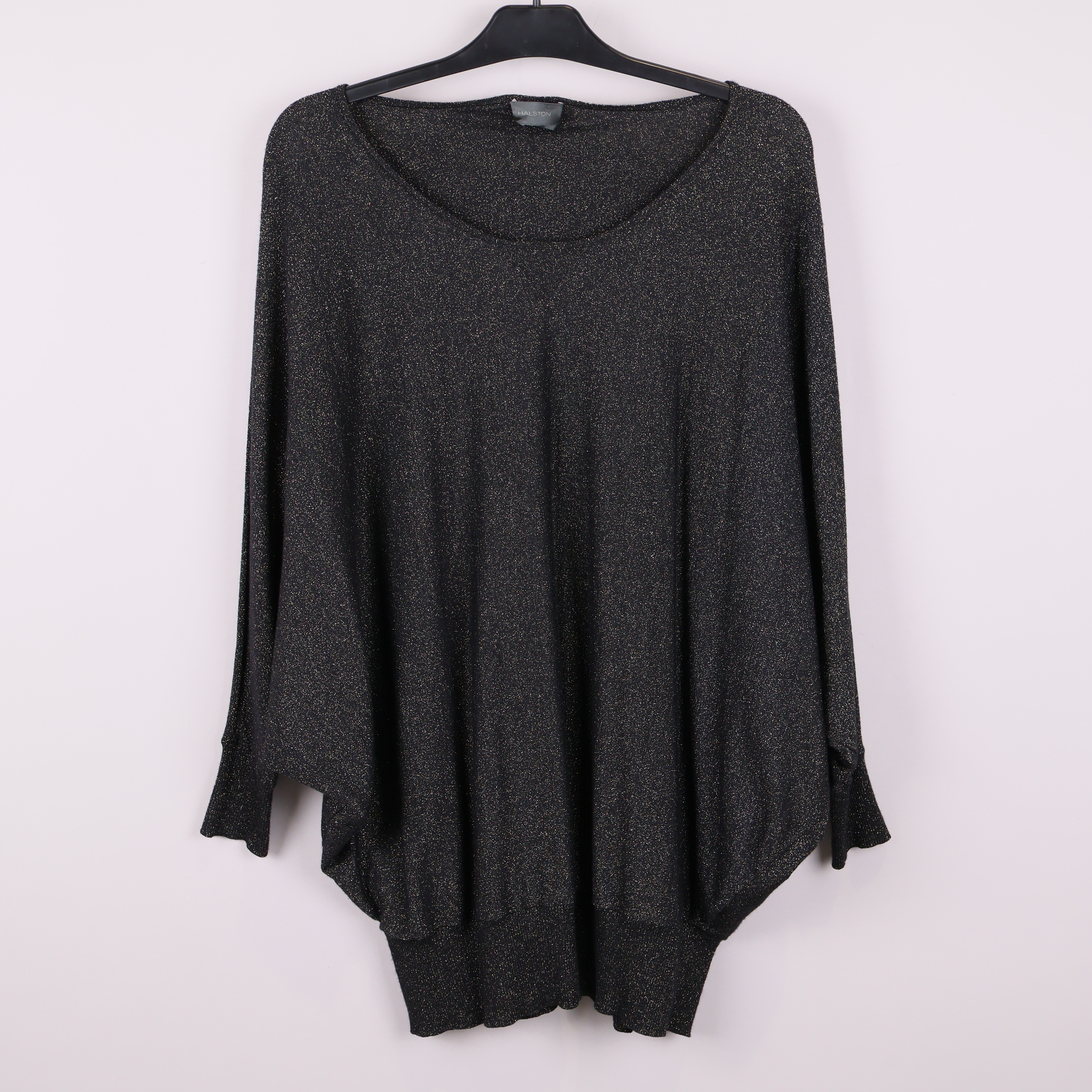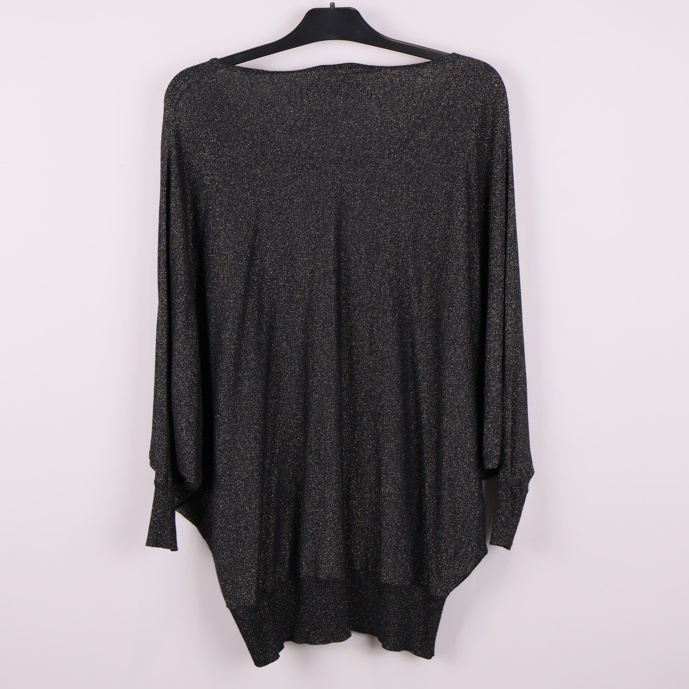 Tröja med fladdermusärmar och glittrig finish som ger en lyxig, festlig känsla. Den har vid passform med bred mudd i nederkanten, rund halsringning och diskret struktur i tyget.