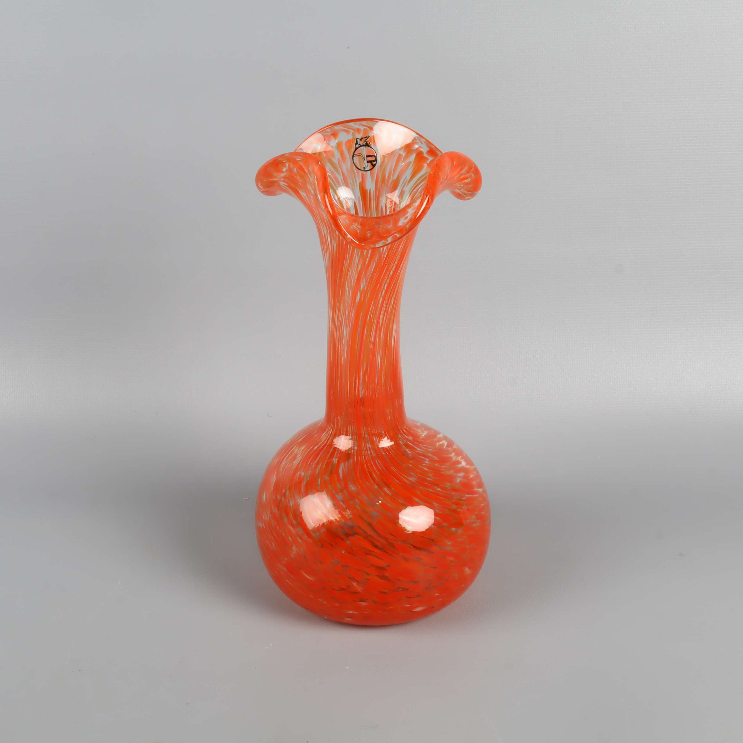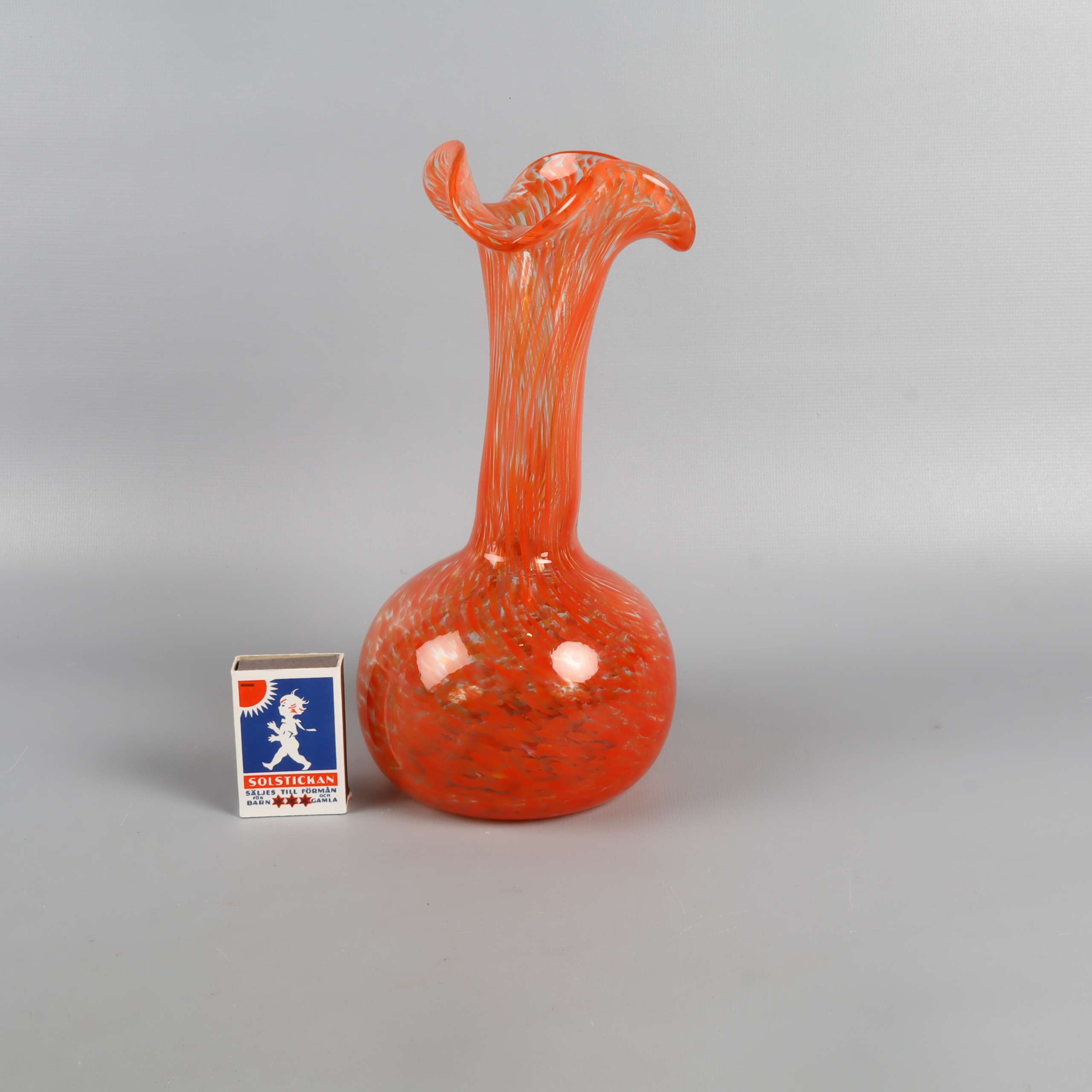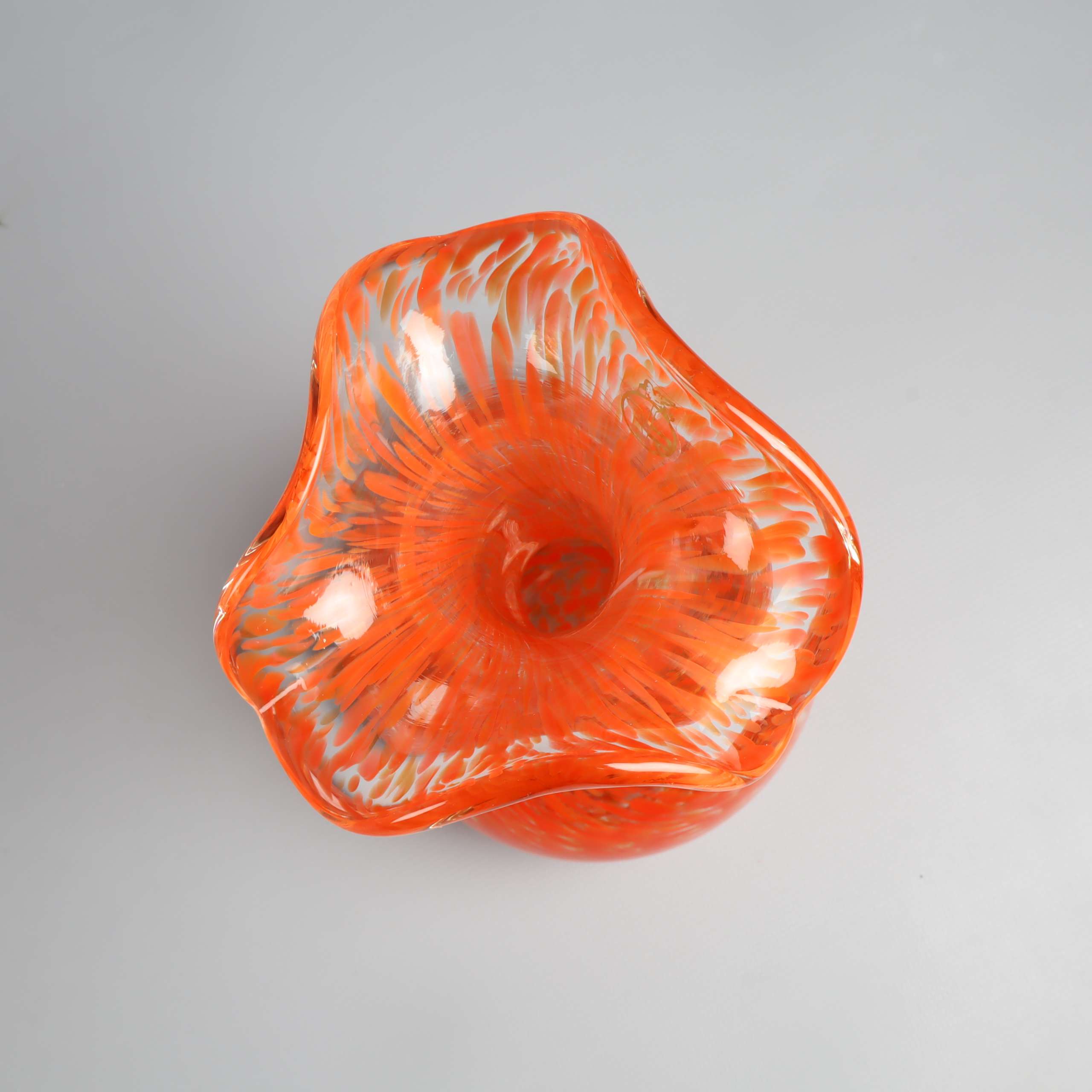 Okänt märke Handblåst glasvas med vågig kant 199 kr Product variation Antal st Beskrivning En unik handblåst vas i starkt orange glas med virvlande mönster och mjukt vågig öppning. Den rundade botten och de levande färgskiftningarna skapar en konstnärlig och modern känsla, perfekt som färgklick i rummet. Visa all beskrivning Skick Mycket gott skick Produkten är sparsamt använd, är av fin kvalitet och ska inte ha några skador eller förslitningar. Läs mer om hur vi bedömer Dimensions Höjd: ca 22cm, Bredd: ca 14cm, Öppning: ca 4cm Färg Orange Material Glas Varumärke Okänt märke Produkten är unik och finns enbart som 1 st i lager. Fri frakt på alla köp över 990 kr. 14 dagars ångerrät.