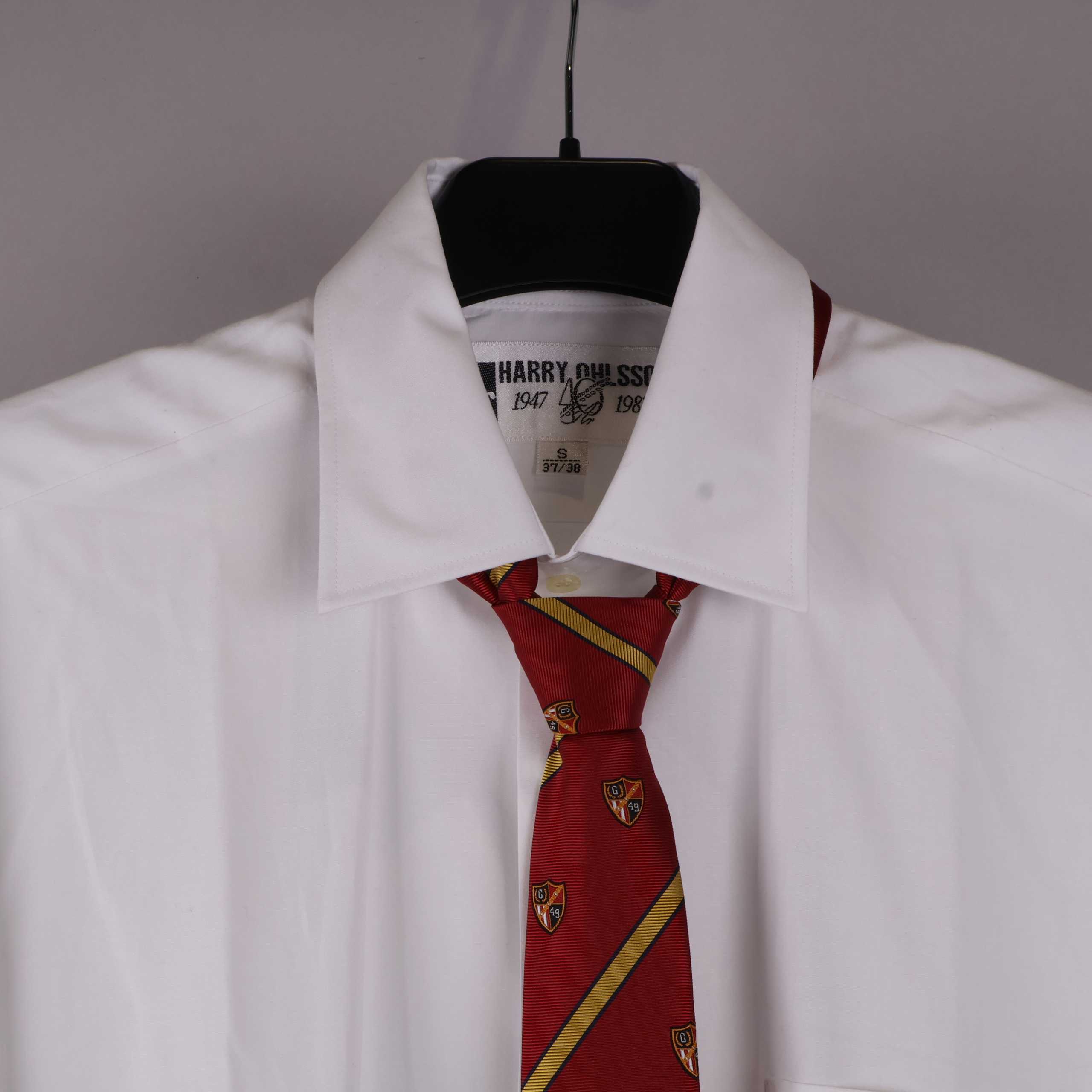Vit klassisk skjorta med en stilren design. Matchas perfekt med den medföljande röda slipsen som har ett elegant mönster. Tillverkad av 100% bomull för en bekväm passform. Slipsen är 100% silk, vilket ger en lyxig touch.