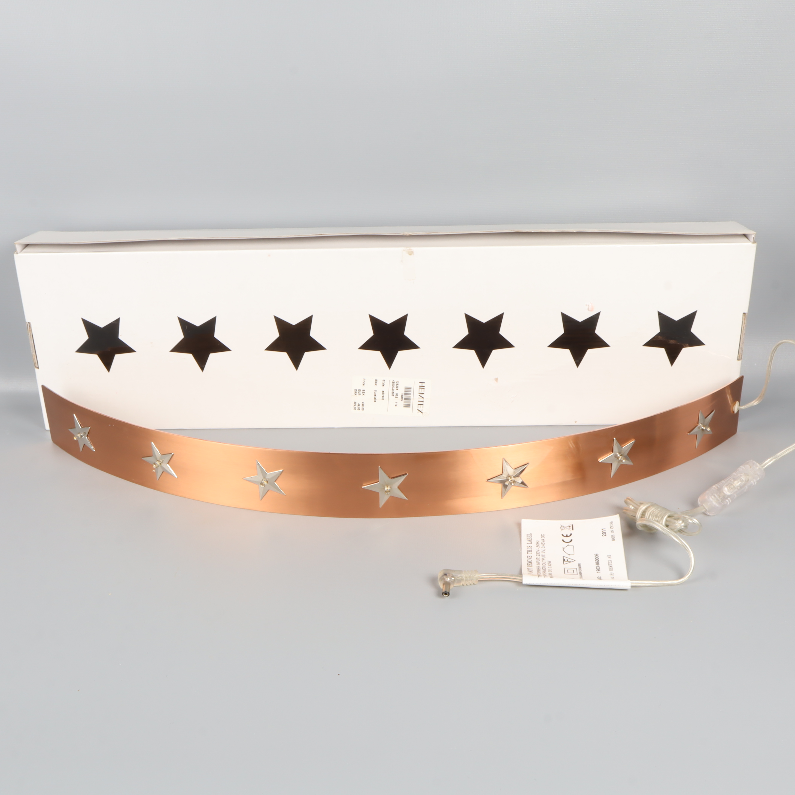 Hemtex Hemtex jul adventsljusstake med stjärnor 249 kr Product variation Antal st Beskrivning Elektrisk adventsljusstake i böjd design med mattskimrande yta och stjärnutskärningar. Kommer med tillhörande sladd, transformator och originalförpackning. Visa all beskrivning Skick Nytt skick Produkten är som ny. Kan till och med ha orginalprislapp kvar eller ligga i originalförpackning. Läs mer om hur vi bedömer Dimensions Höjd: ca 16 cm Längd: ca 64 cm Bredd: ca 6cm Färg Brons Material Metall Varumärke Hemtex Produkten är unik och finns enbart som 1 st i lager. Fri frakt på alla köp över 990 kr. 14 dagars ångerrät.
