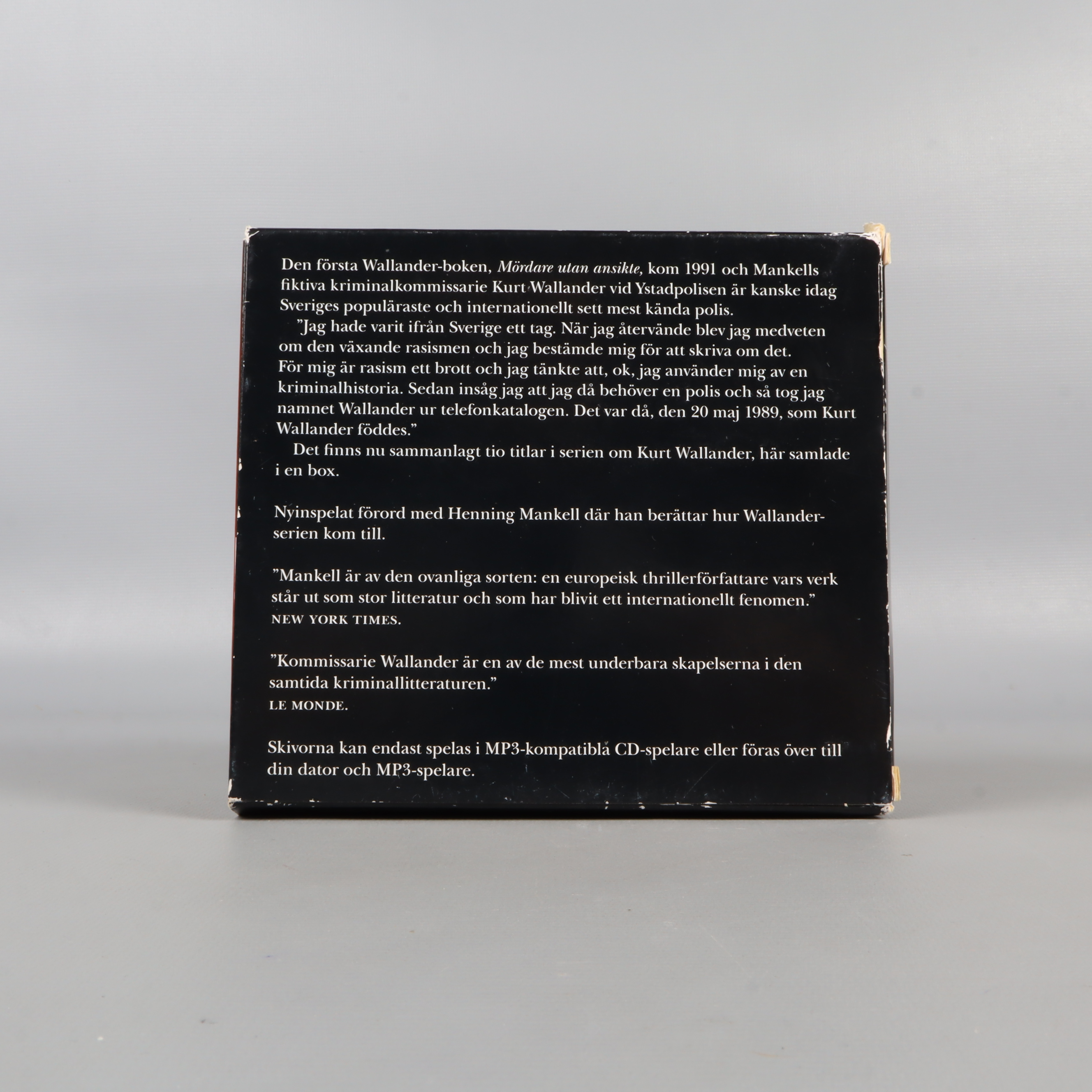 Upptäck Henning Mankells populära Wallander-serie i denna kompletta samlingsbox fylld med klassiska deckarhistorier. Boxen innehåller flera av Mankells mest älskade böcker om polisen Kurt Wallander och tar dig med på spännande utredningar i Sveriges södra delar. Formatet är MP3-CD, perfekt för långa bilresor, avkoppling i soffan eller som gåva till deckarfantaster.