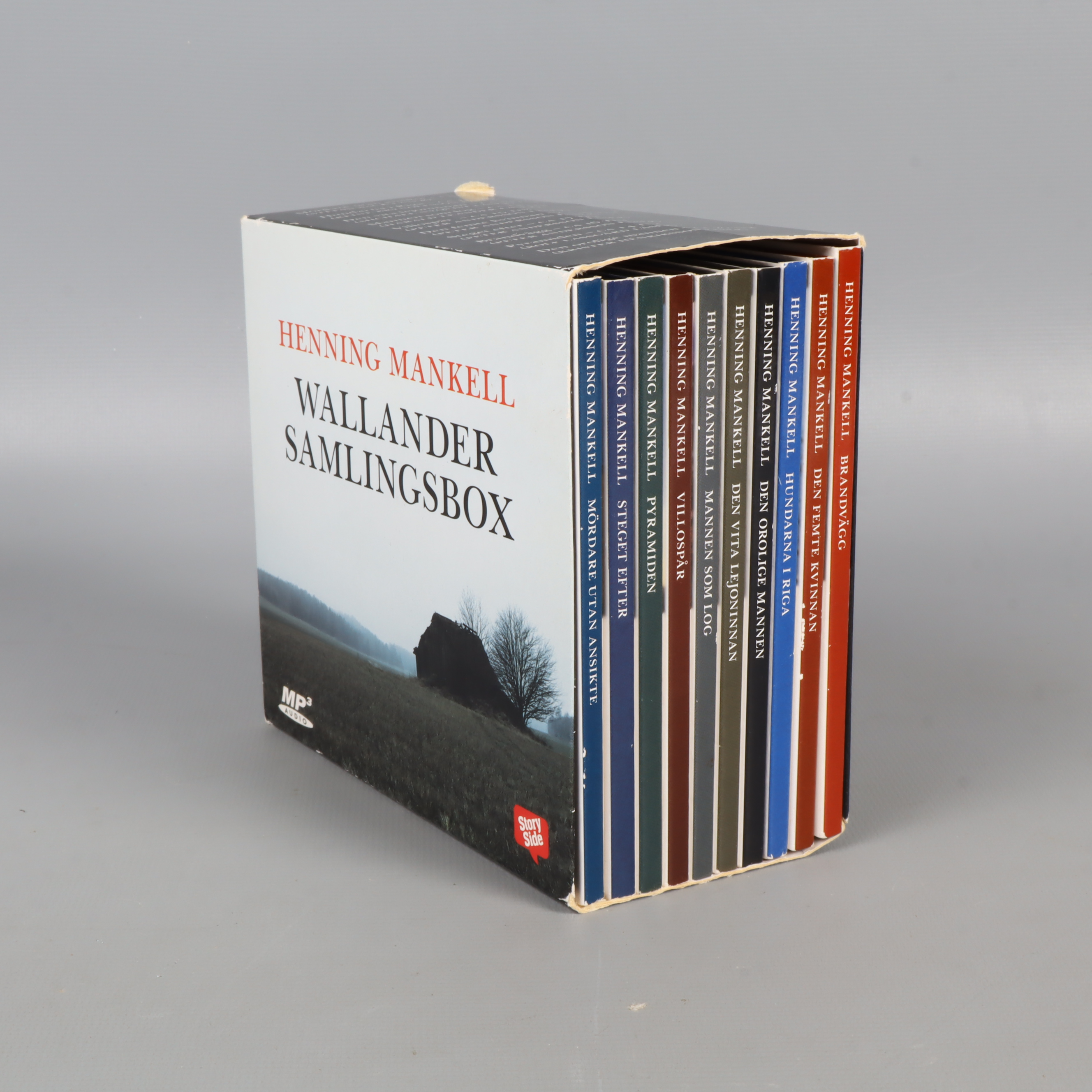 Upptäck Kurt Wallanders värld med denna samlingsbox som innehåller tio av Henning Mankells populära ljudböcker. Boxen har ett stilrent omslag med landskapsmotiv och varje volym har sitt unika färgtema. Boken spelas upp som mp3 ljudbok, perfekt för dig som gillar spännande deckare med svensk atmosfär. En stark samlarbox för dig som vill ha hela Wallander-serien till hands.