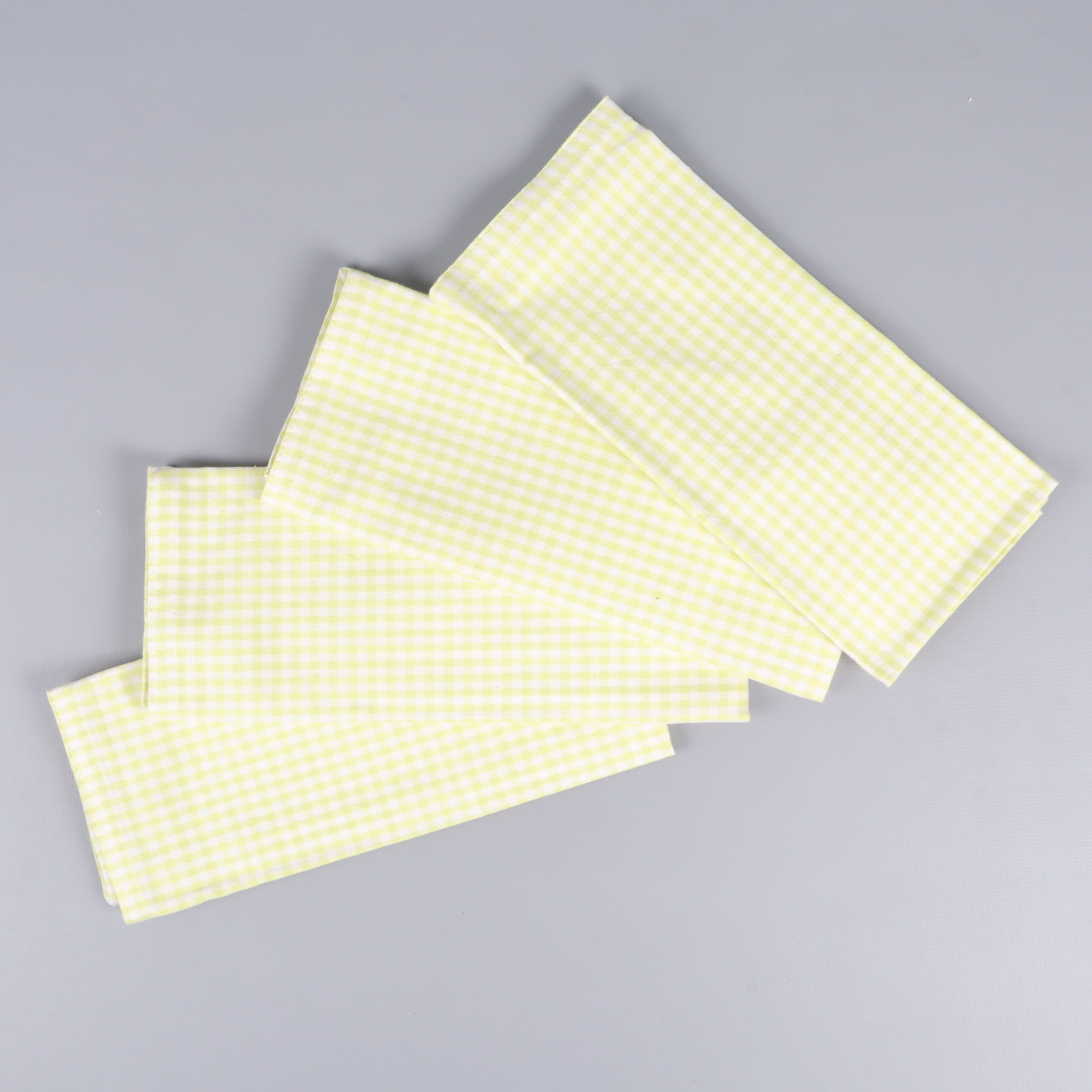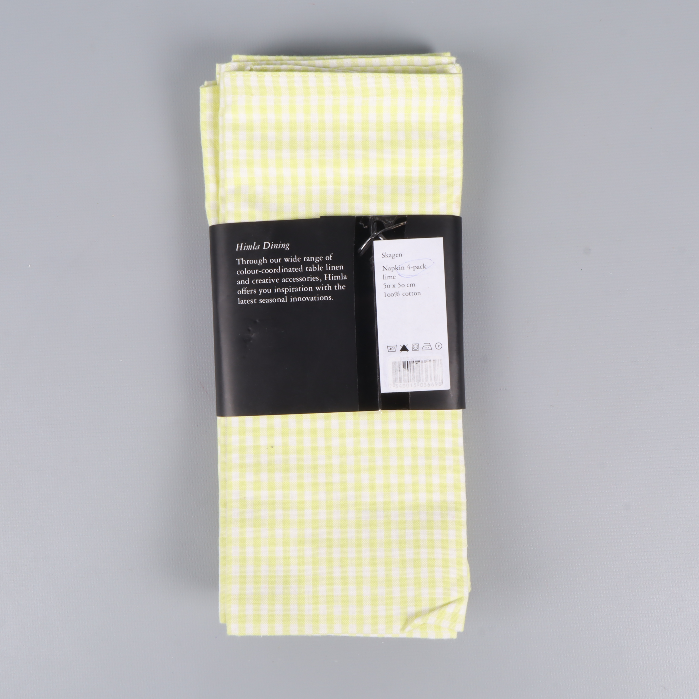 Fyrpack rutiga servetter i mjuk bomull med ljusgrön och vit färg, ger en härligt fräsch känsla till dukningen.