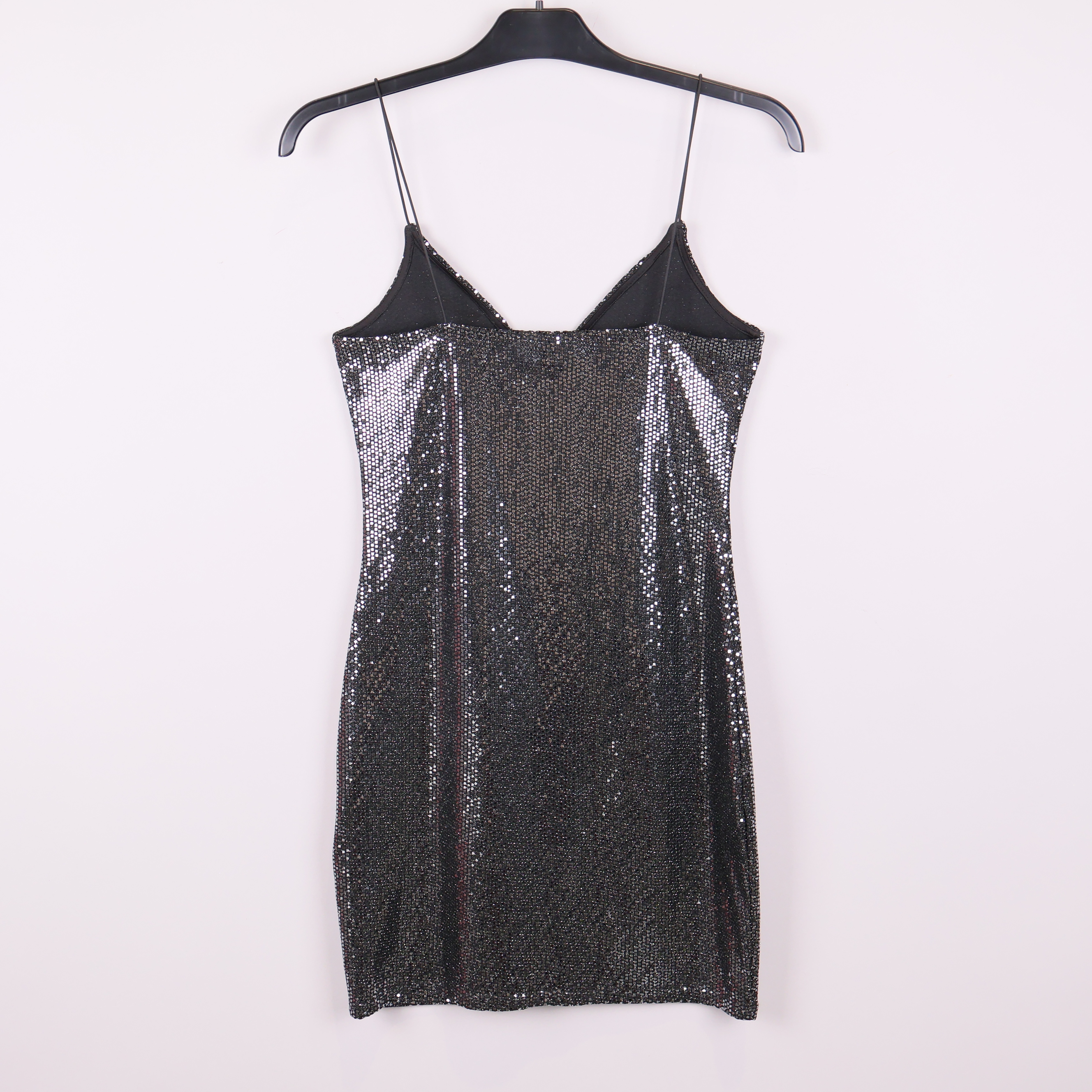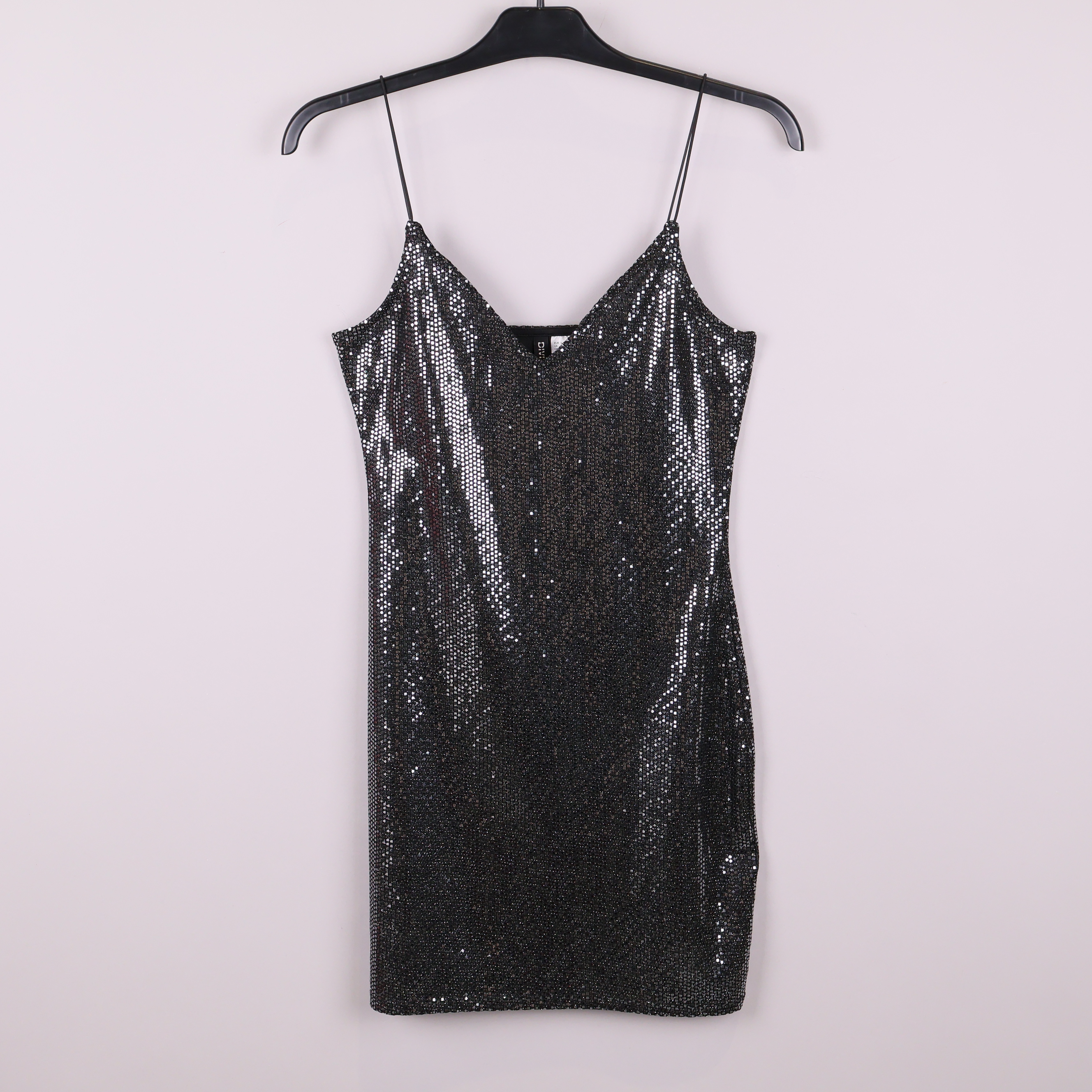 Glimrande paljettklänning med smala axelband och figurnära siluett. Den svarta klänningen är helt täckt av paljetter som ger ett festligt och trendigt uttryck.