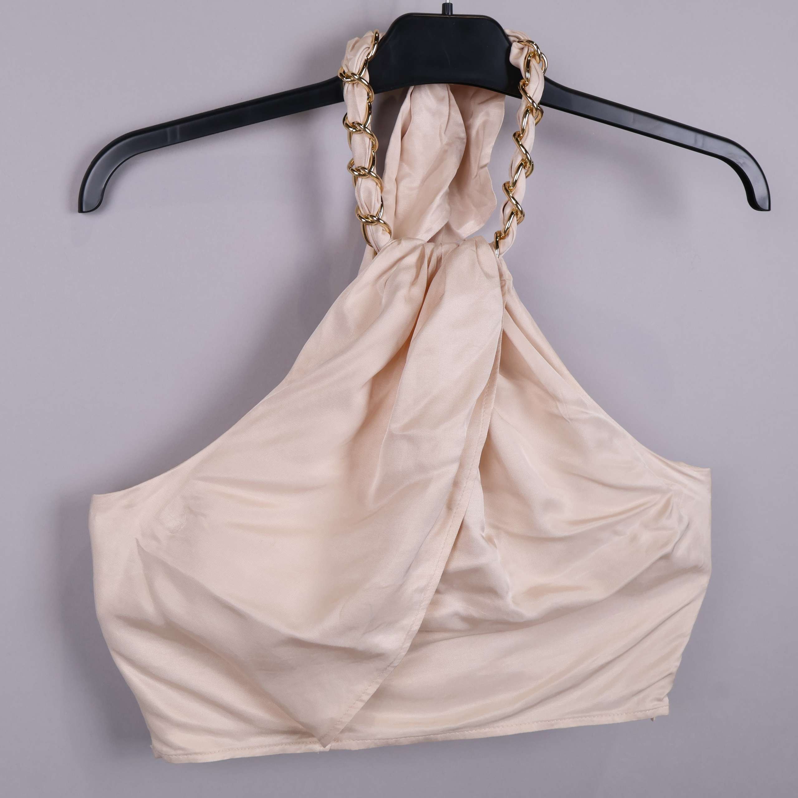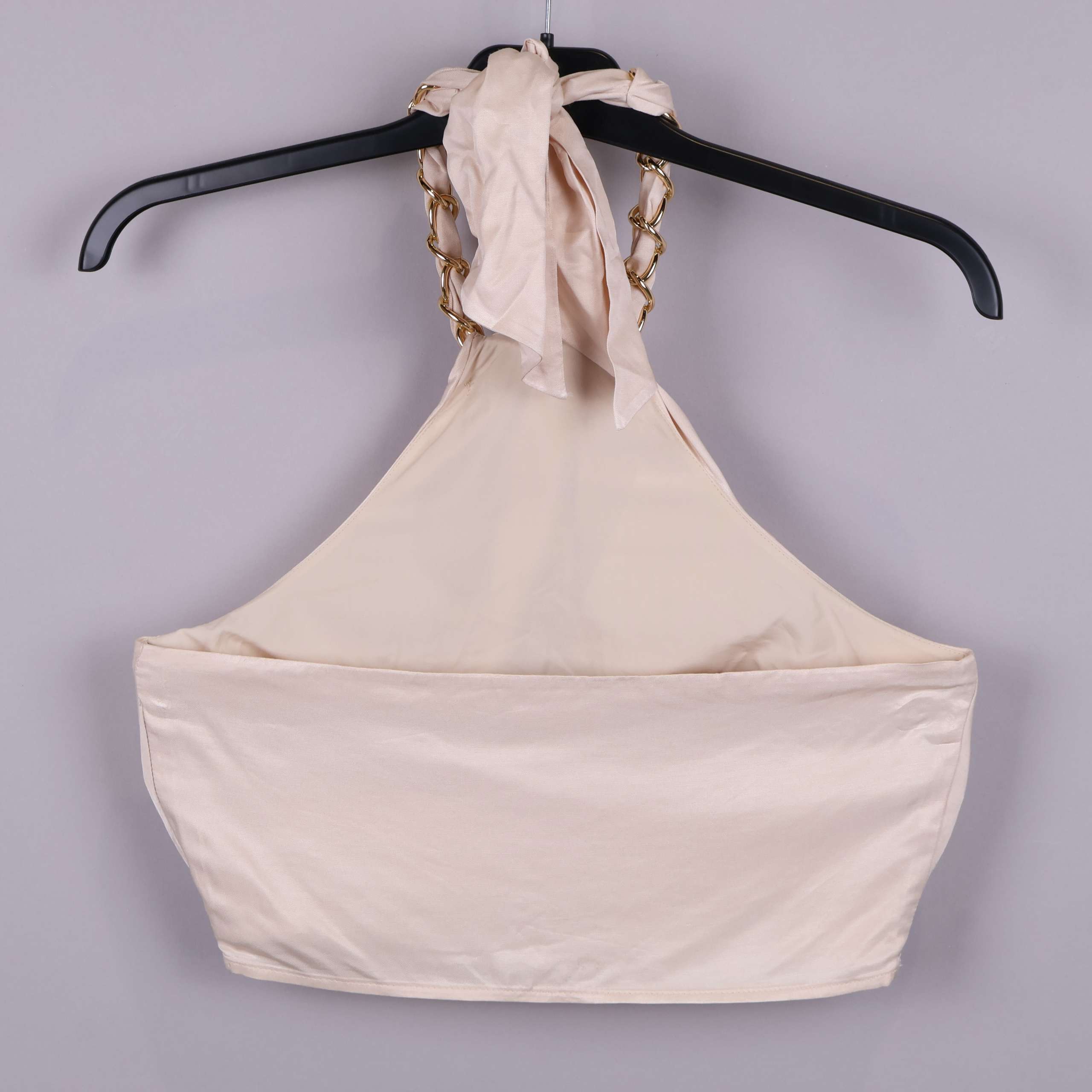 Halterneck topp med vackra kedjedetaljer som ger en chic stil. Den mjuka tyget framhäver en lyxig känsla.