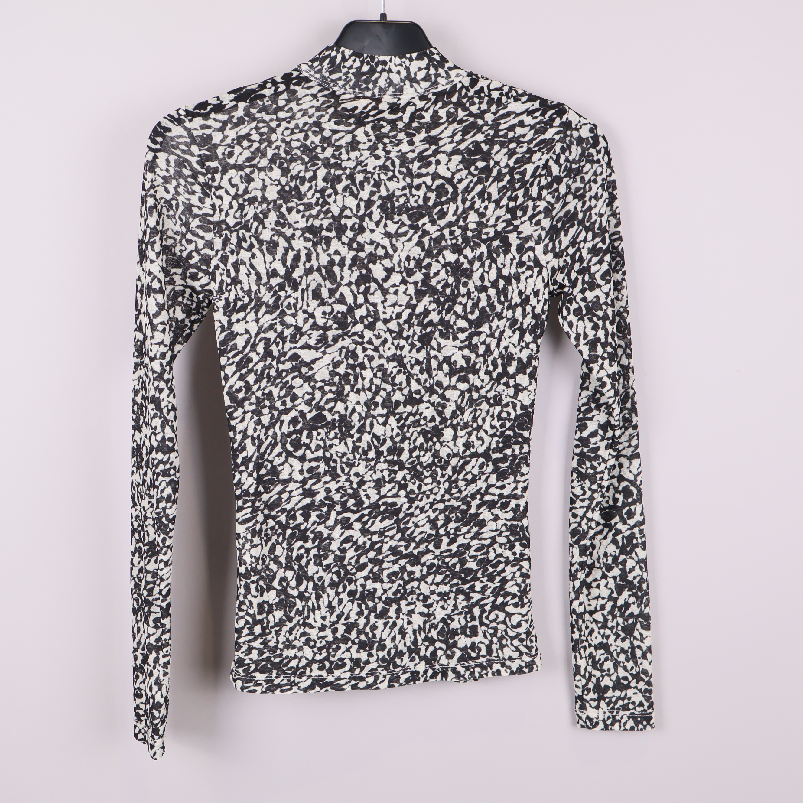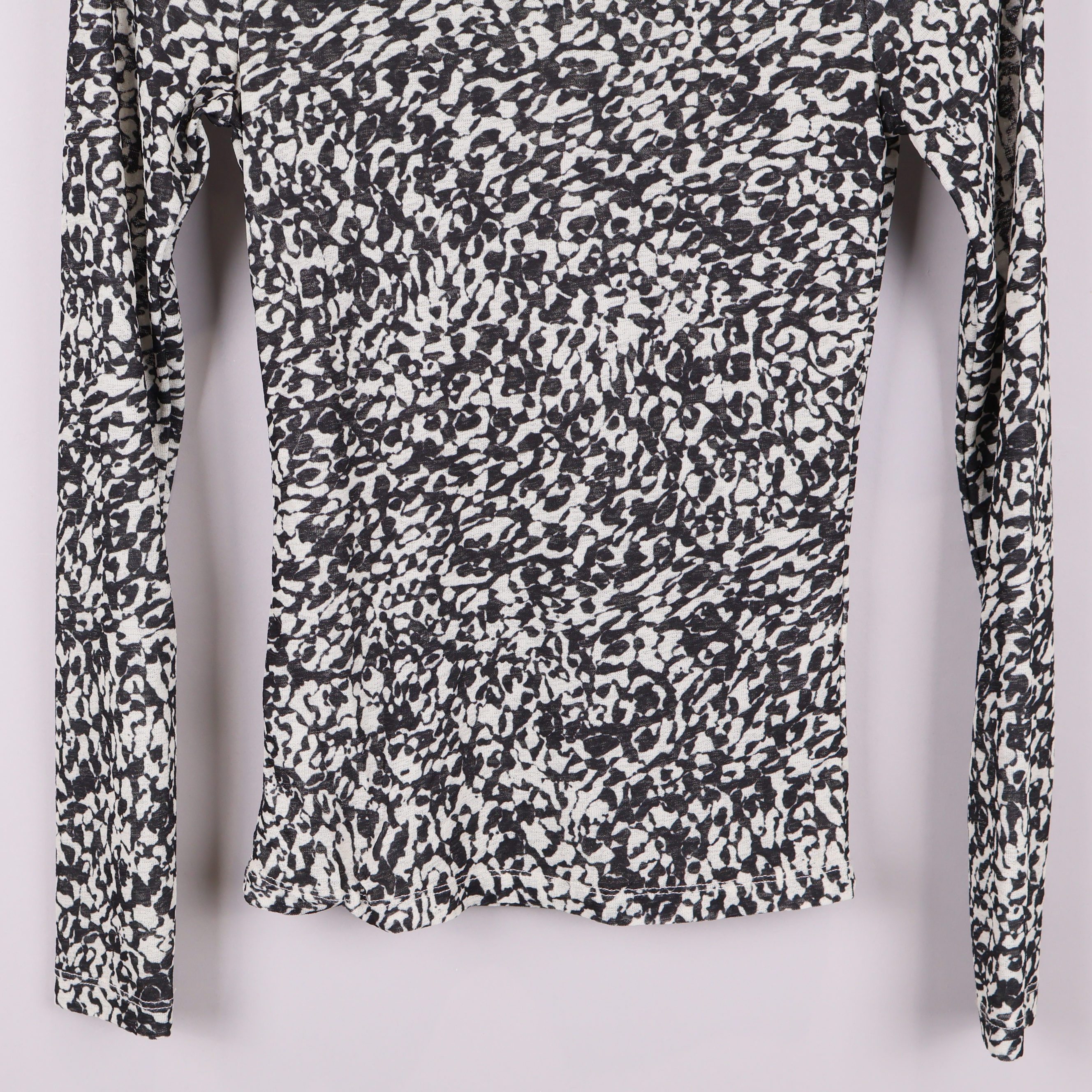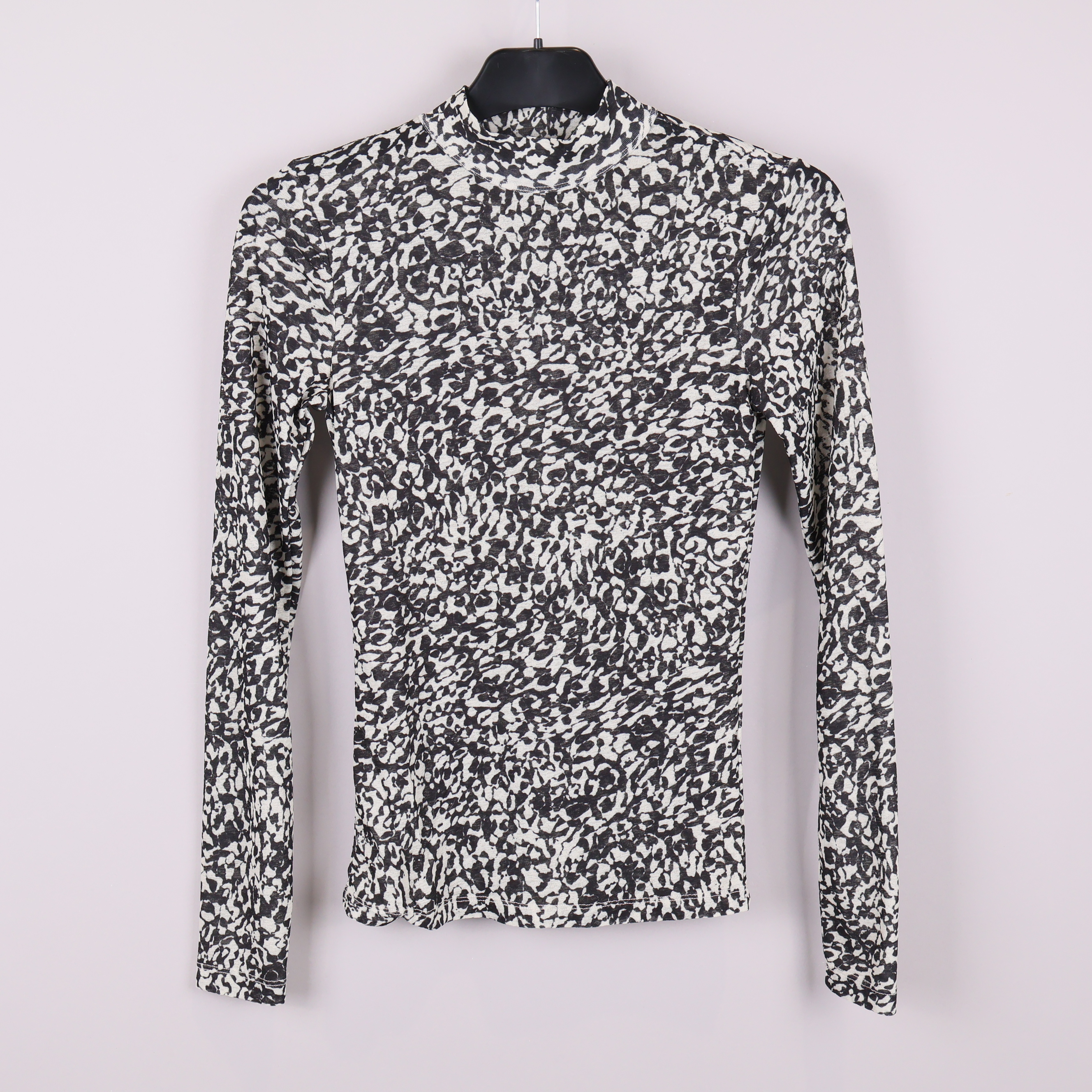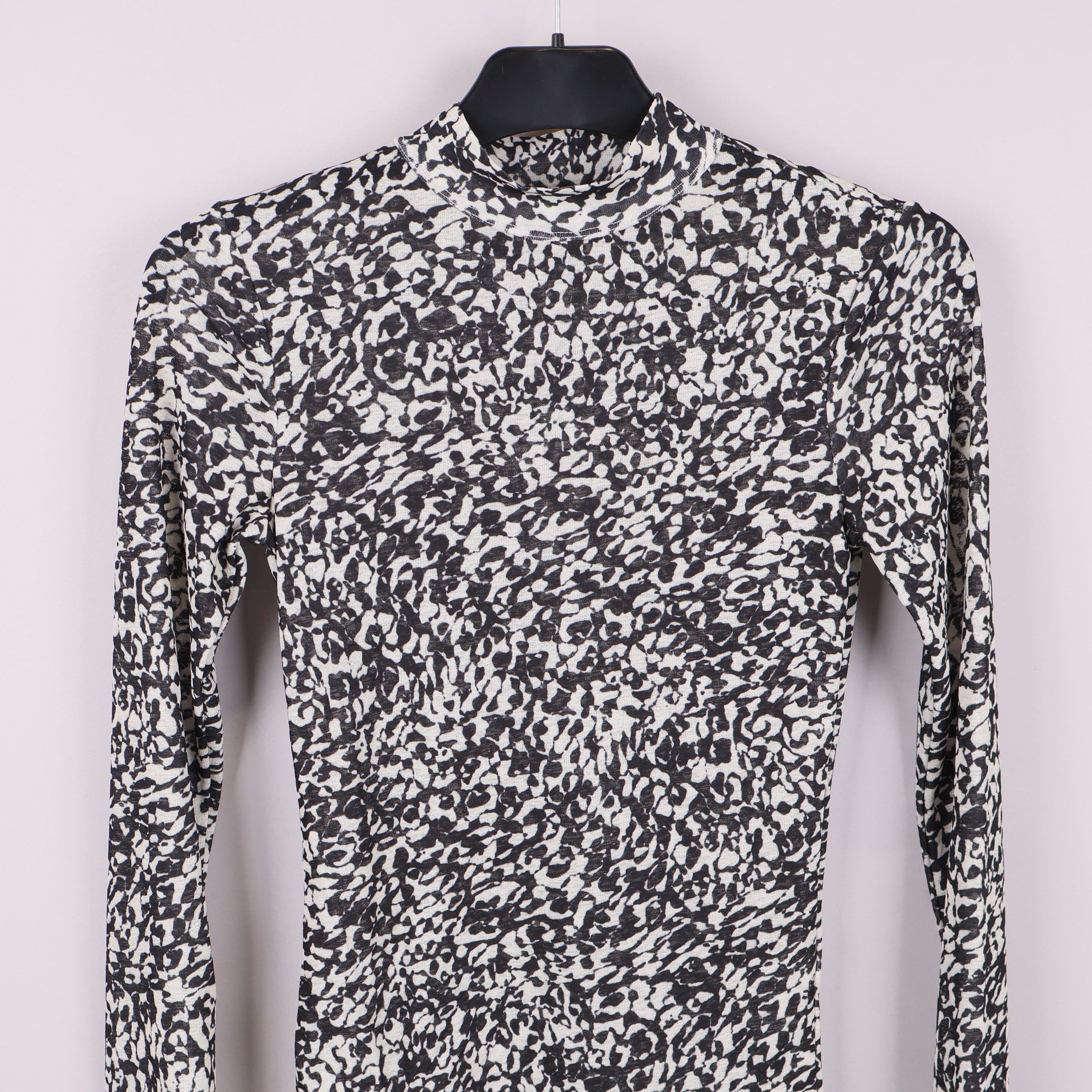 Smidig tunn topp i stretchig kvalitet med abstrakt svartvitt mönster. Figurnära passform och klassisk rund halsringning ger en modern känsla. Långa ärmar och lätt struktur i materialet gör den både skön och snygg för många tillfällen.