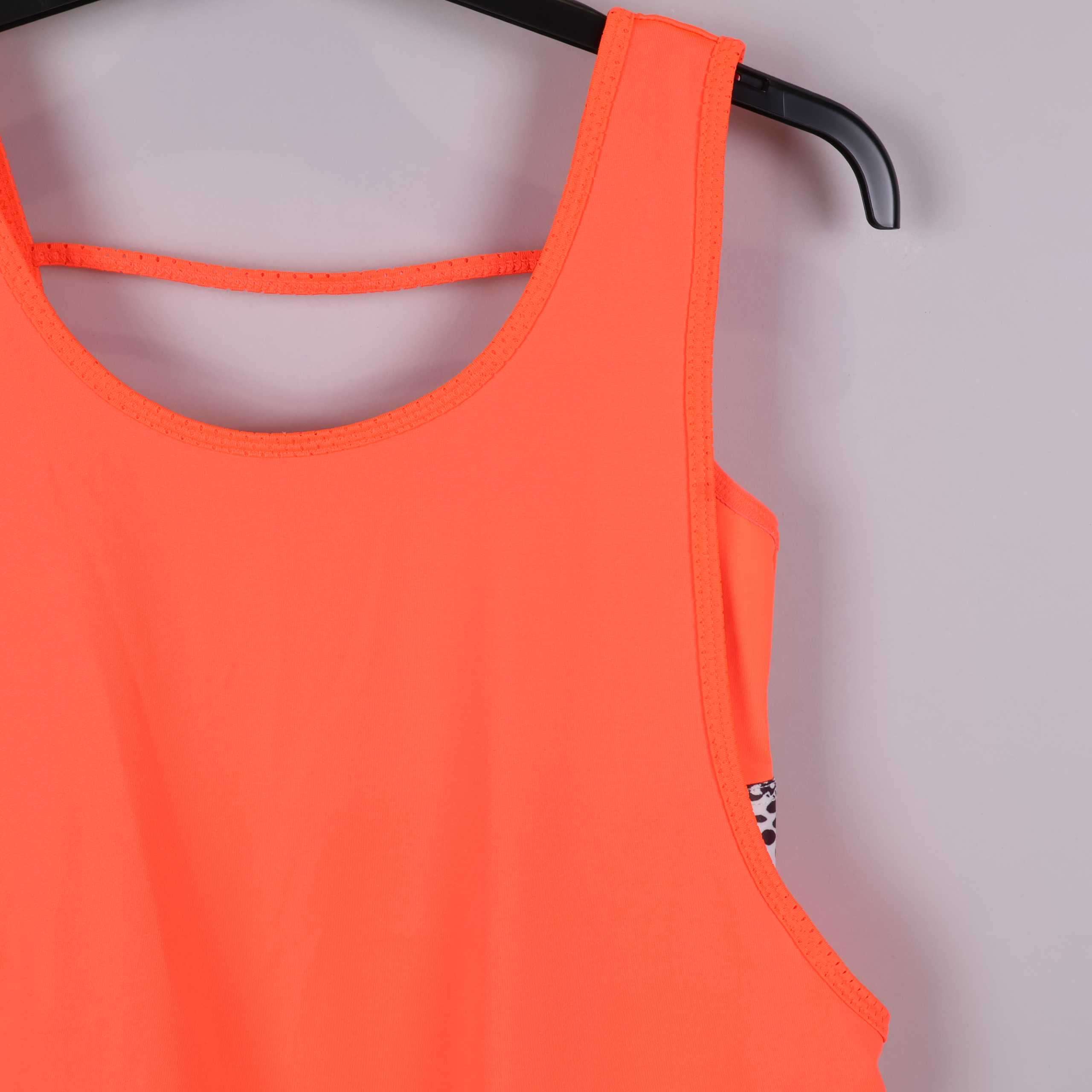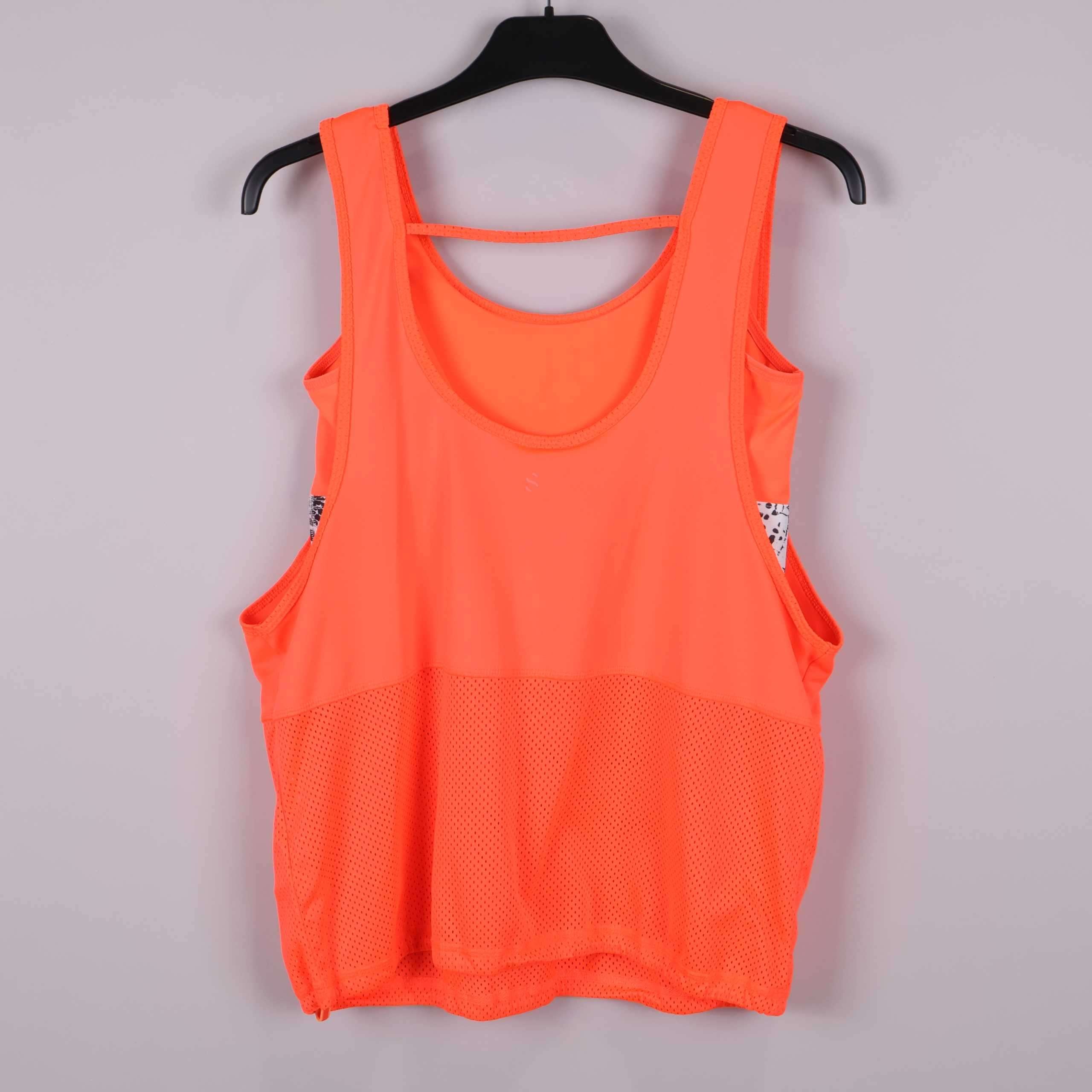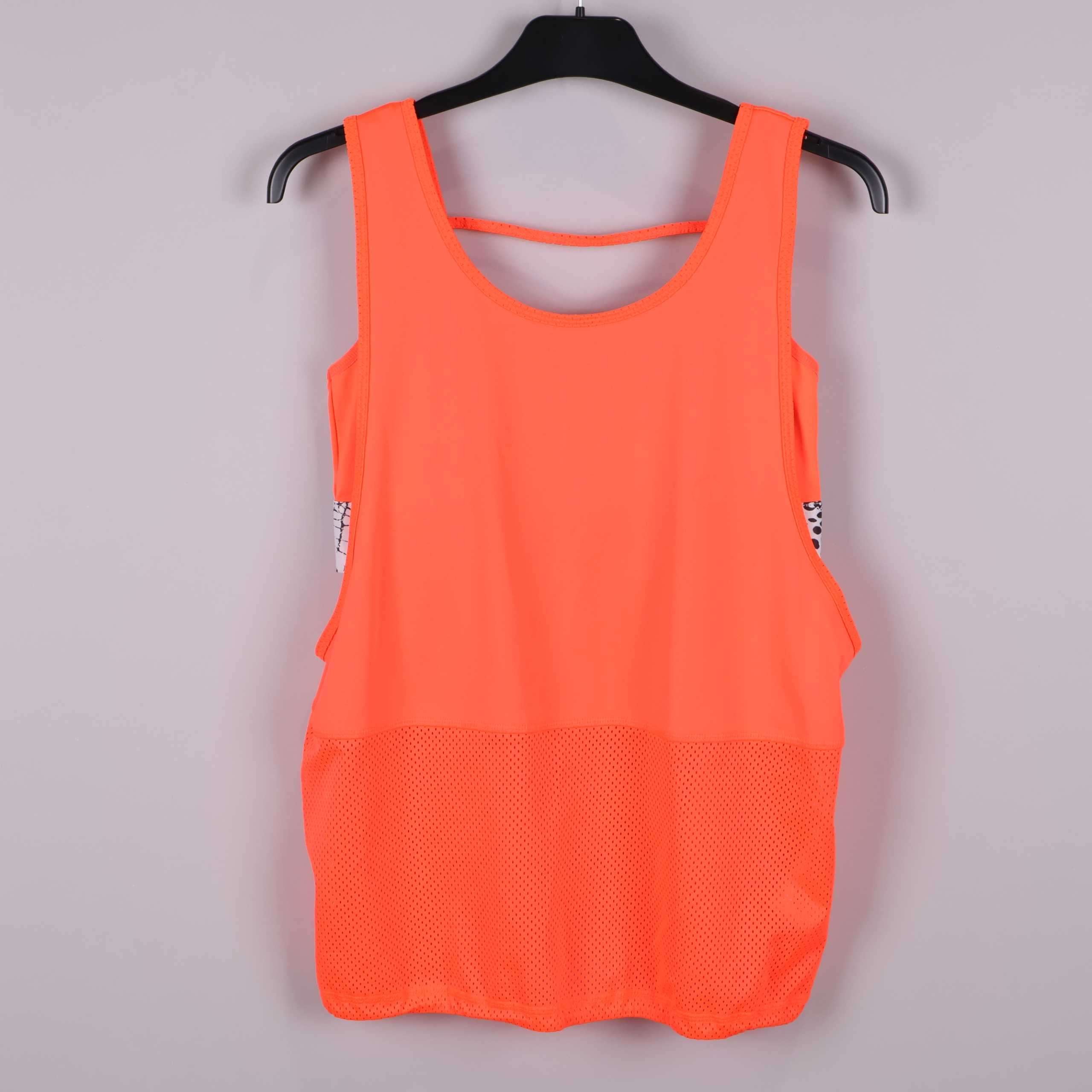 Ett sportigt linne i stark orange med modern meshdetalj nedtill som ger både ett snyggt uttryck och extra ventilation. Ledig passform och rund halsringning gör det bekvämt för alla rörelser. Sidorna har inslag av mönster och materialet känns mjukt mot huden. Perfekt för dig som gillar färg och en uppdaterad träningslook.