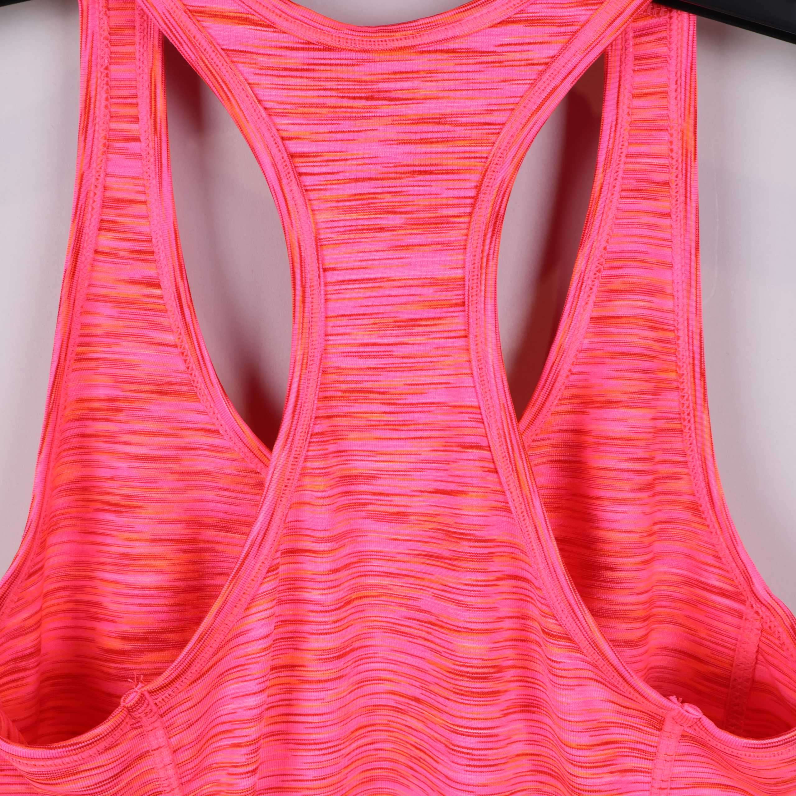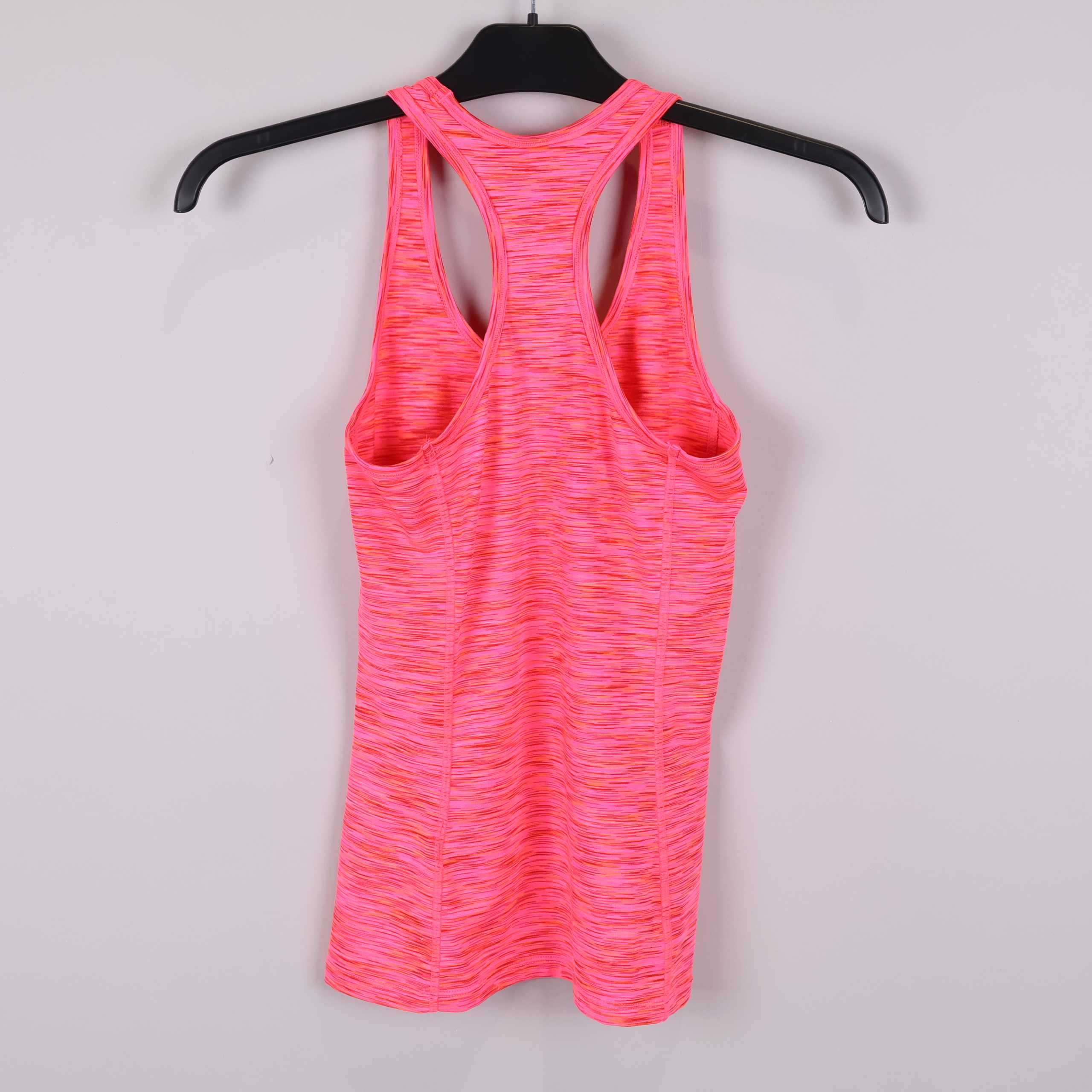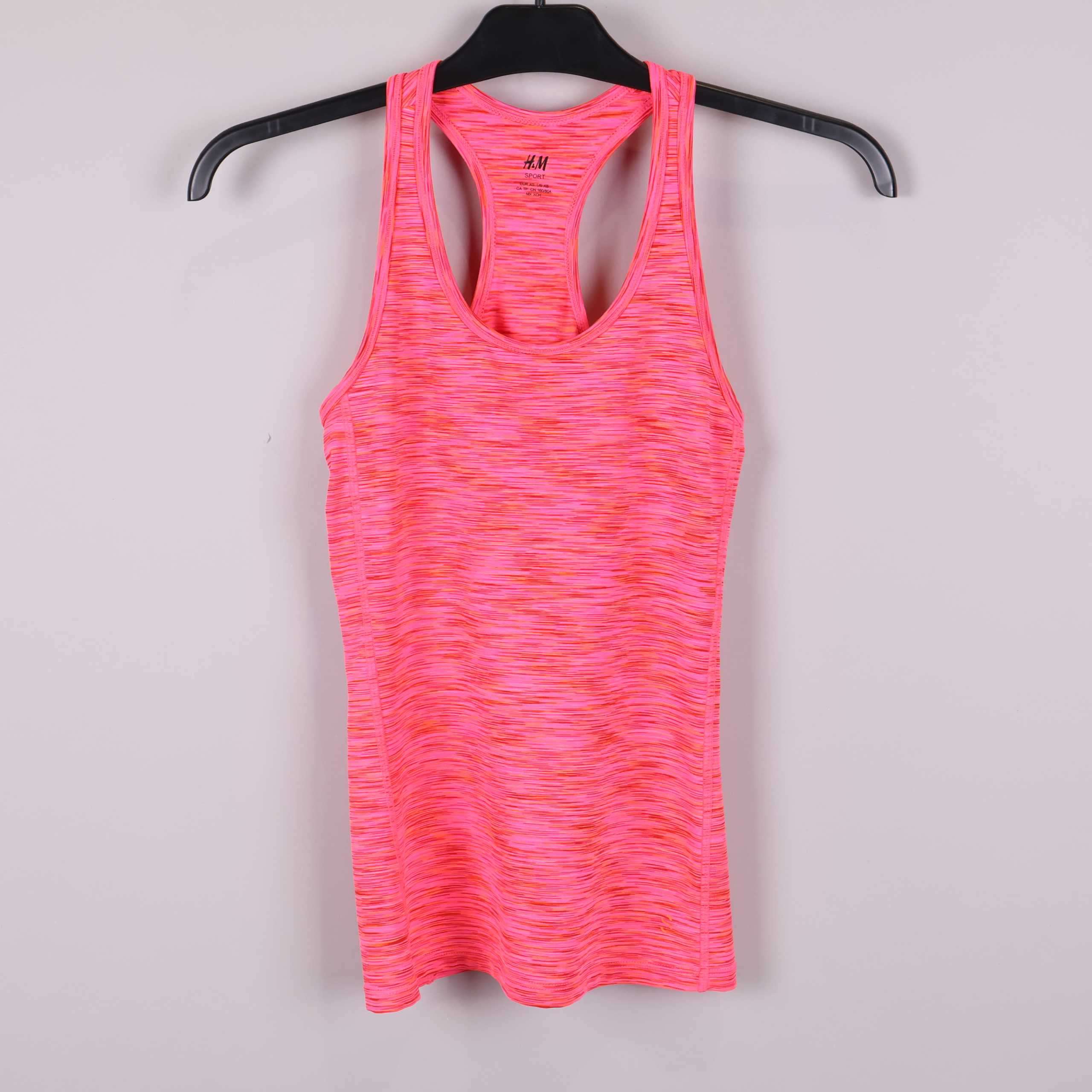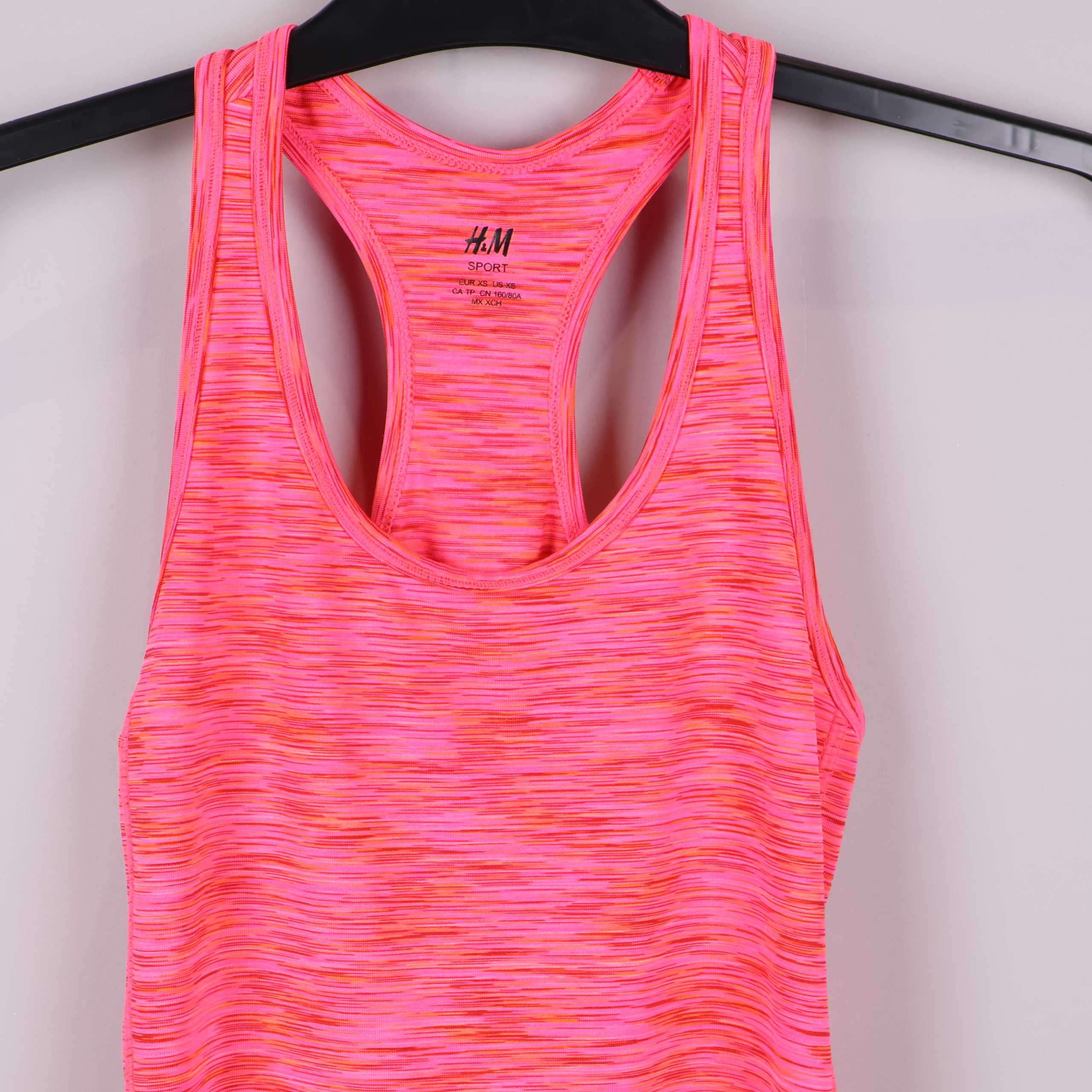 Snyggt sportlinne från H&M med slimmad passform och tydlig racerback. Tyget har en cool melerad design i starka nyanser av rosa och orange som ger en energifylld look. Perfekt stretch i materialet för rörelsefrihet och bekväm känsla vid all aktivitet. Användbar både till träning och som en trendig detalj i vardagslooken.