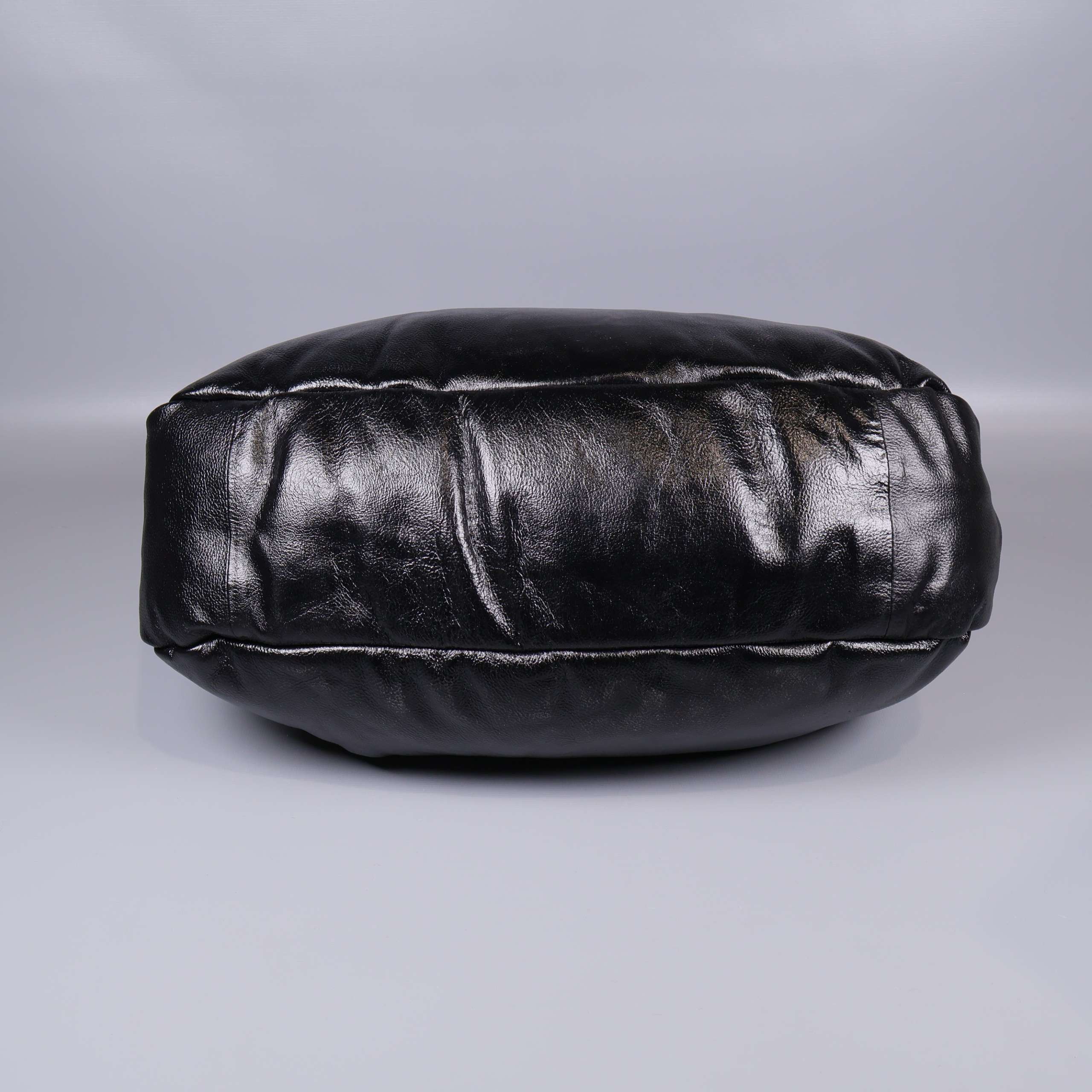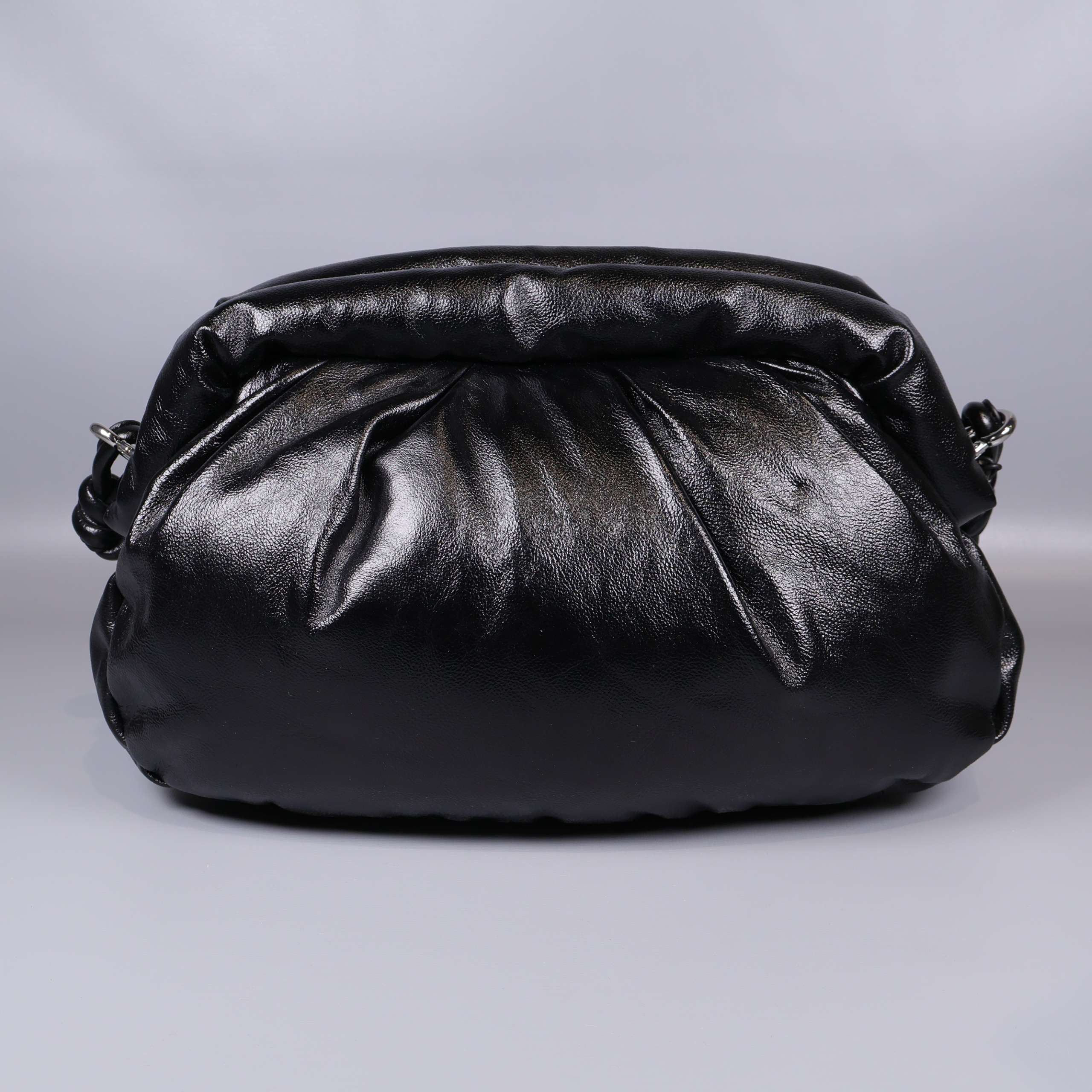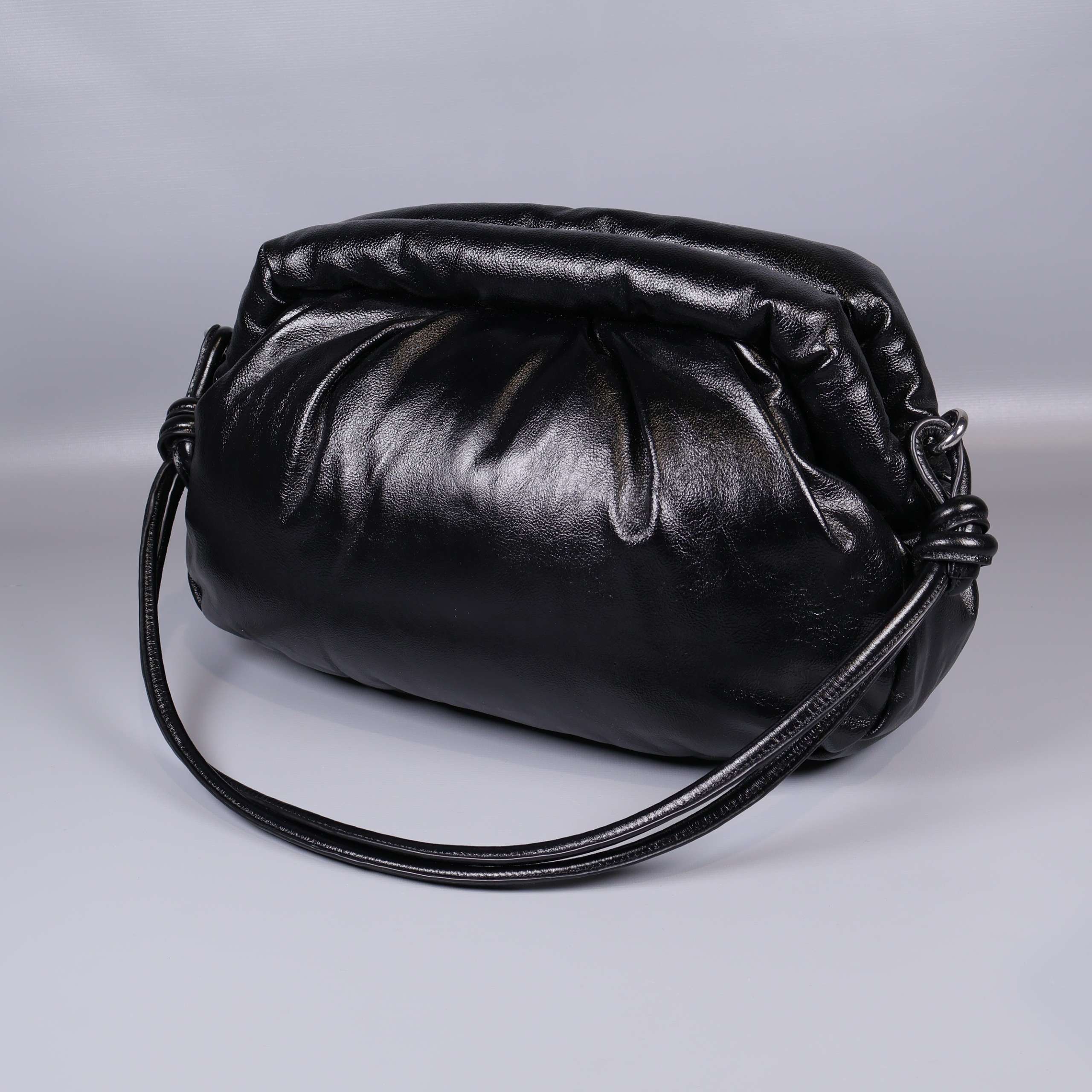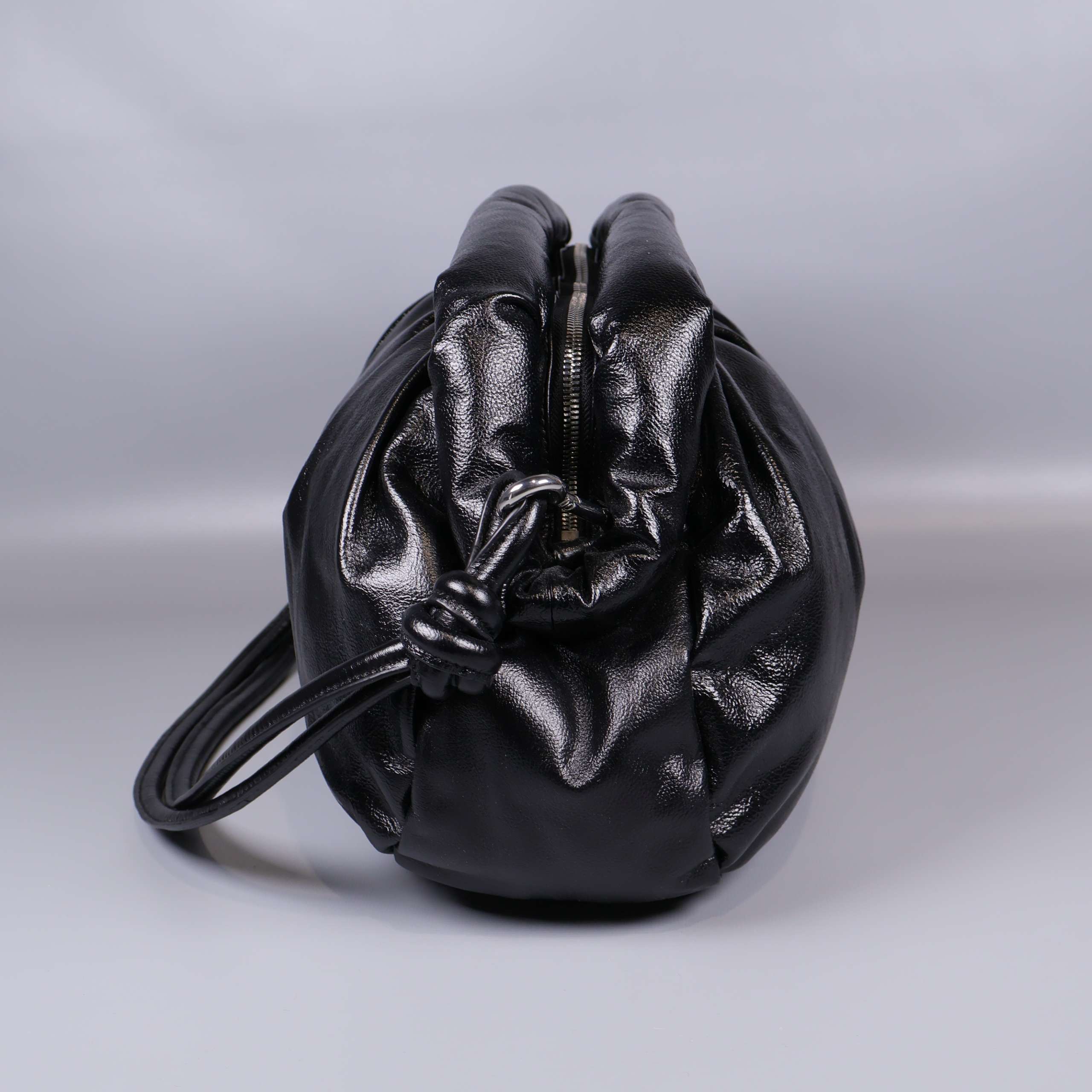Den här axelremsväskan har en mjuk och puffig design med vackra knutdetaljer på remmarna. Väskan är helsvart med en lätt glansig finish och har gott om plats för dina saker. Invändigt finns både dragkedjefack och öppna fack för praktisk organisering. En tidlös väska med modern känsla som passar till det mesta i garderoben.