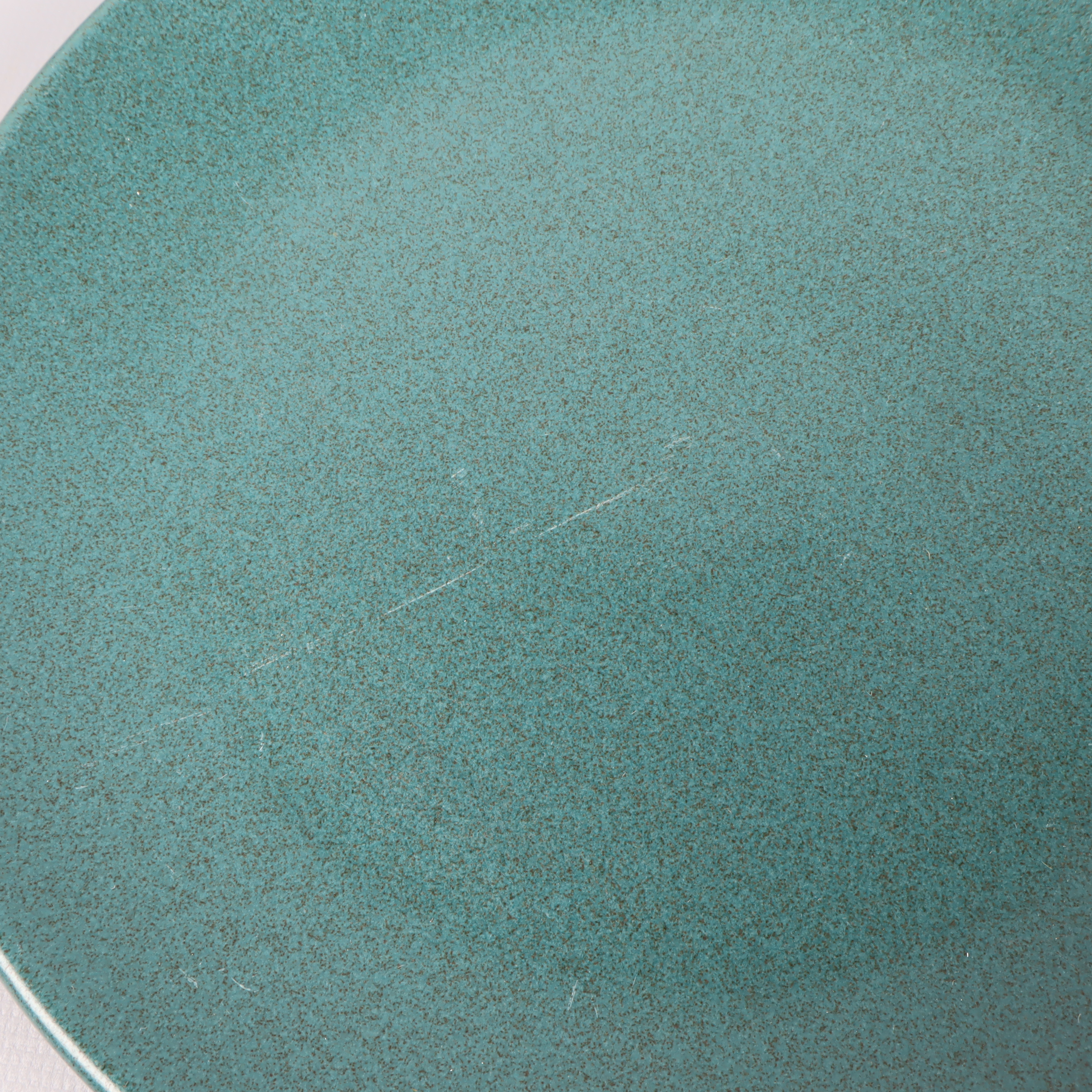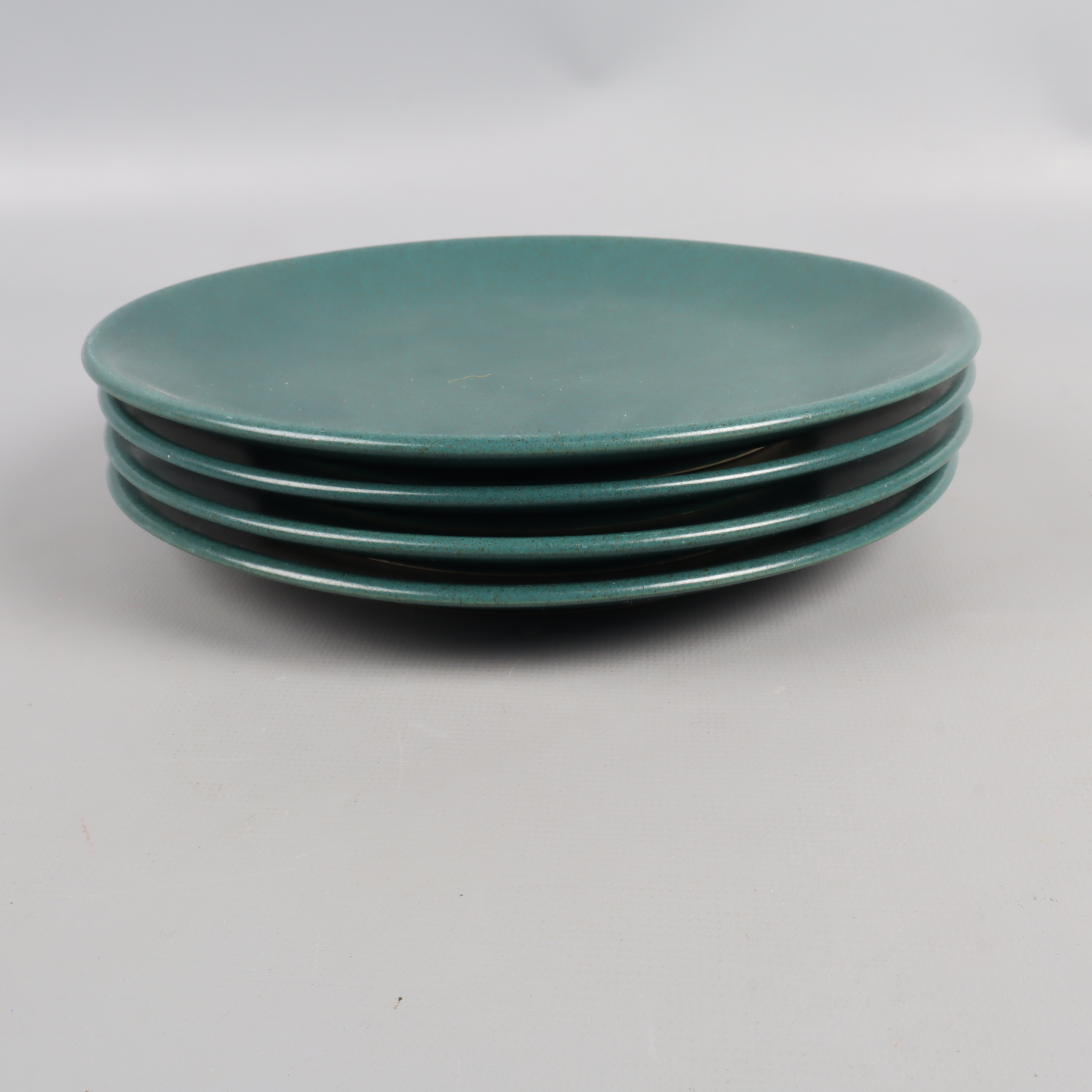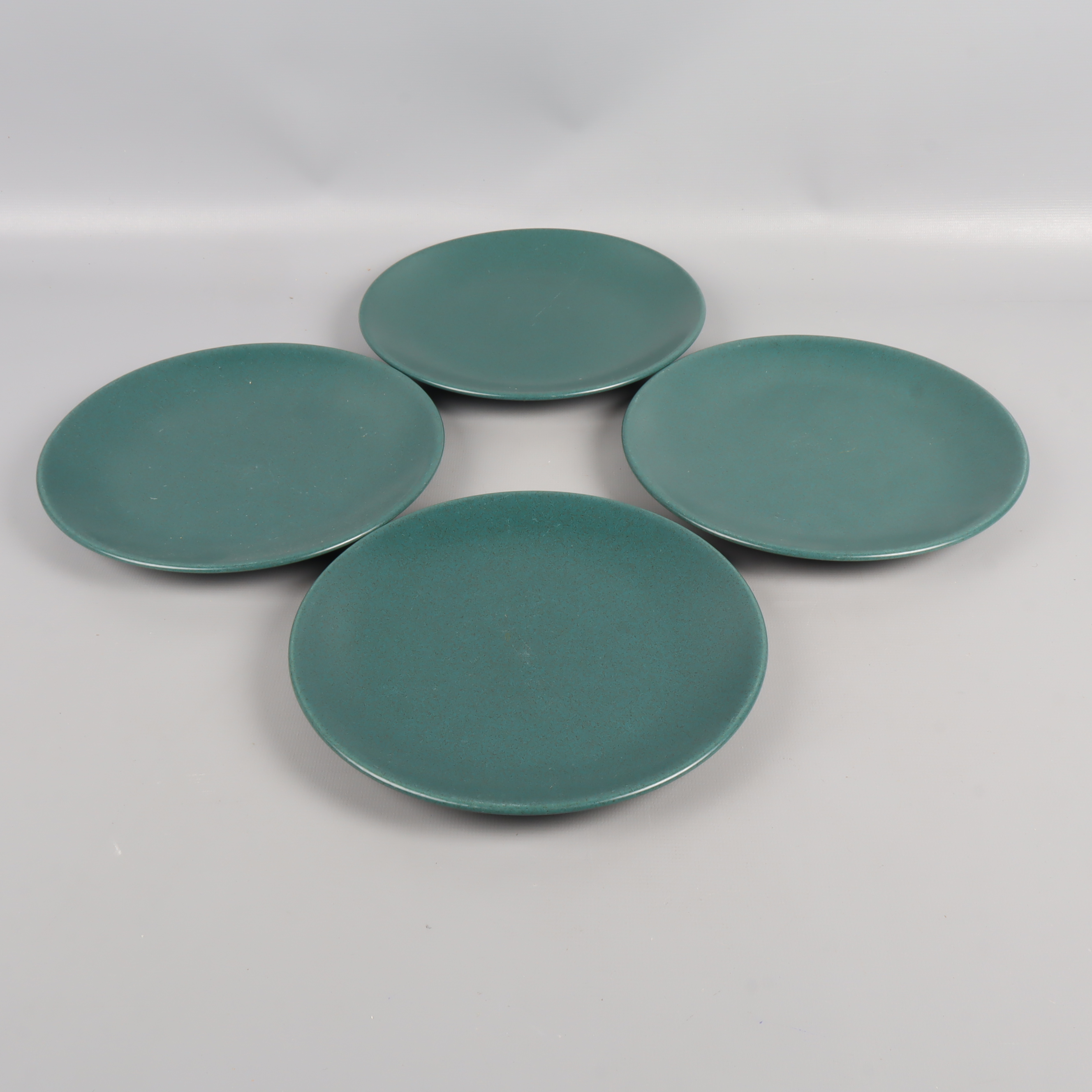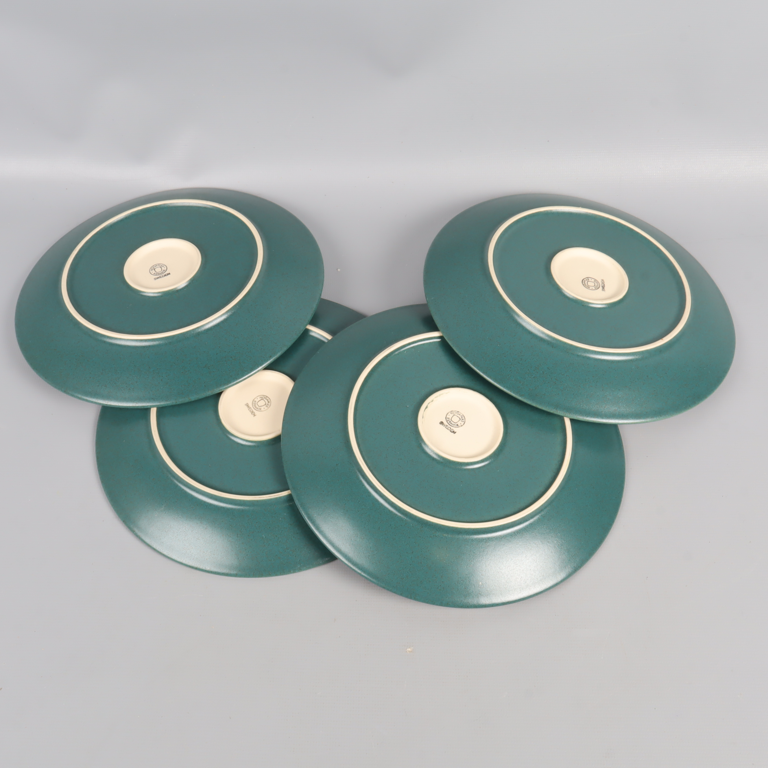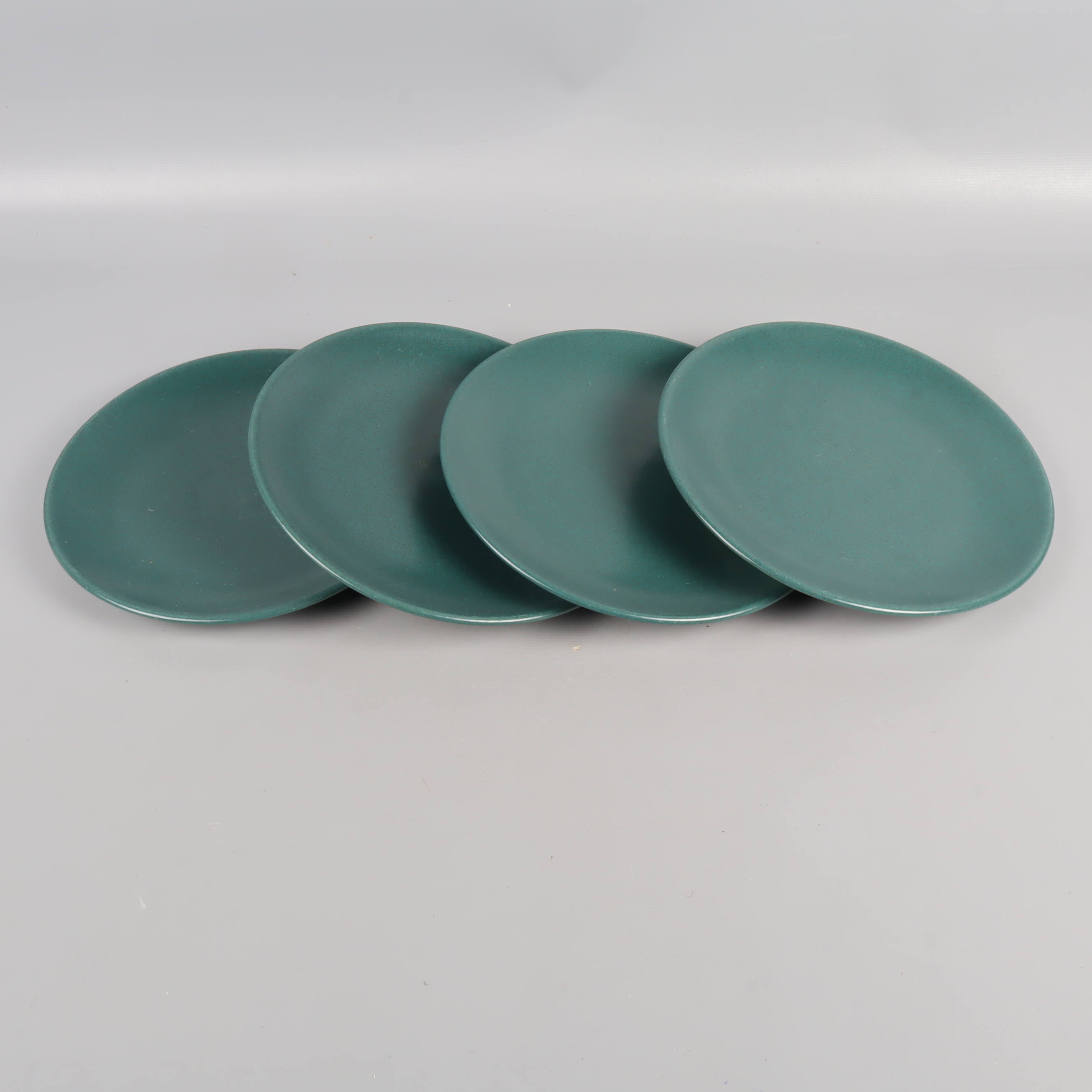 Fyra stilrena assietter i vacker grön ton med matt finish som ger en modern känsla till dukningen. Rund form och tidlös design passar många tillfällen. Ytan är lätt repig men helhetsintrycket är fortfarande mycket gott.