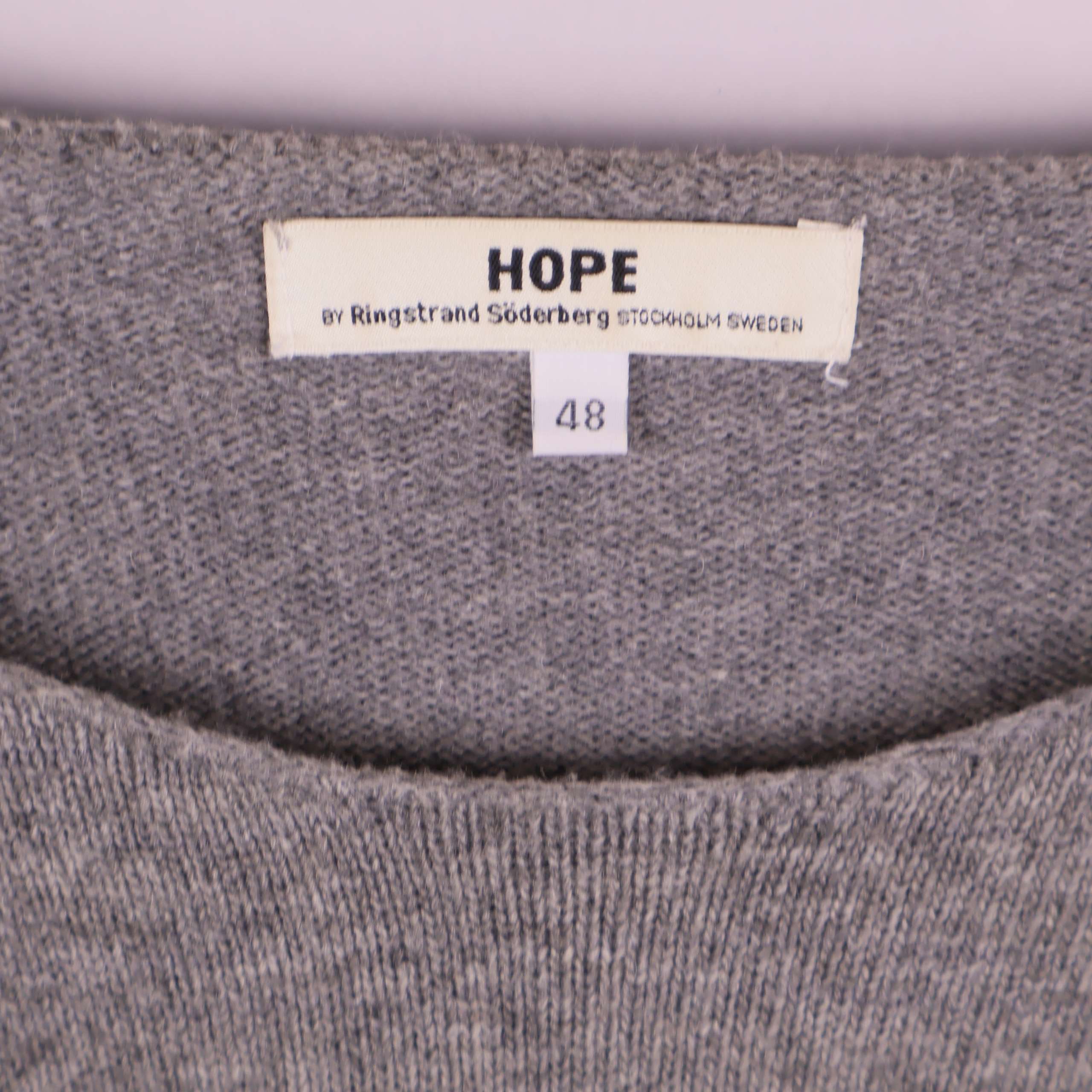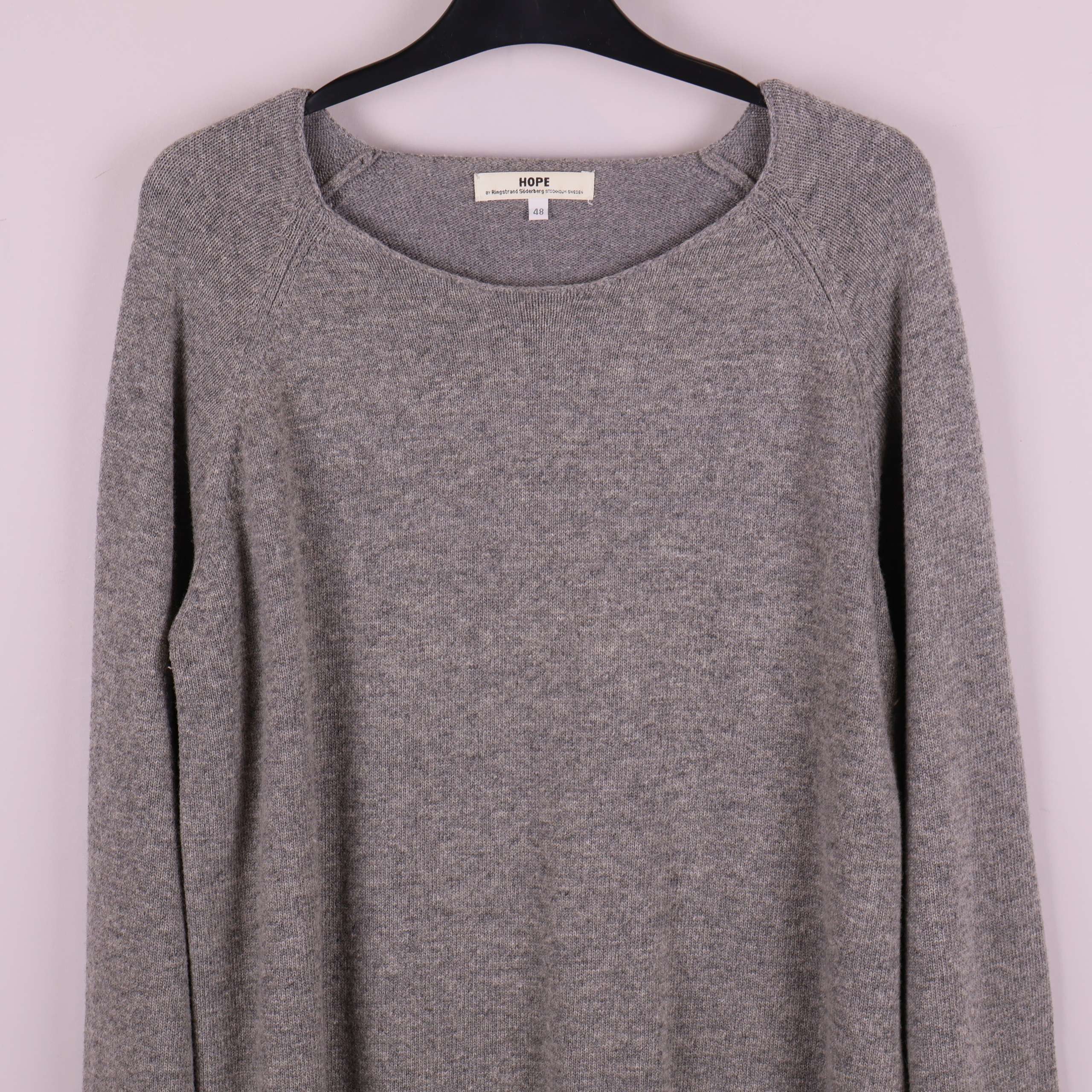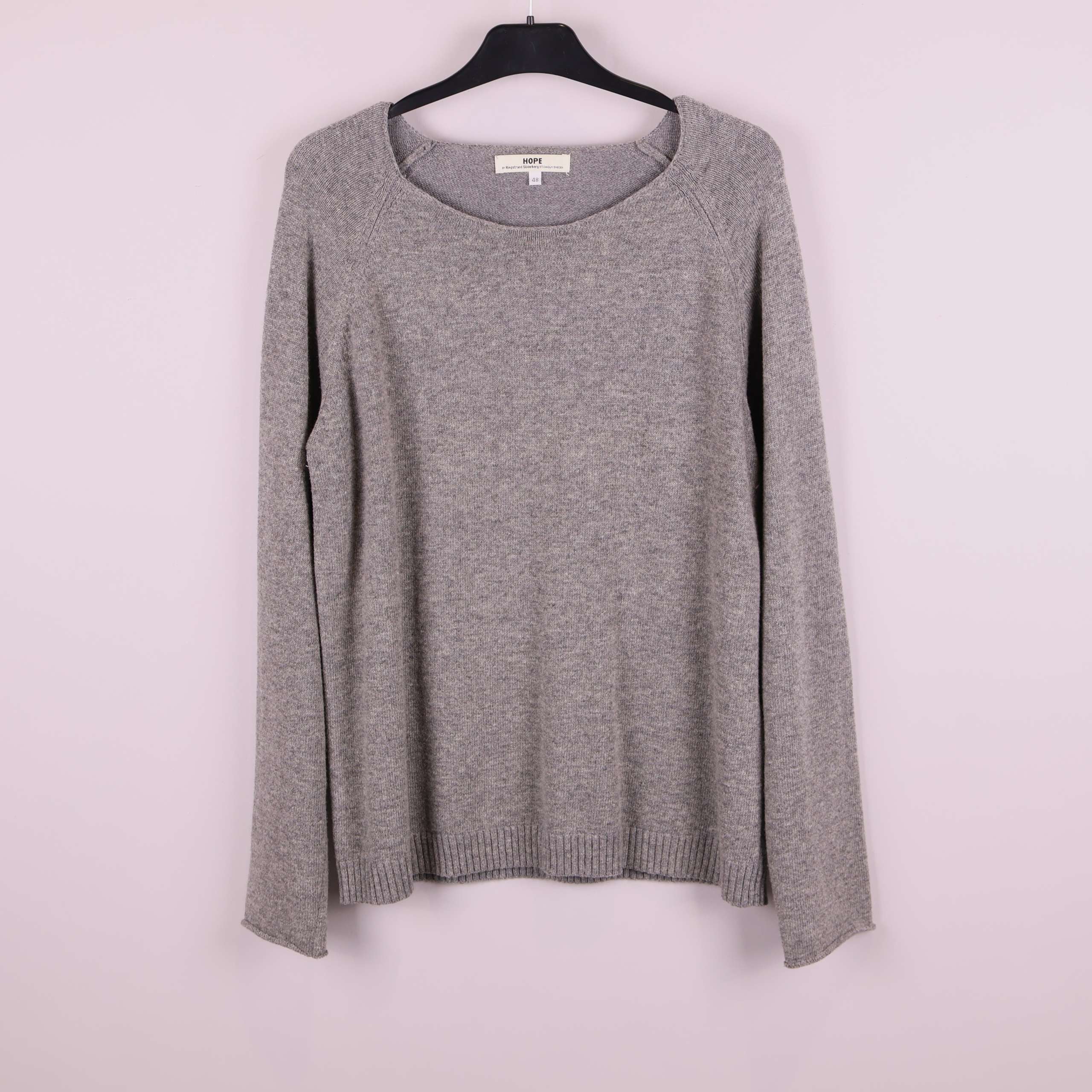 Mjuk stickad tröja i melerad grå ton från Hope. Klassisk rak passform med rund hals och ribbad kant nedtill samt vid ärmslut, vilket ger en tidlös och stilren look. Materialblandning med bomull, lammull och polyamid ger plagget en behaglig känsla och lätt struktur. Perfekt för dig som gillar stilrena basics med modern touch.