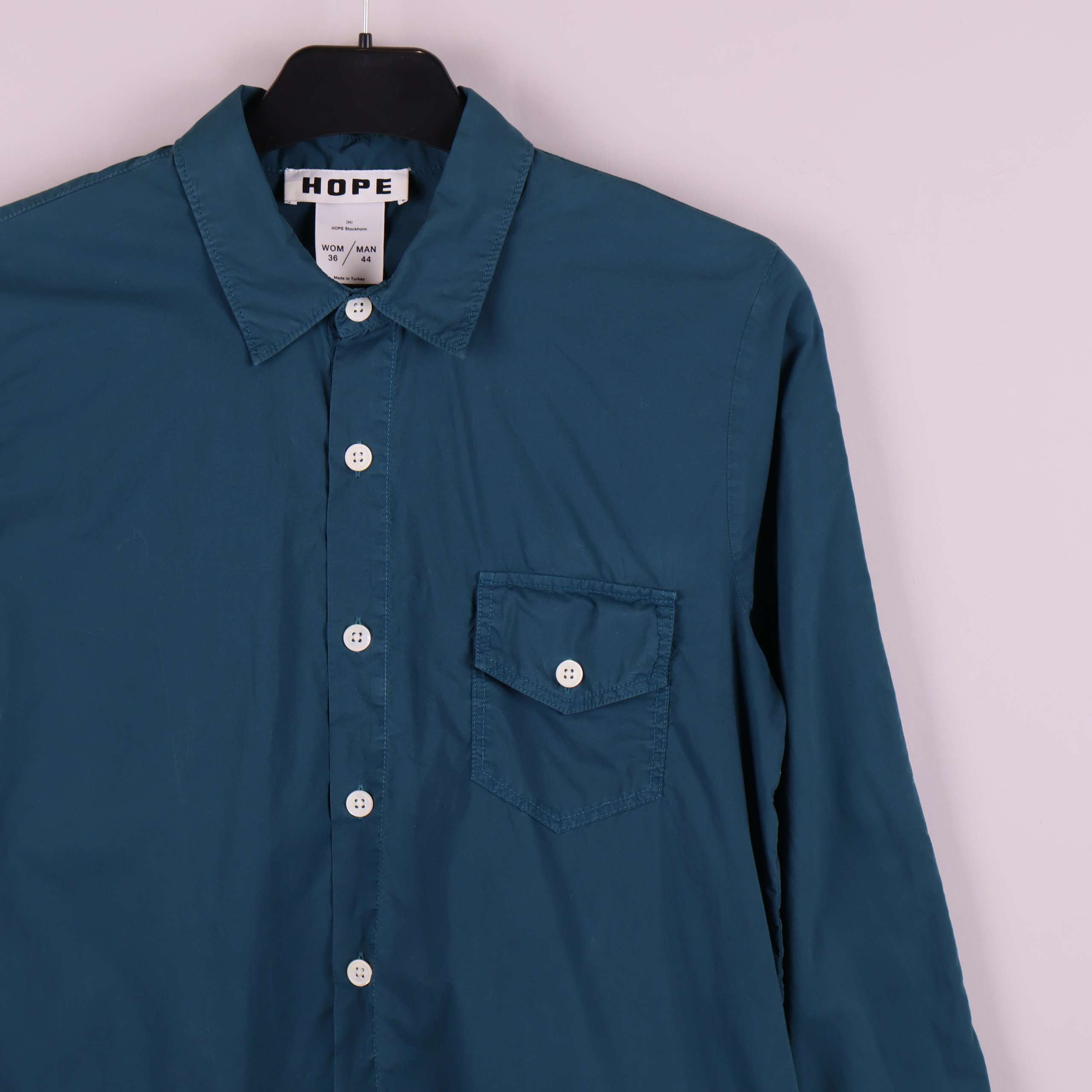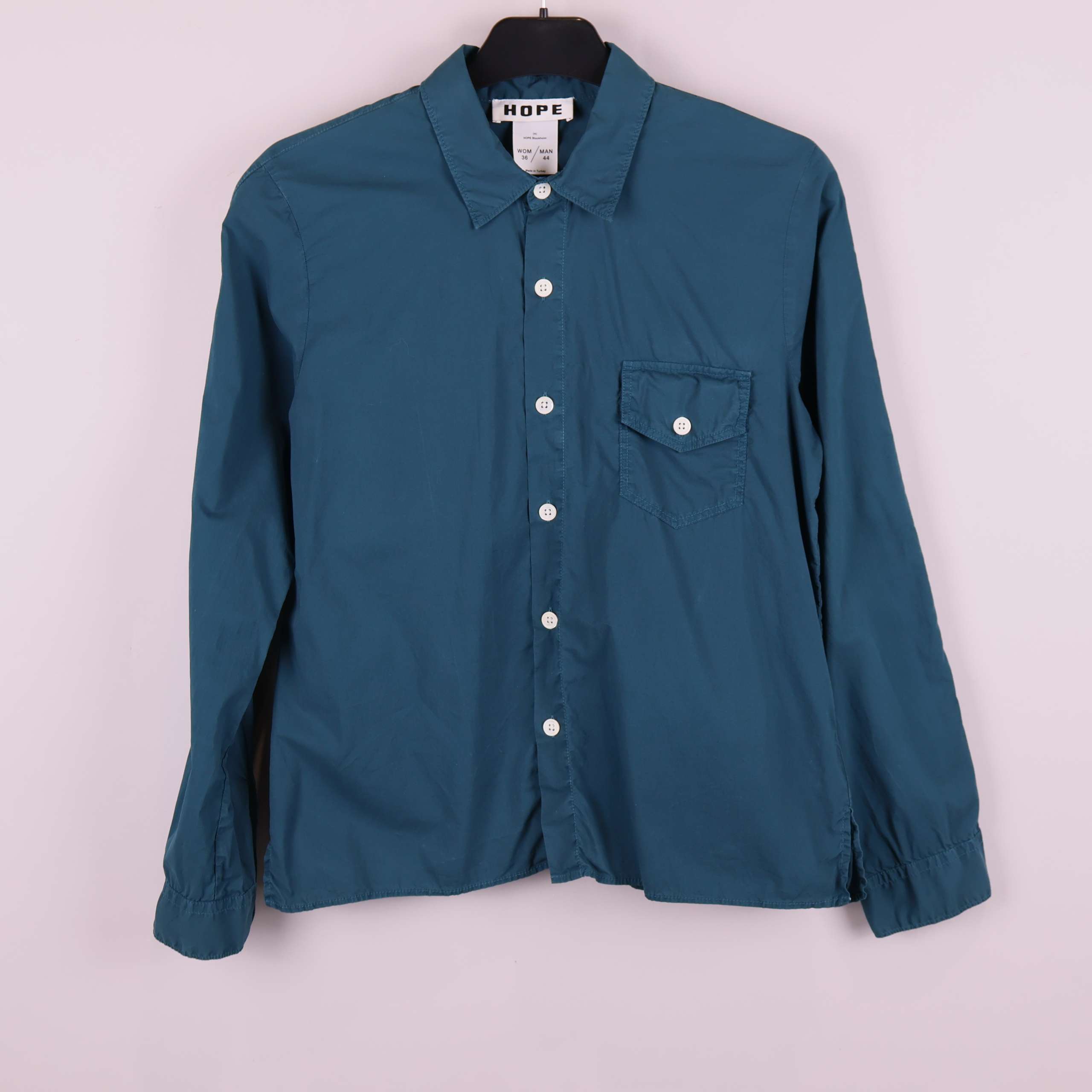 Stilren skjorta med modernt uttryck, helknäppt framtill och klassisk krage. Skjortan har en praktisk bröstficka och vita knappar som kontrasterar snyggt mot den enfärgade djupblå tonen. Lätt och mjuk känsla i tyget och en avslappnad passform som passar många stilar. Perfekt för dig som vill ha en tidlös look med clean finish.