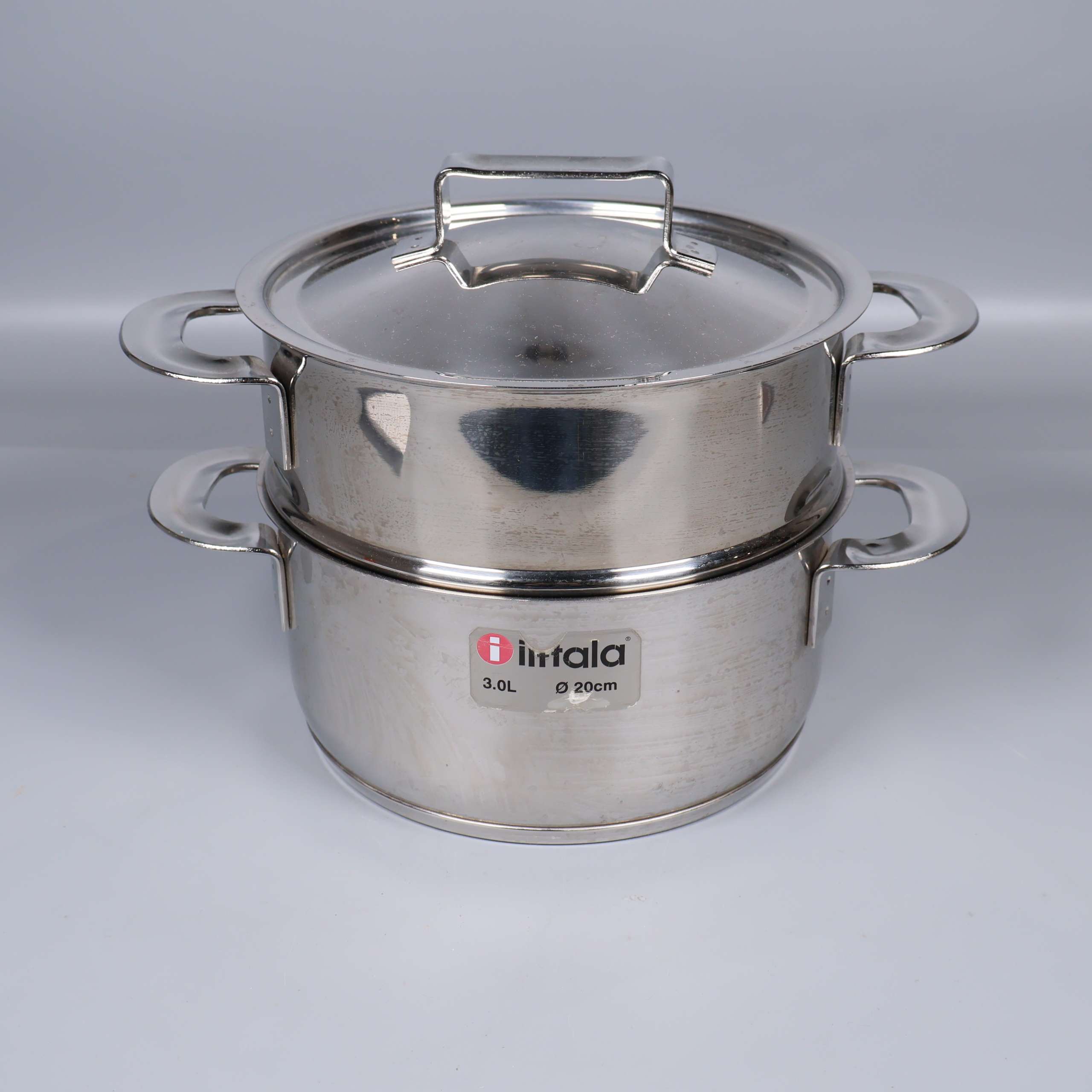Iittala Iittala - Harri Koskienen - Ångkokare i rostfritt stål - 3 liter 399 kr Product variation Antal st Beskrivning Praktisk ångkokare med två delar och lock, tillverkad i rostfritt stål med en snygg och robust finish. Handtag på båda sidor ger ett stadigt grepp och designen känns modern. Visa all beskrivning Skick Använt skick Produkten har blivit använd och kan ha slitits eller ha mindre skador Läs mer om hur vi bedömer Dimensions Höjd: ca 23cm, Diameter: ca 20cm Färg Silver Material Rostfritt stål Varumärke Iittala Produkten är unik och finns enbart som 1 st i lager. Fri frakt på alla köp över 990 kr. 14 dagars ångerrät.