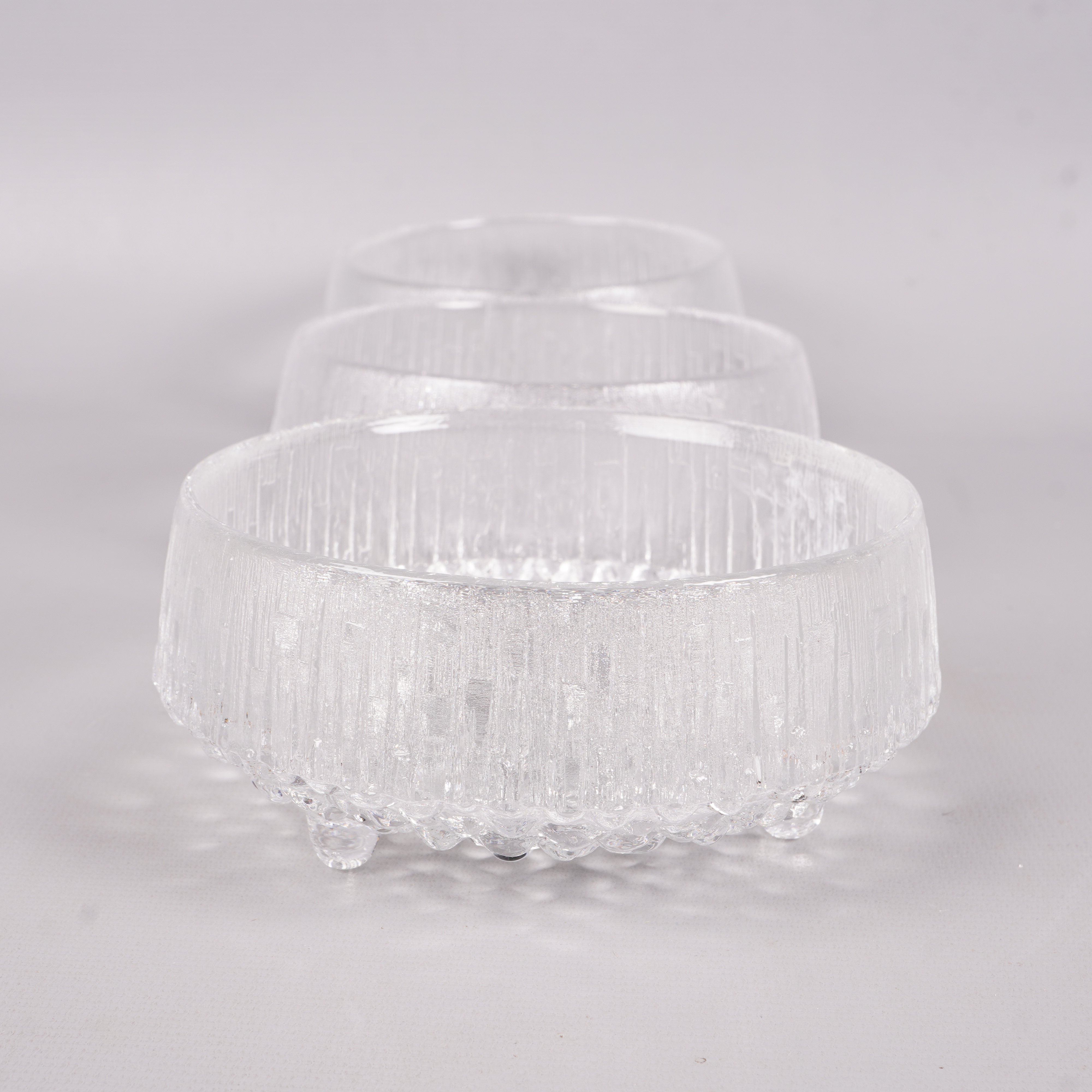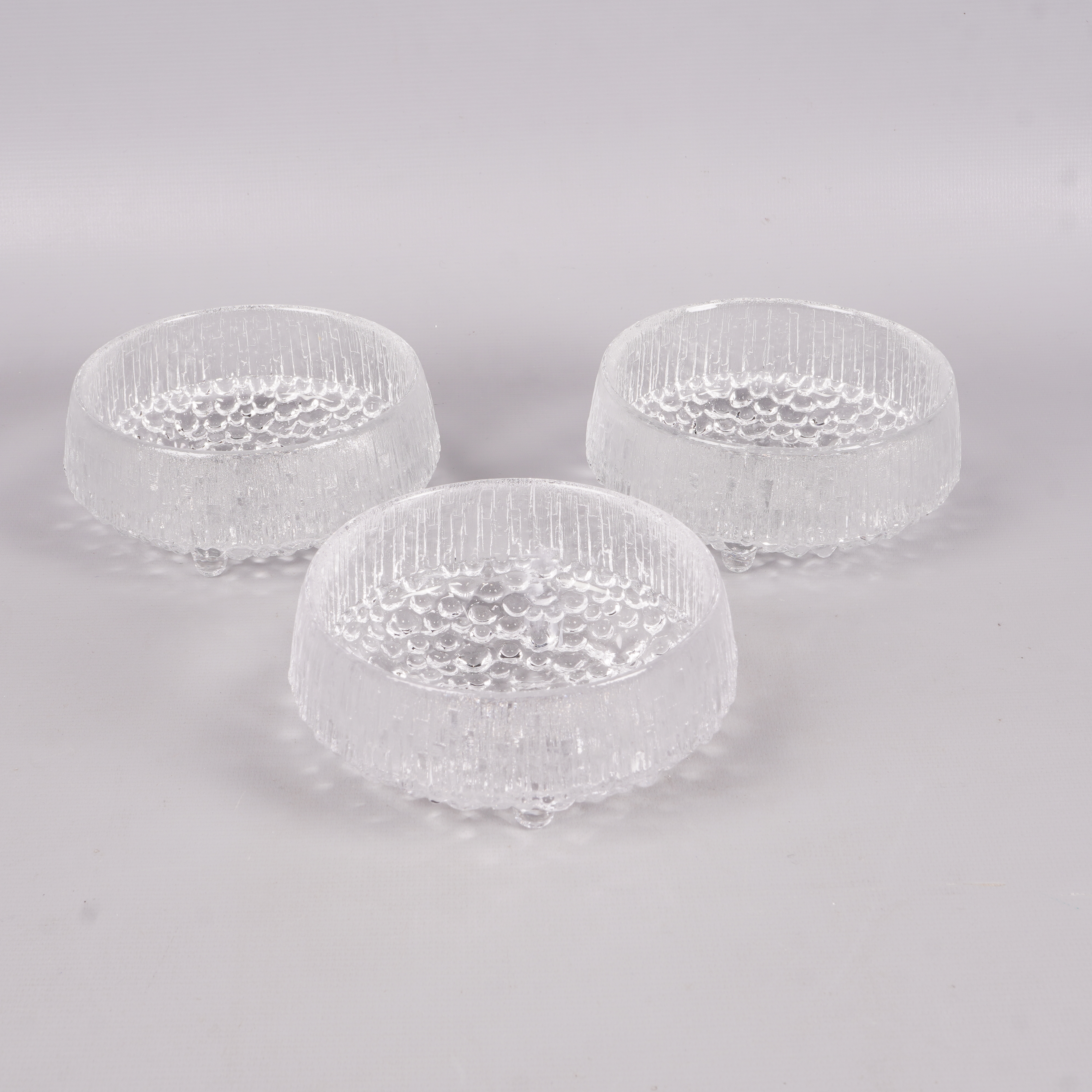 Iittala iittala Tapio Wirkkala dessertskålar med bubblig struktur 199 kr Product variation Antal st Beskrivning Dessa tre skålar från iittala med design av tapio Wirkkala i transparent glas har en bubblig och texturerad design som ger en modern och stilren känsla. Visa all beskrivning Skick Mycket gott skick Produkten är sparsamt använd, är av fin kvalitet och ska inte ha några skador eller förslitningar. Läs mer om hur vi bedömer Dimensions Höjd: ca 5cm Diameter: ca 10.5cm Färg Transparent Material Glas Varumärke Iittala Produkten är unik och finns enbart som 1 st i lager. Fri frakt på alla köp över 990 kr. 14 dagars ångerrät.
