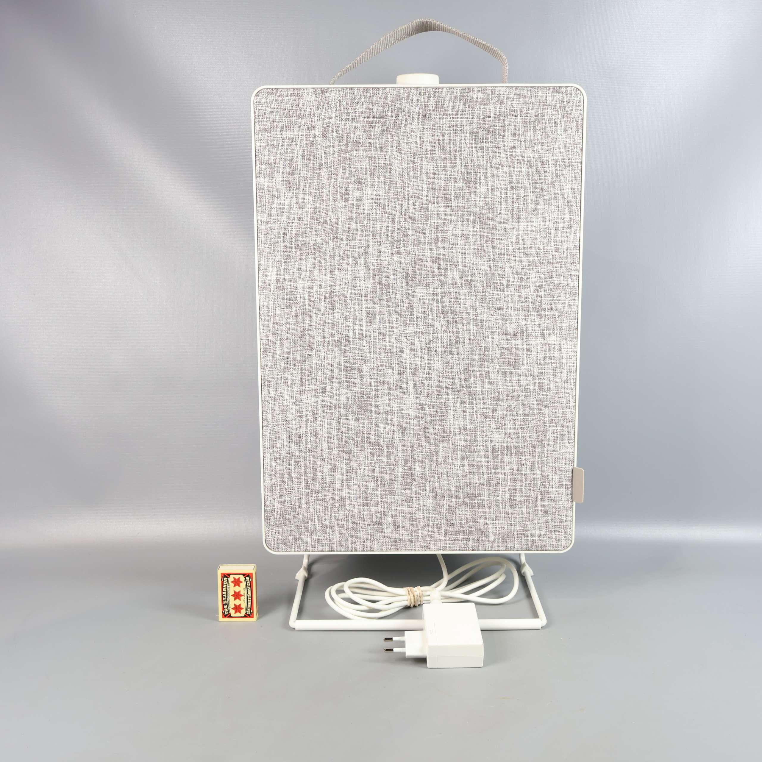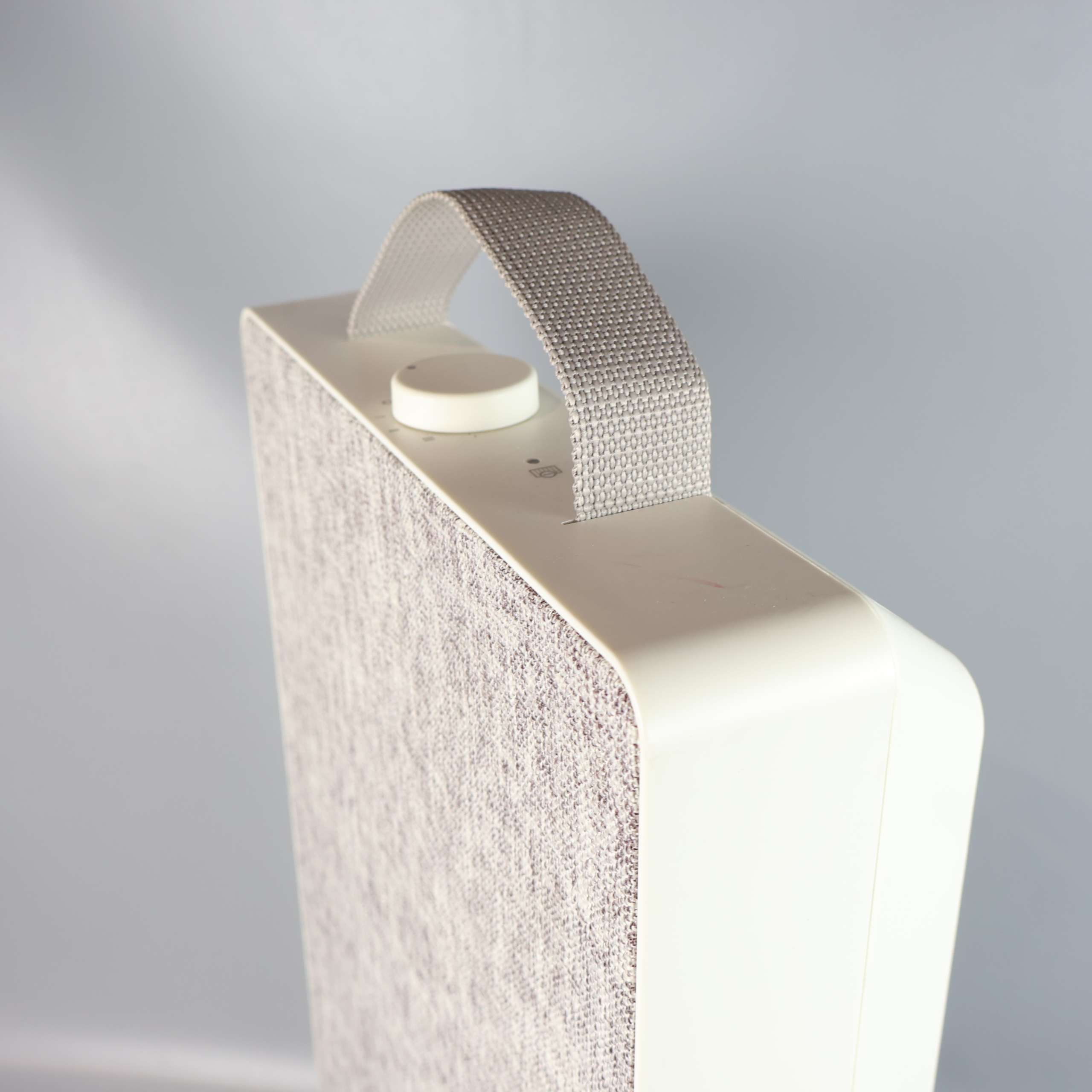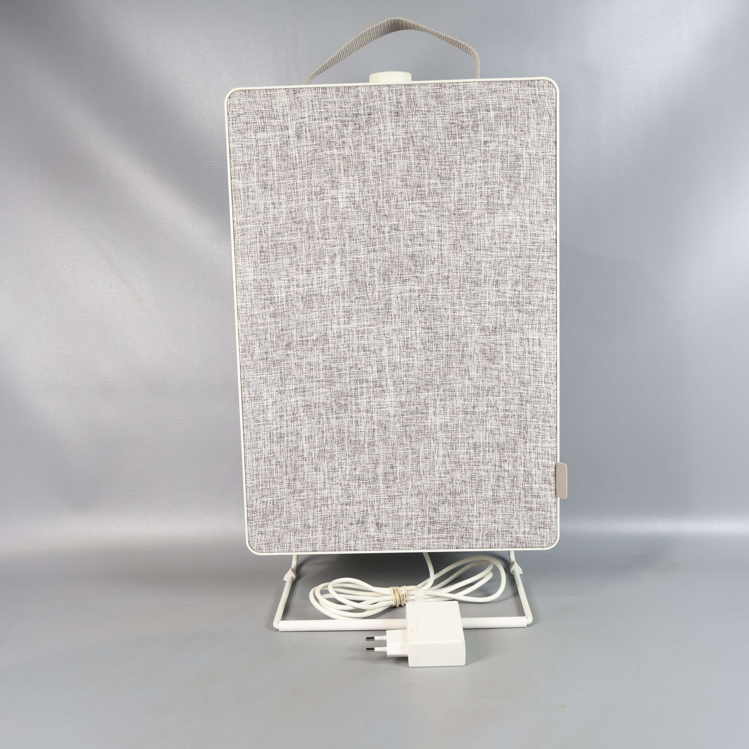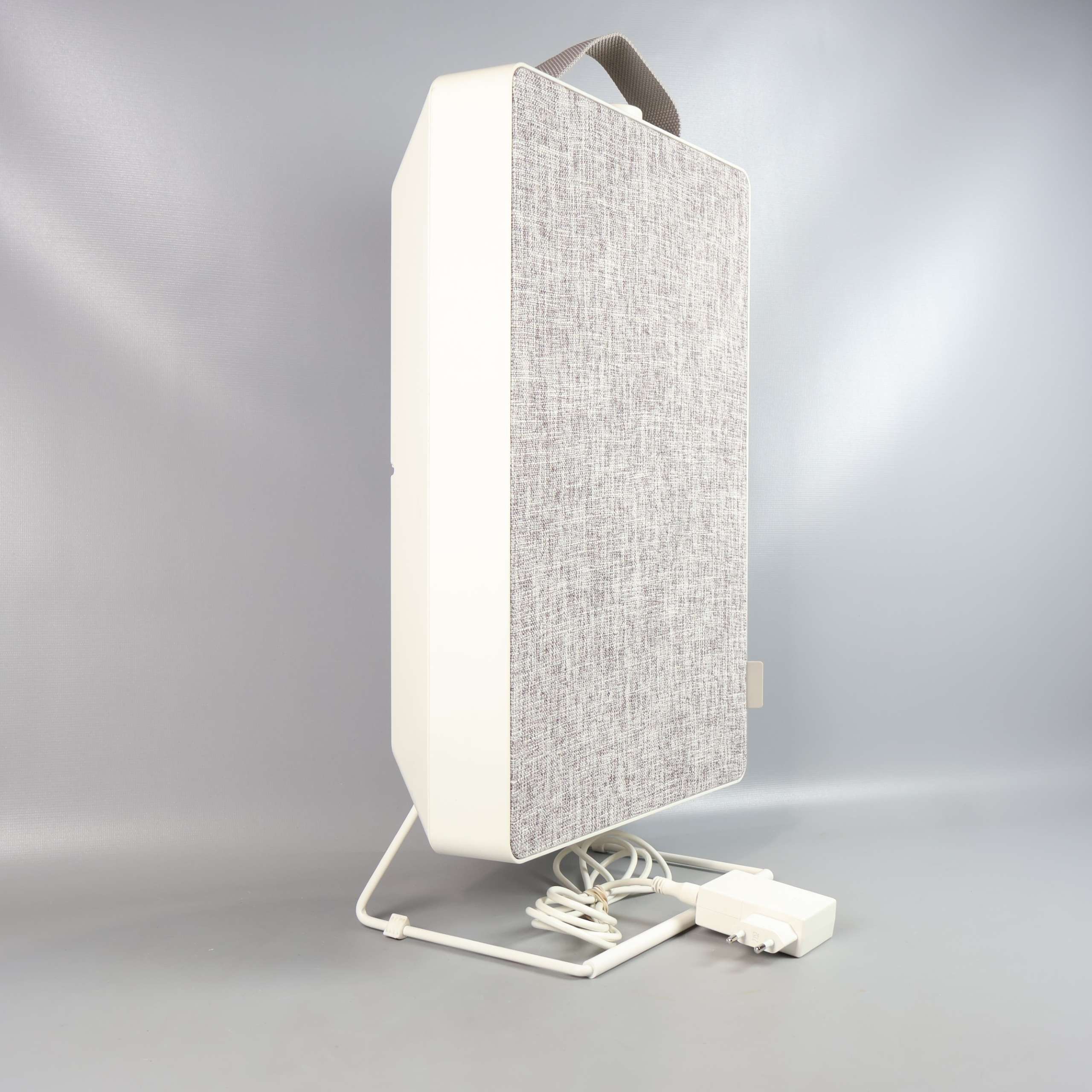 Stilren luftrenare med ljus tygfront och avskalad design som smälter in i rummet. Smidigt bärhandtag uppe och enkel vred för styrning. Passar perfekt på golvet med stabilt ställ och diskret strömkabel. Modern look och subtil struktur för ett sobert intryck.