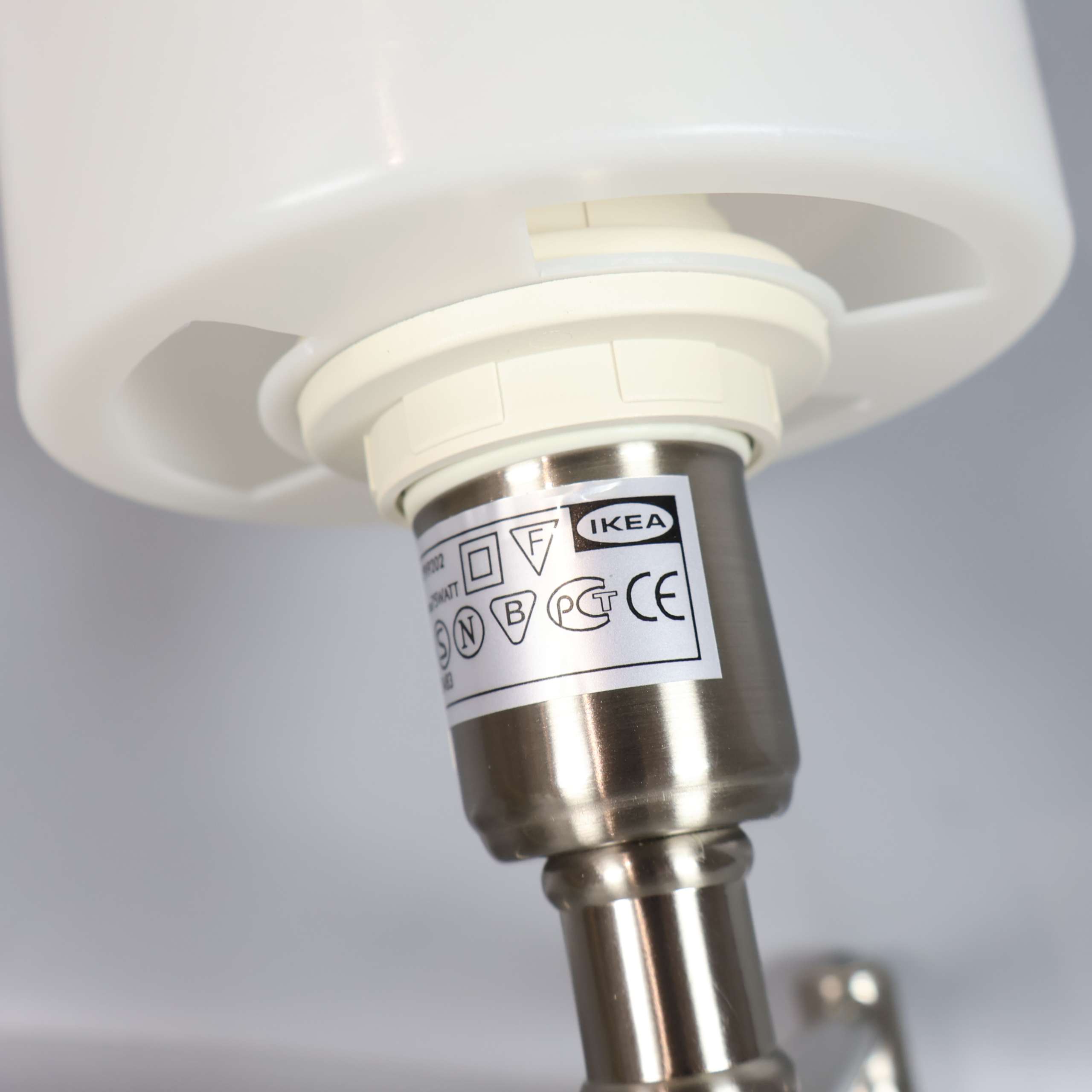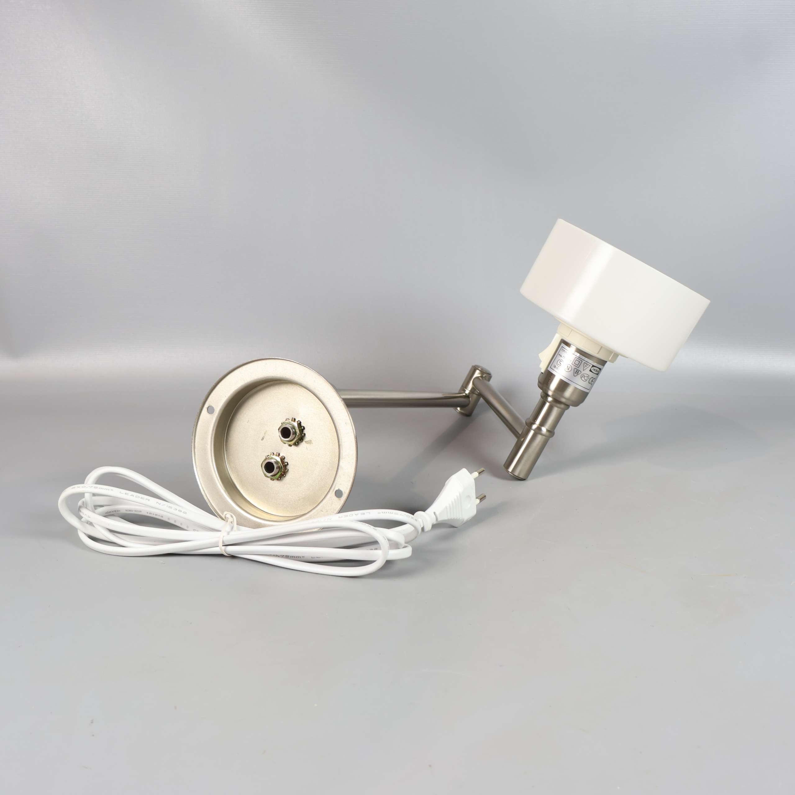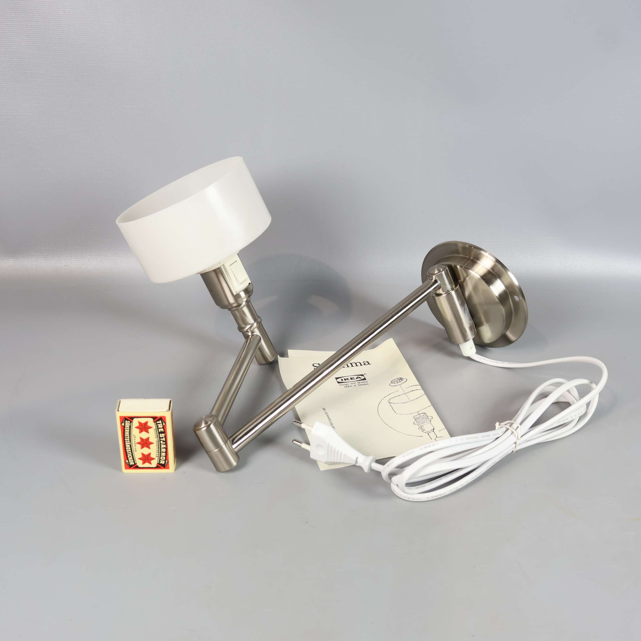 En stilren vägglampa med matt vit skärm och borstad metallfinish. Den vinklingsbara armen ger flexibel belysning efter behov. Klassisk och minimalistisk look, passar bra i de flesta rum och smälter in diskret mot väggen. Vit sladd ingår, enkel att montera.