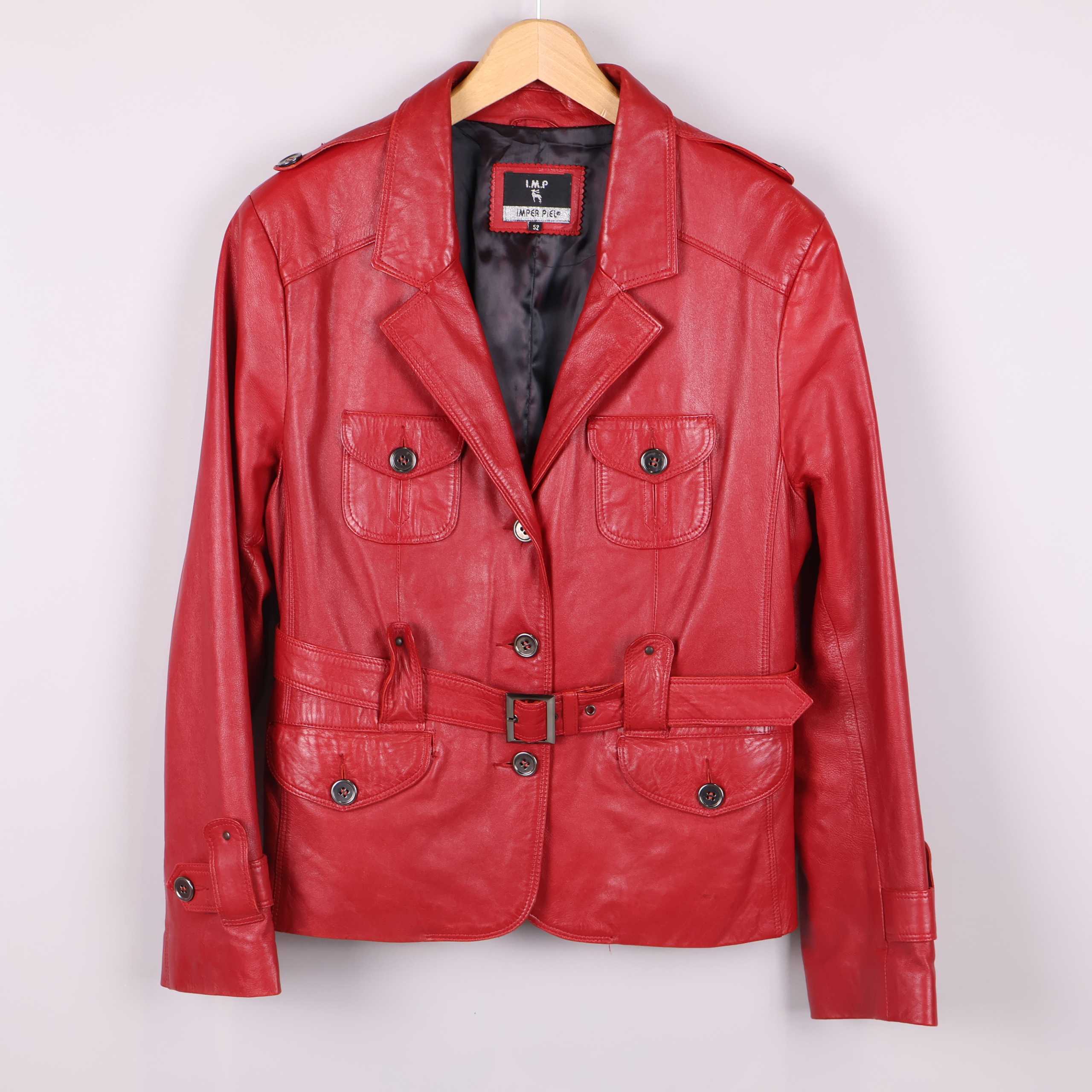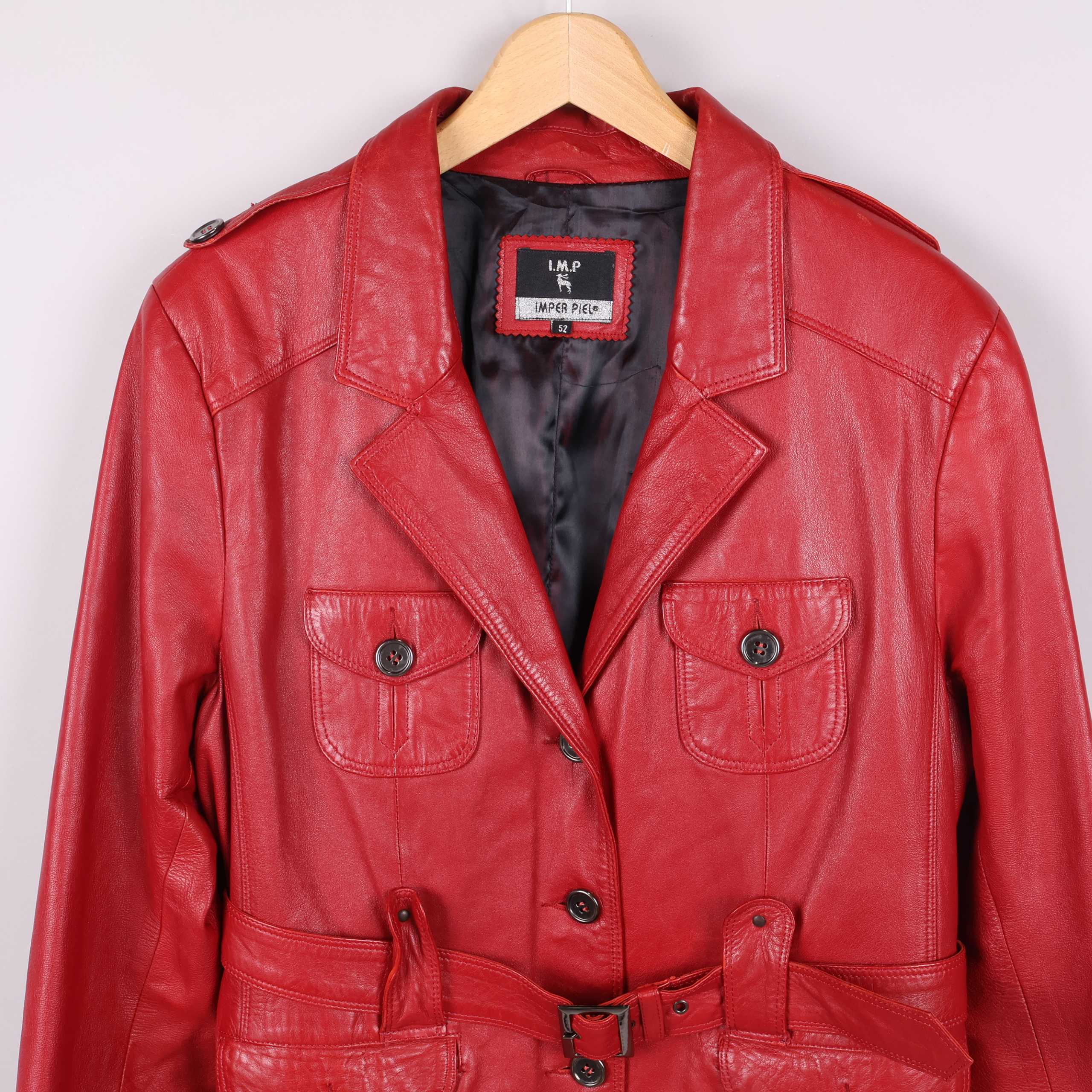 Imper Piel röd skinnjacka med bälte