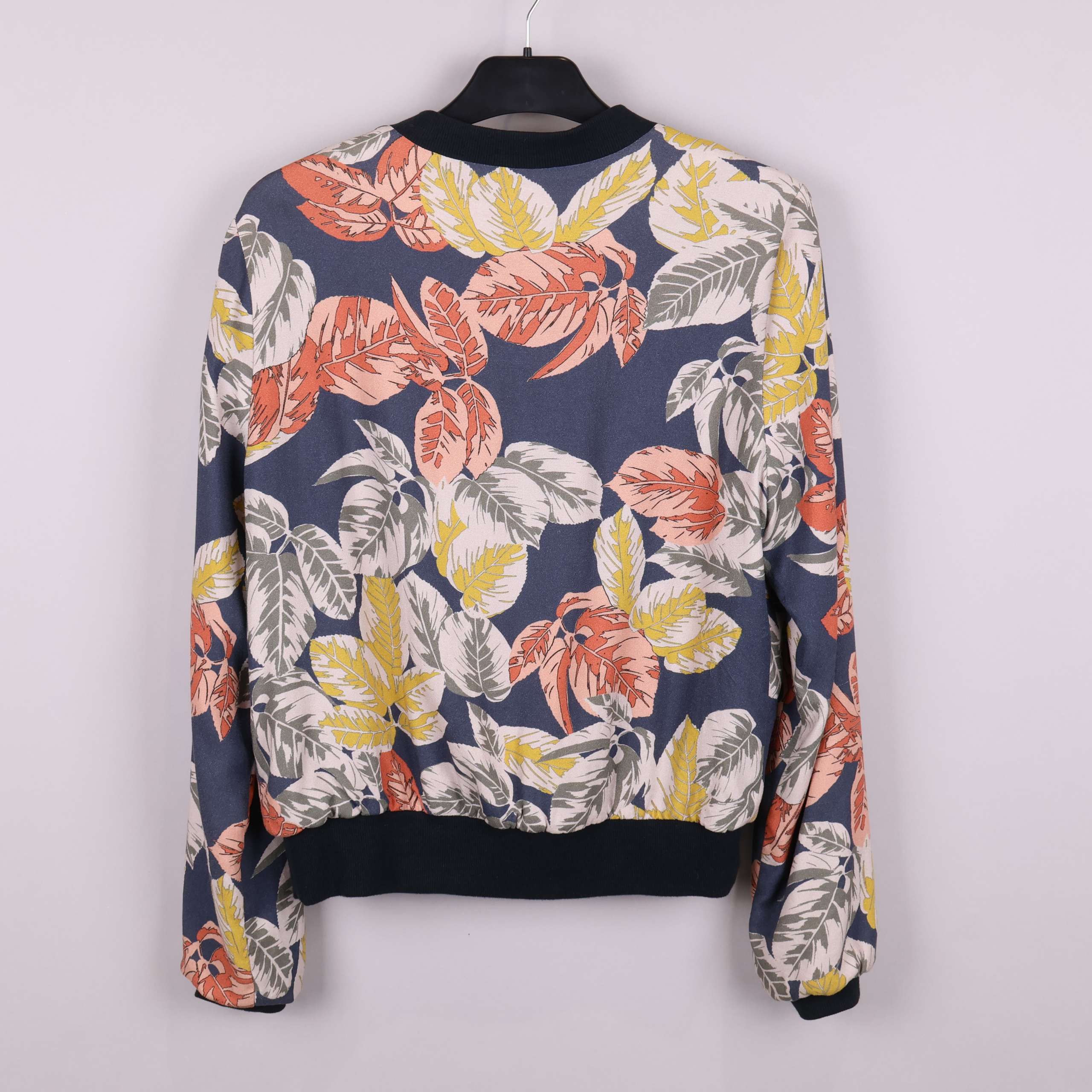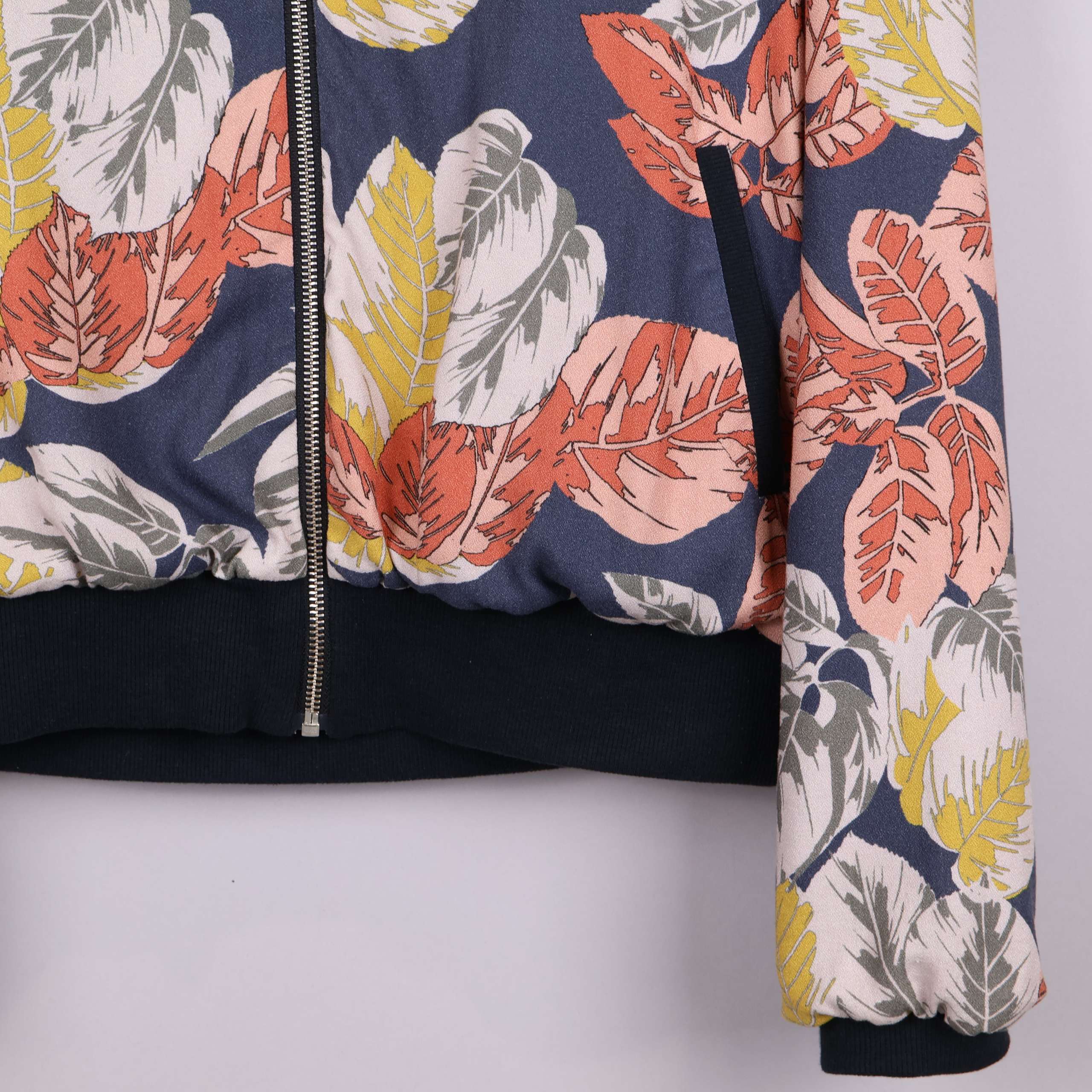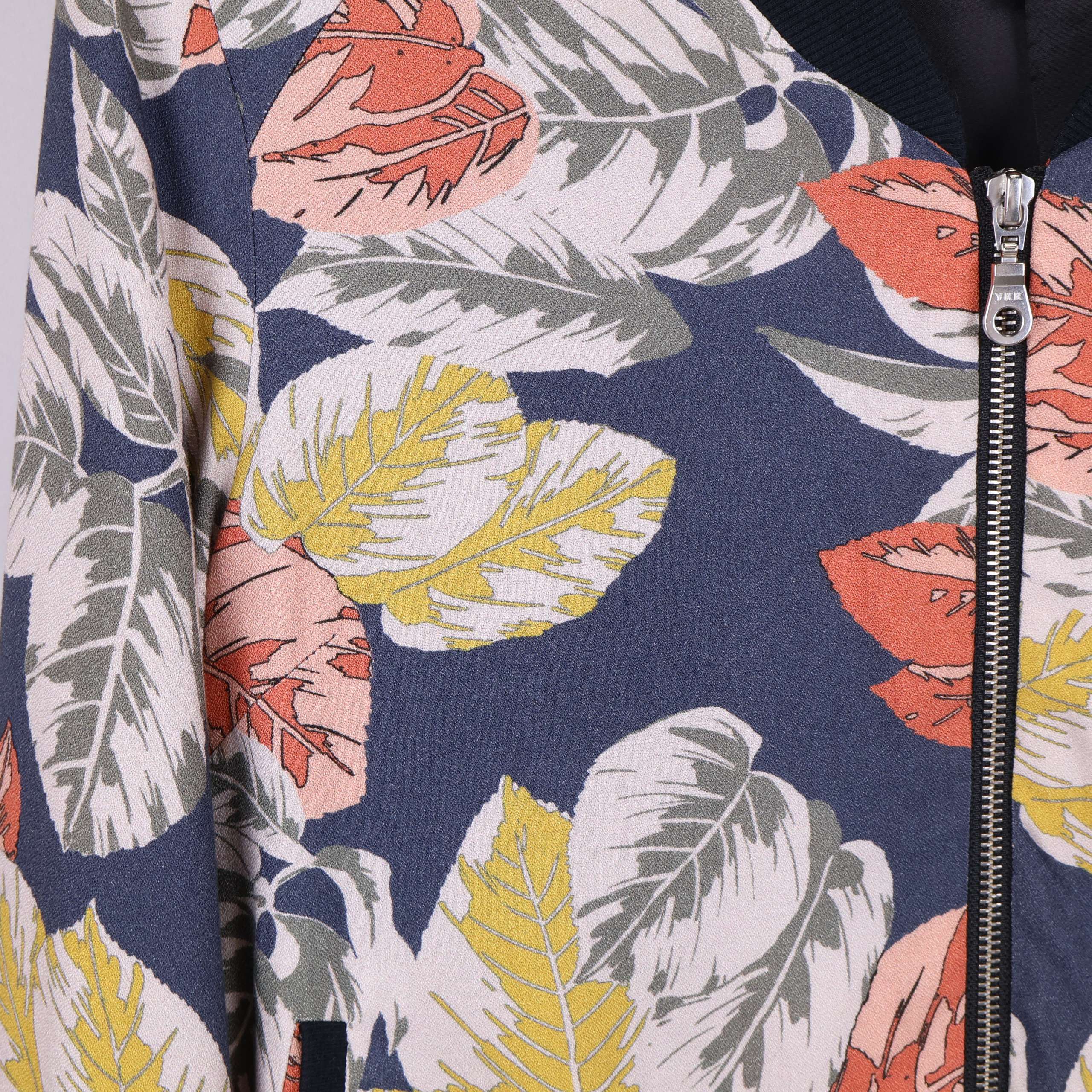 Stilren jacka med bladmönster. Jackan har en dragkedja fram och kontrasterande elastiska muddar för en bekväm passform.