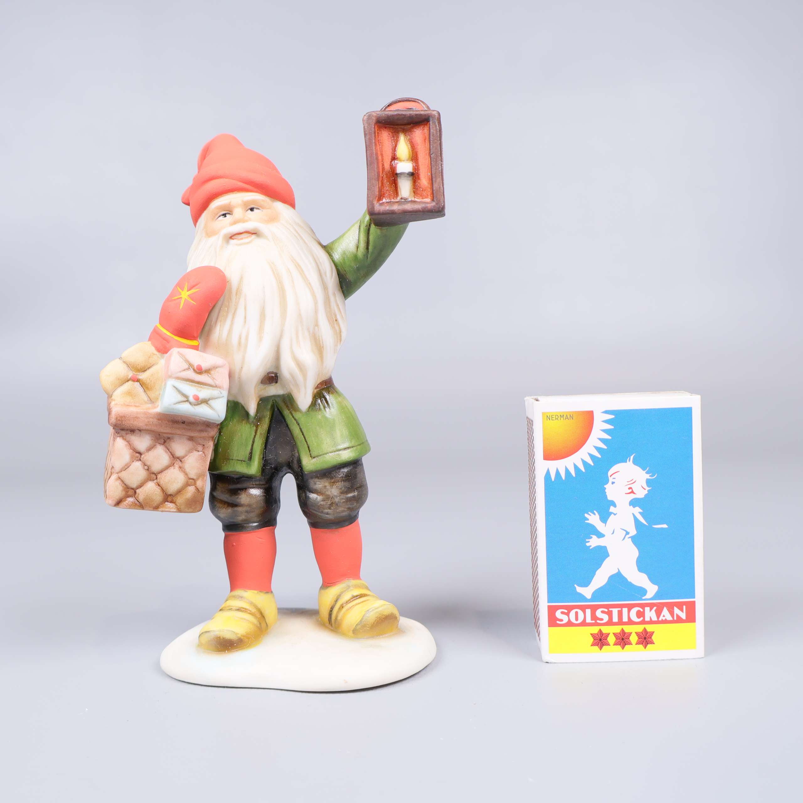 Jenny Nyström - Porslinsfigur - Tomte med lykta 359 kr Product variation Antal st Beskrivning Porslinsfigur av en tomte med en lykta, i stil med de klassiska illustrationerna av den svenska konstnären Jenny Nyström. Visa all beskrivning Detaljer Höjd: 12 cm Skick Mycket gott skick Produkten är sparsamt använd, är av fin kvalitet och ska inte ha några skador eller förslitningar. Läs mer om hur vi bedömer Dimensions Höjd: 12 cm Material Porslin Produkten är unik och finns enbart som 1 st i lager. Fri frakt på alla köp över 990 kr. 14 dagars ångerrät.