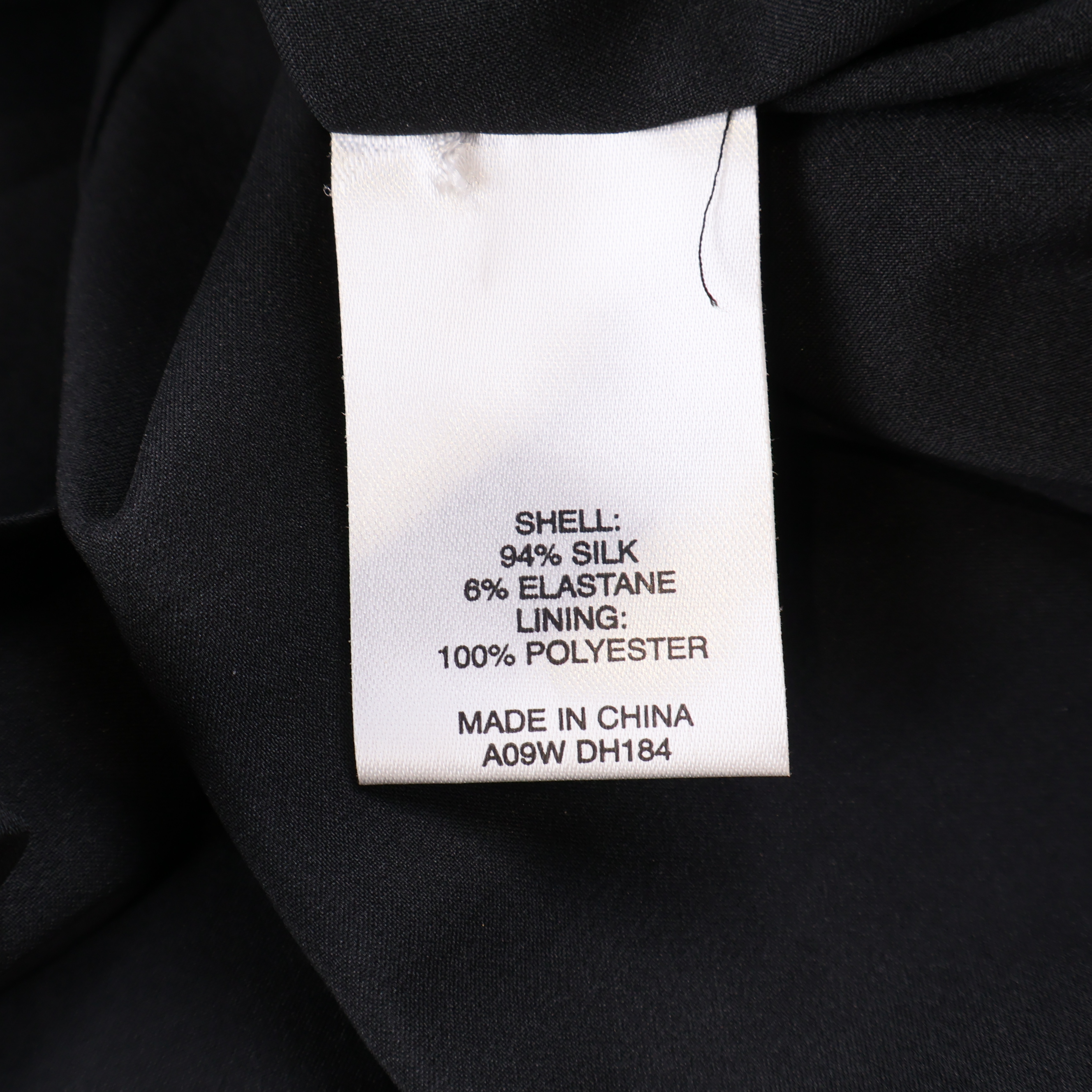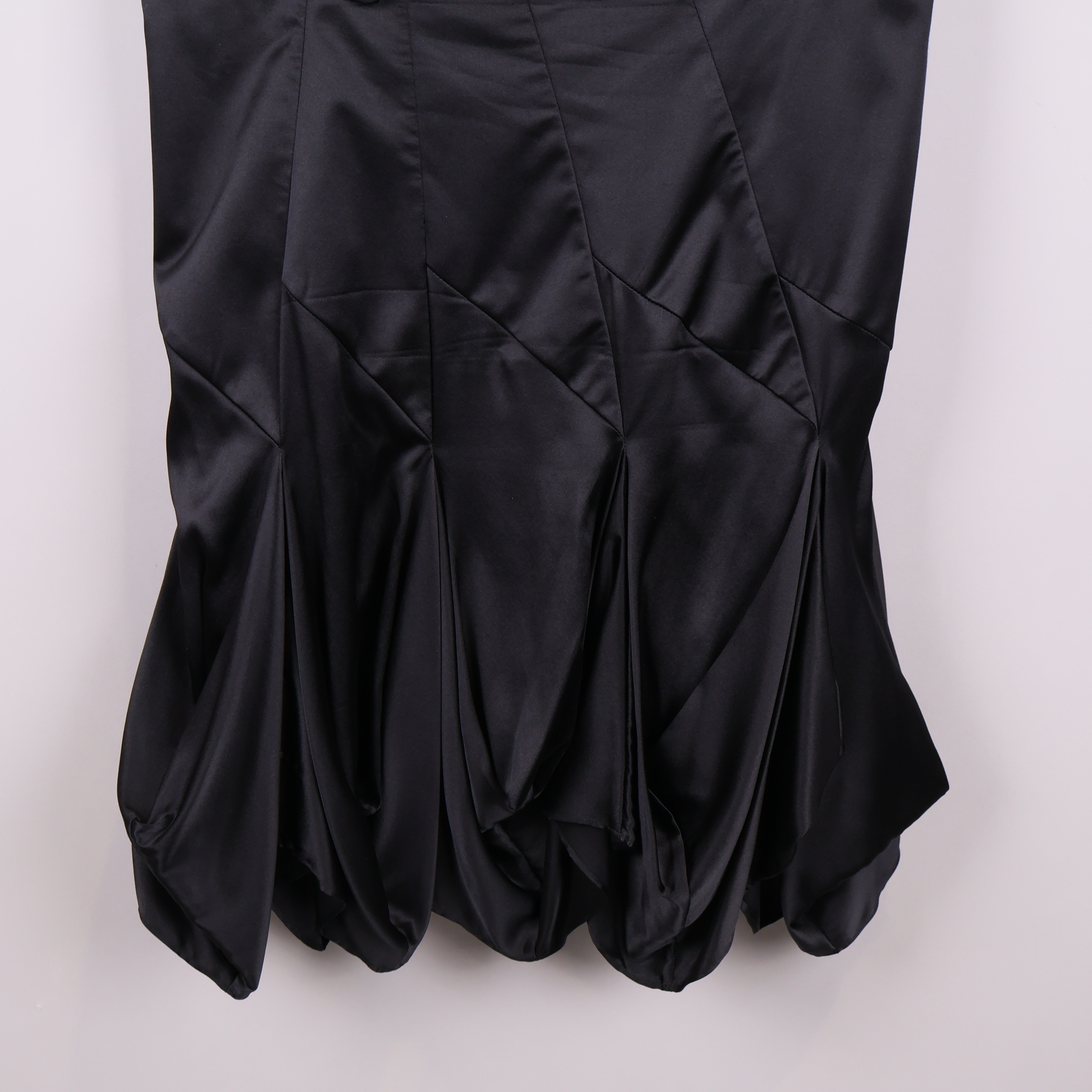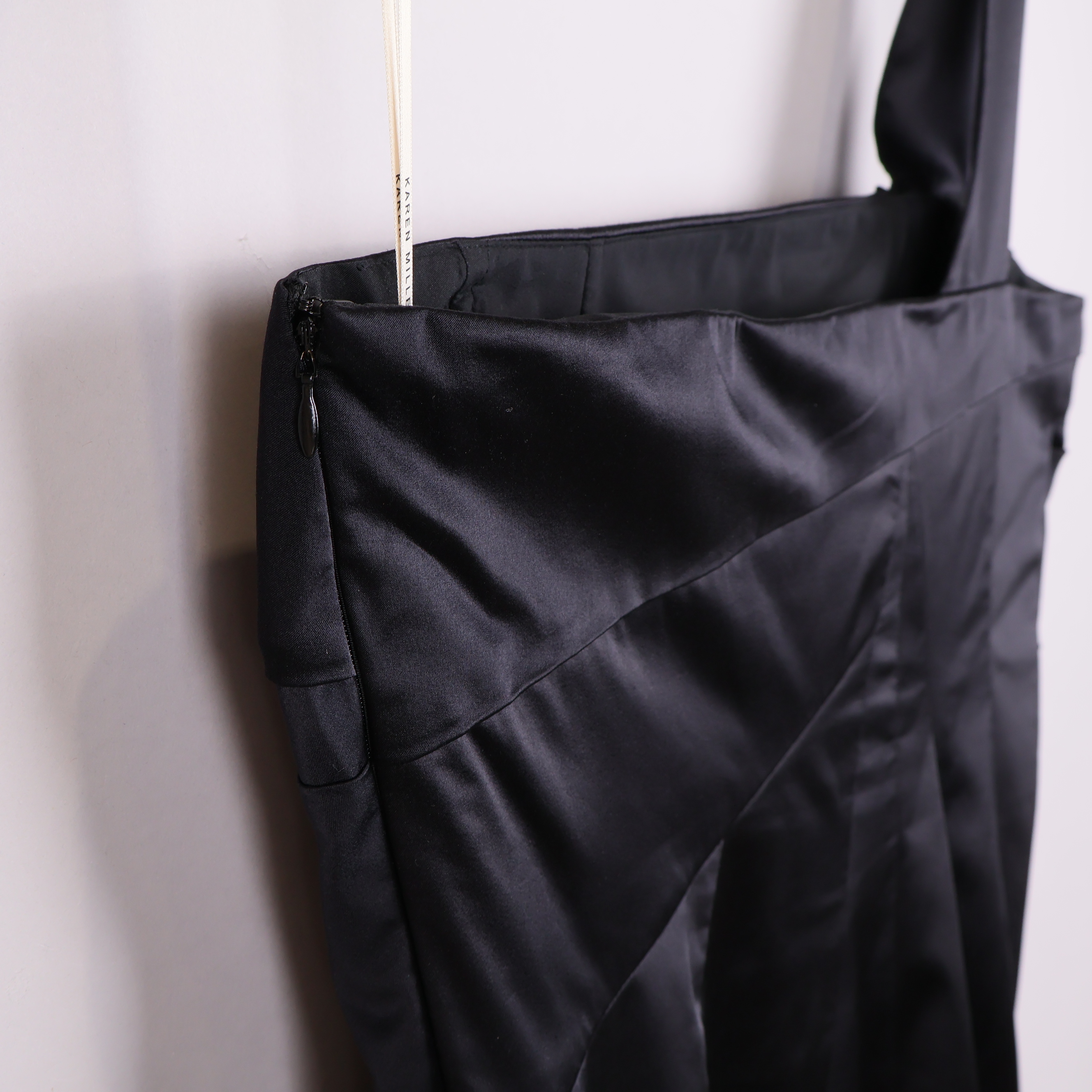 Svart klänning från Karen Millen med asymmetrisk axel och stilrena draperingar över hela plagget. Materialet har en snygg, diskret glans som ger en exklusiv känsla.