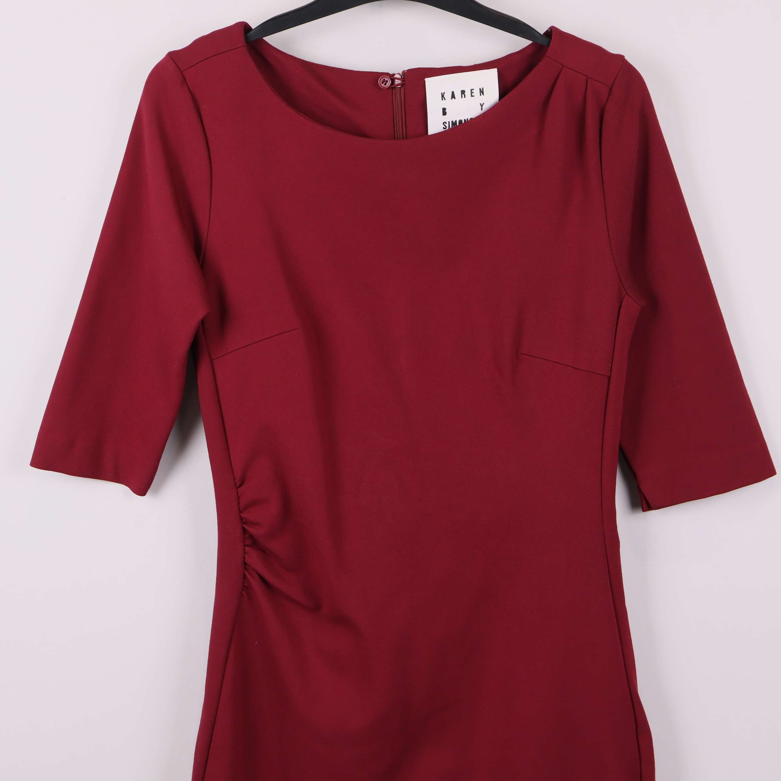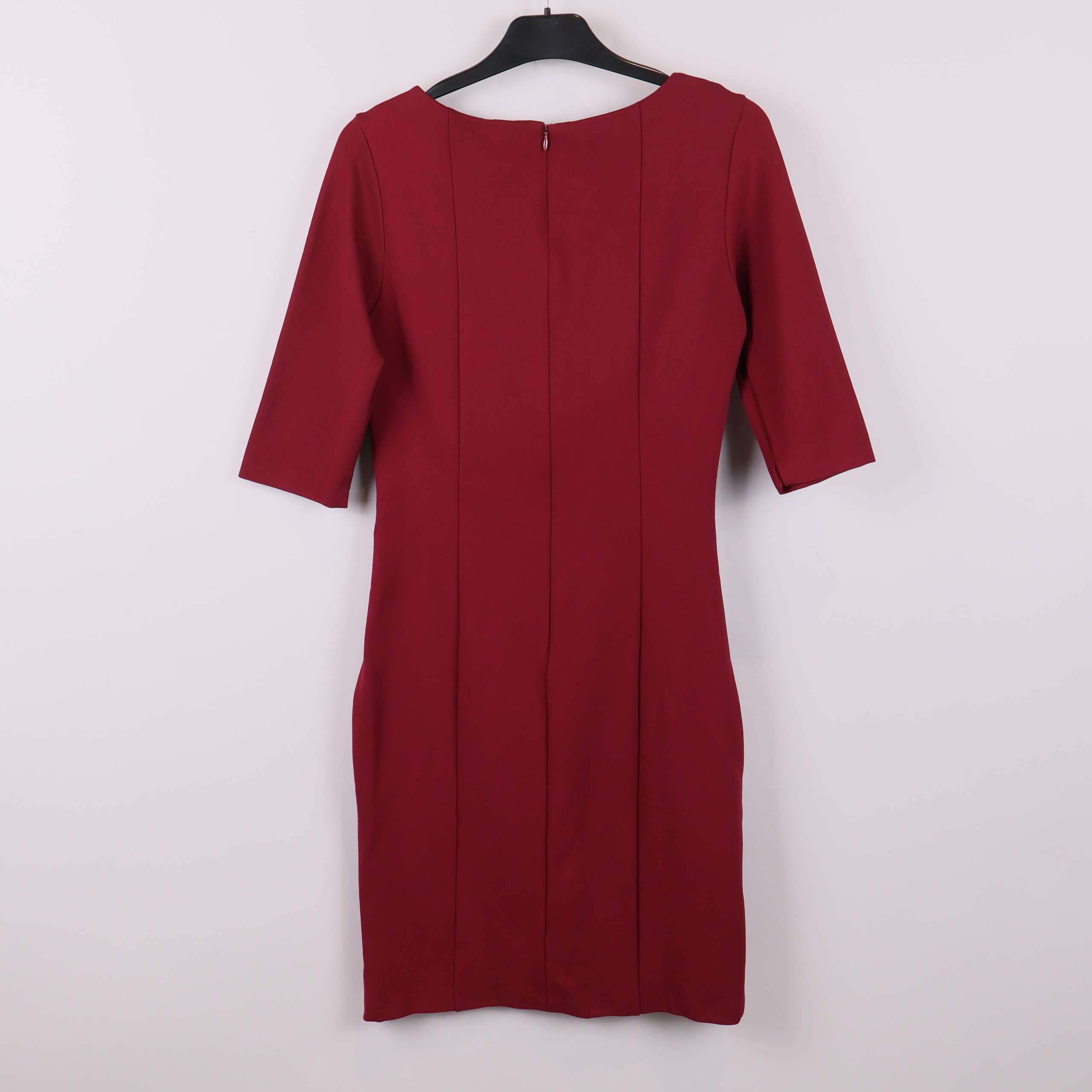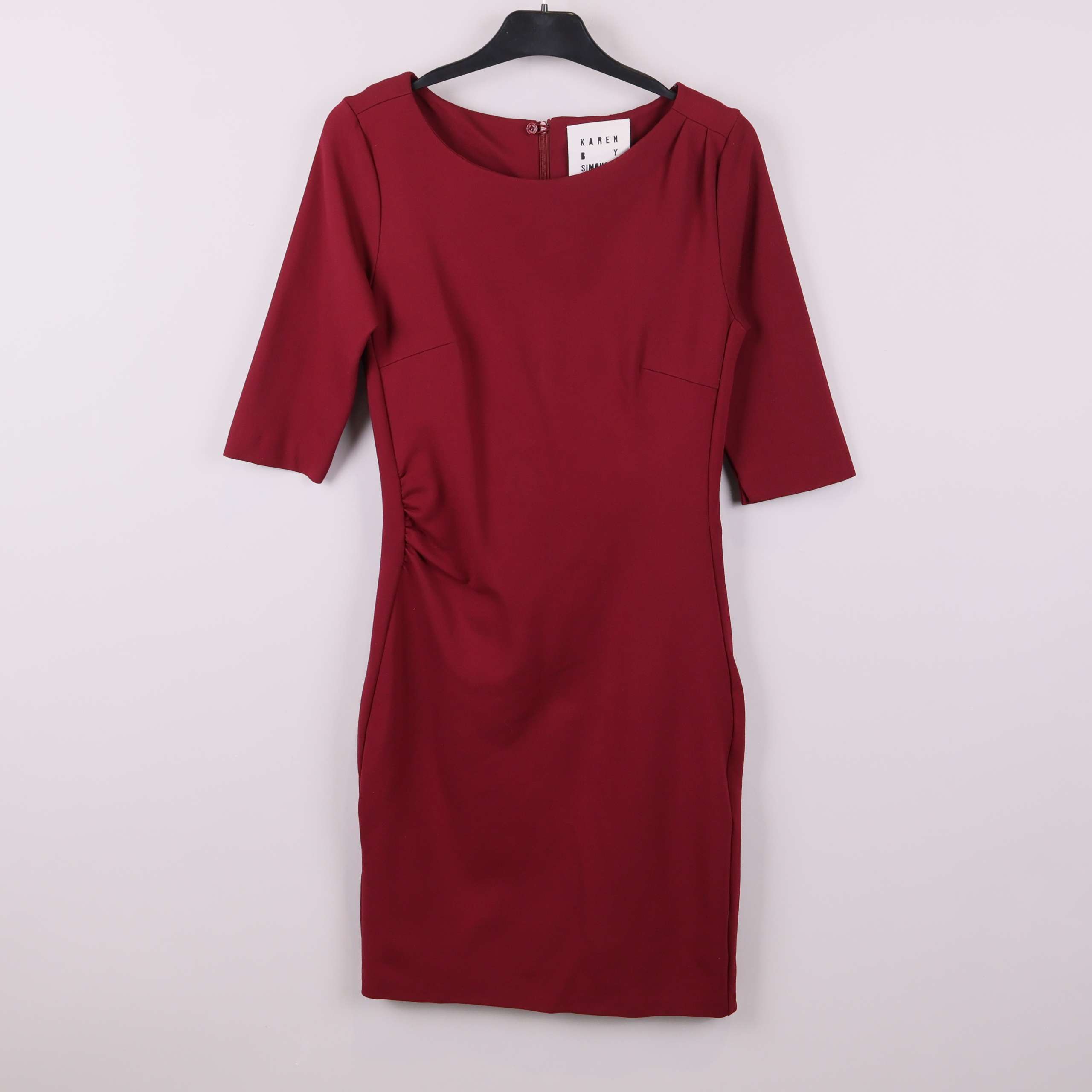 Den här klänningen från Karen by Simonsen har en vacker vinröd ton och elegant drapering i sidan som ger en smickrande siluett. Den har trekvartsärm, rund halsringning och mjukt tyg som följer kroppen på ett bekvämt sätt. Lätt stretch och dolda sömmar framhäver ett modernt uttryck, perfekt för dig som gillar en klassisk men samtida stil.
