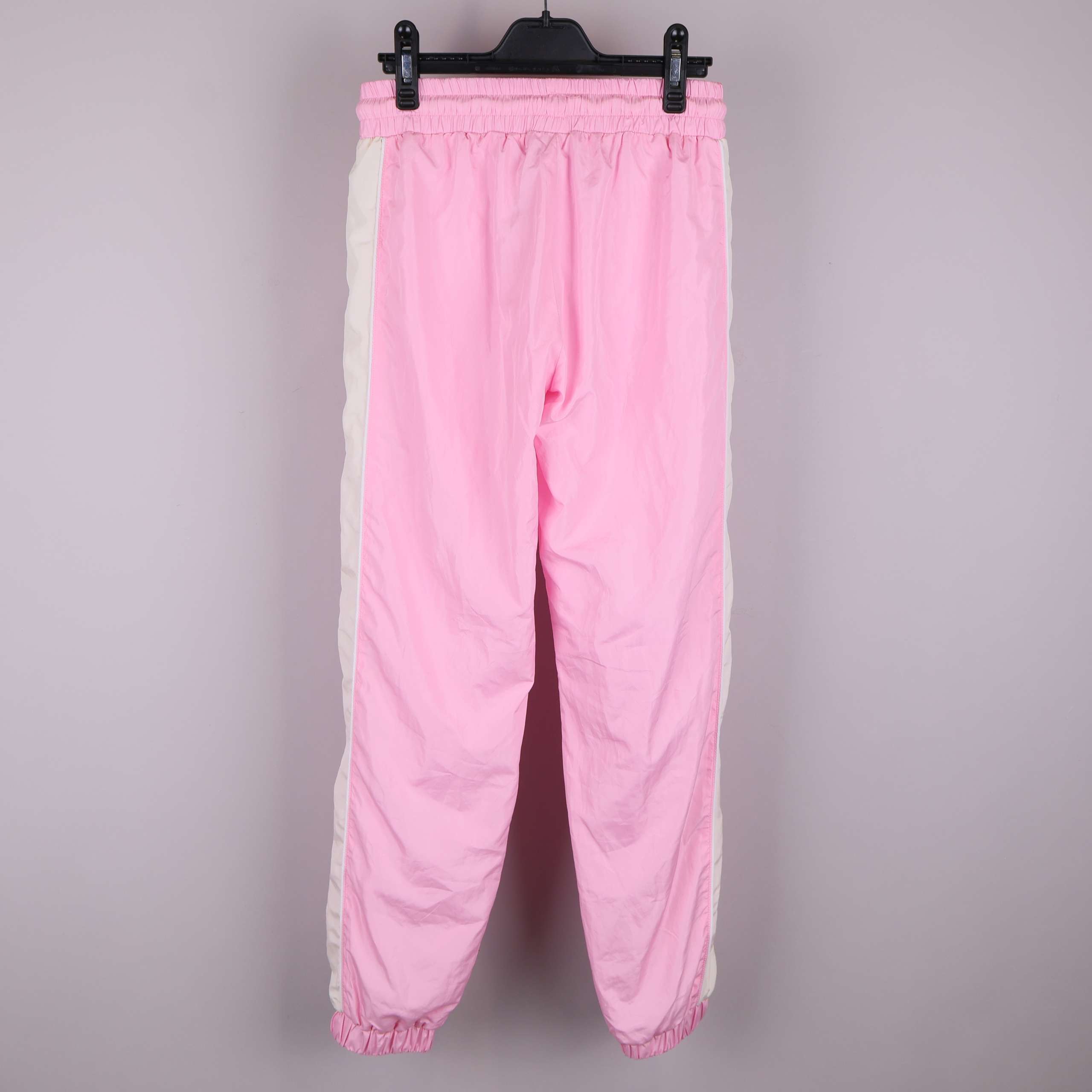 Sportiga byxor i en härlig rosa ton med elastisk midja och vit dragsko. Dekorativa vita sidoränder och diskret broderad detalj vid benet ger ett trendigt intryck. Ribbad mudd vid bensluten för extra komfort och avslappnad passform. Perfekta för en casual look med sporty vibe.