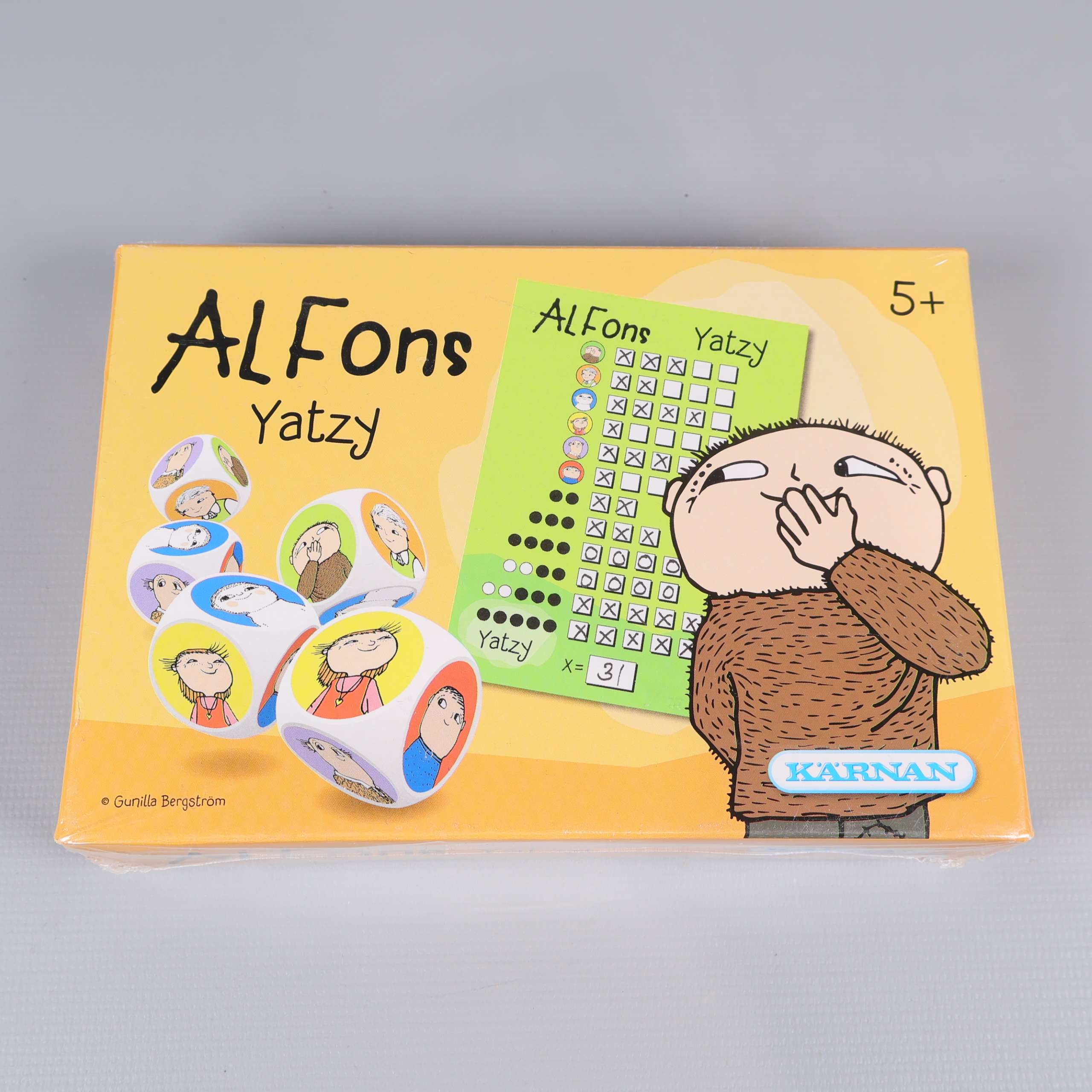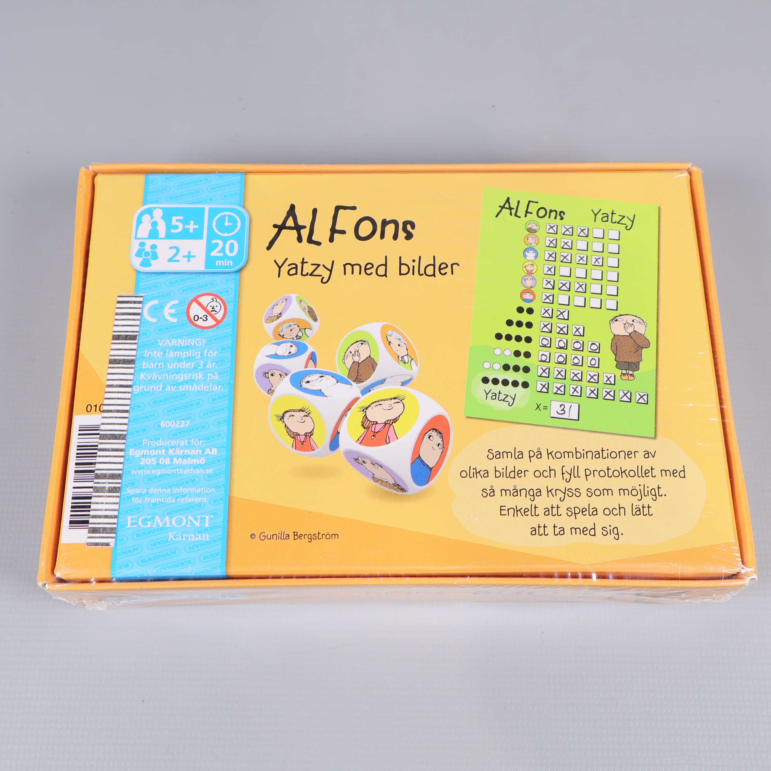 Roligt yatzyspel med motiv från Alfons Åberg-världen. Tärningarna har illustrerade bilder på karaktärer, vilket gör spelet färgglatt och lekfullt för yngre och äldre spelare. Perfekt för familjespelkvällar med snabbt spelmoment och klar, lättläst poängblock. Passar från 5 år och uppåt.